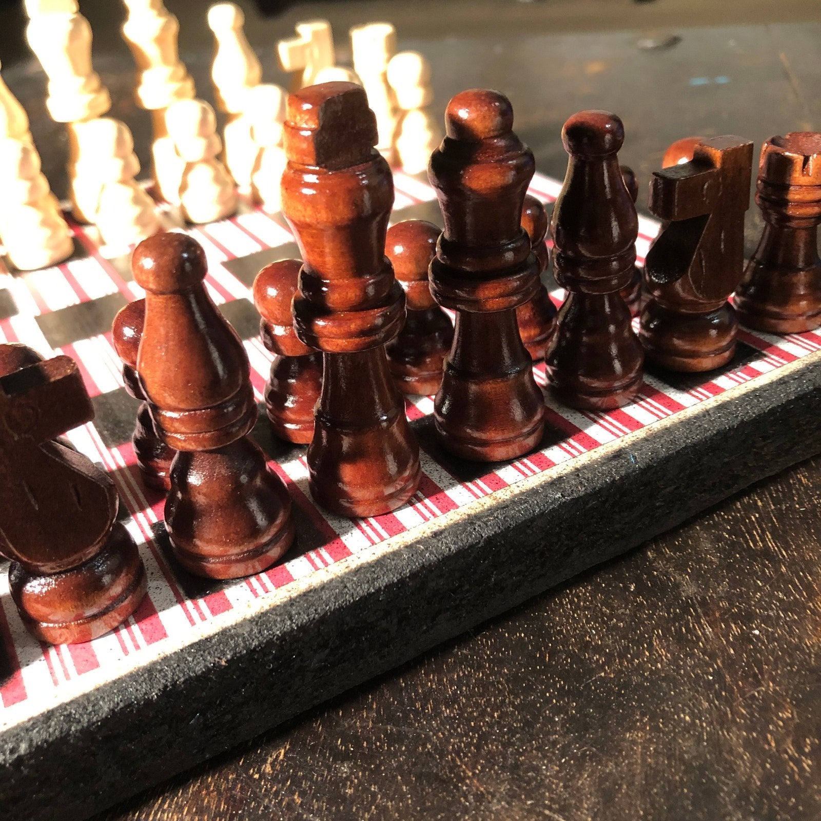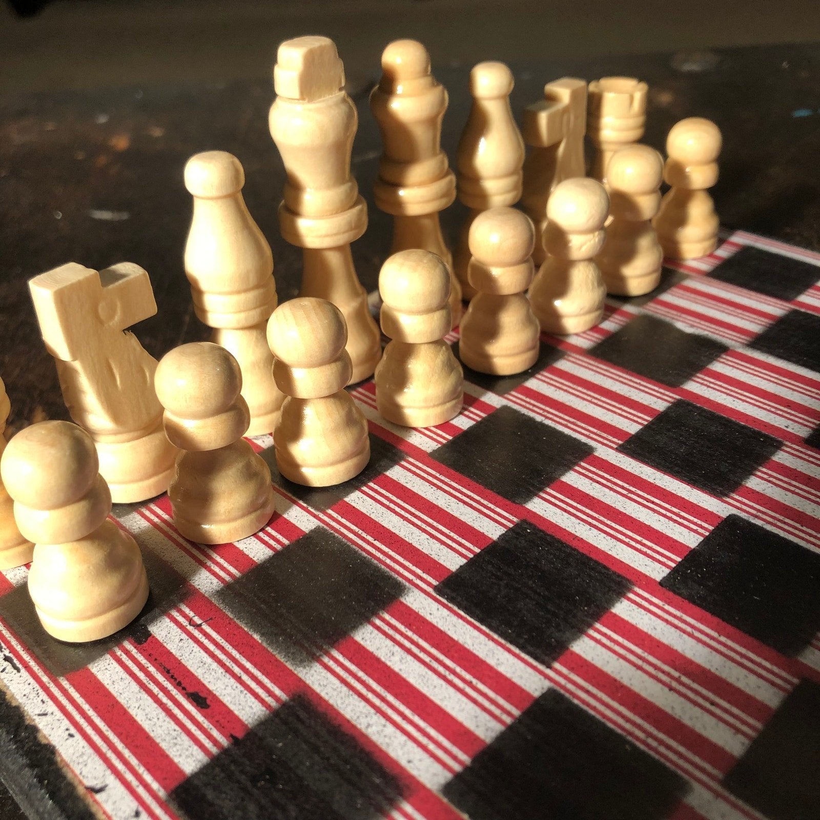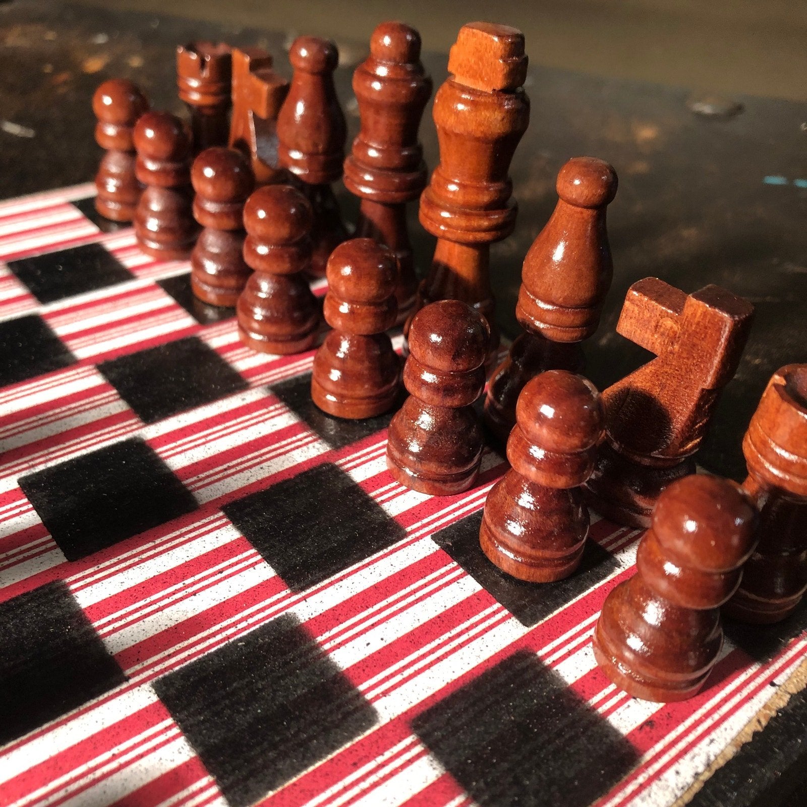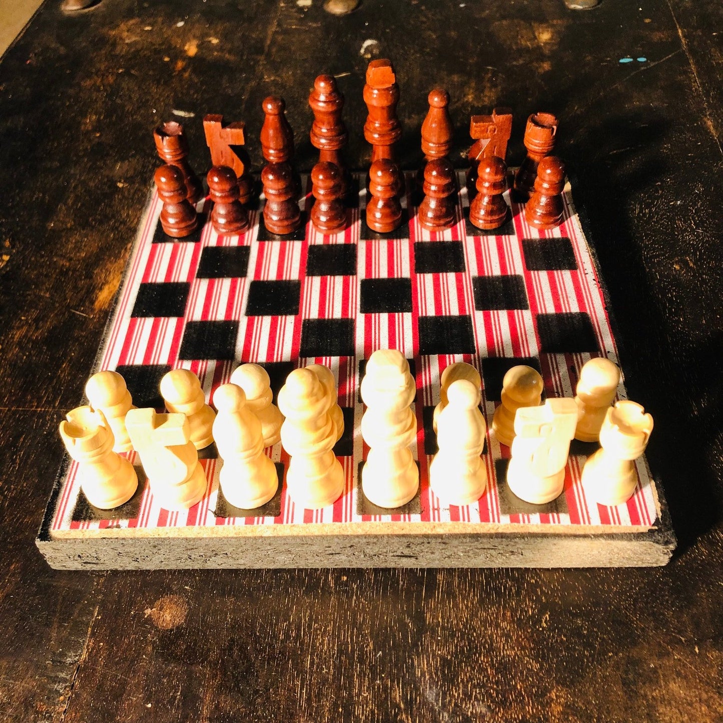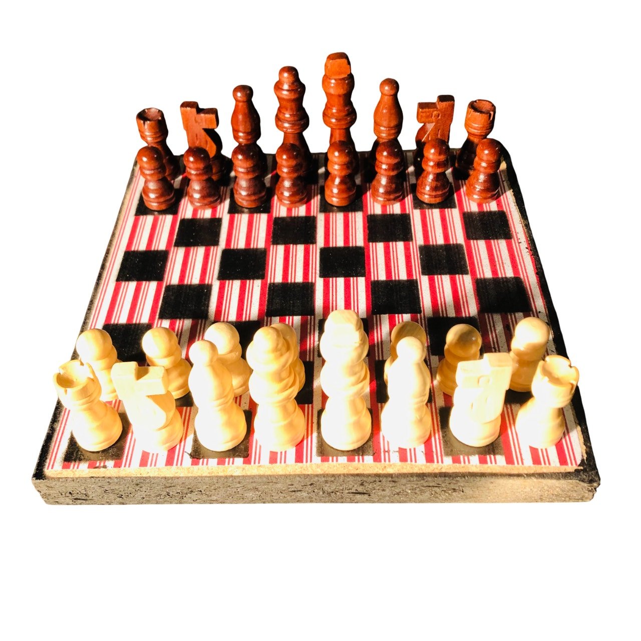 Introducing our exclusive Handcrafted Wooden Chess Set, meticulously designed with precision and care. Measuring 8 inches by 8 inches, this chess set features a beautifully painted particle board layered with a sheet of scrapbook paper board that doubles as a work of art. Each set is a unique, one-of-a-kind creation, crafted by hand to ensure that no two sets are alike. Elevate your gaming experience with this exceptional chess set that combines vibrant design with the touch of artisan craftsmanship. This chess board comes with chess pieces and is handcrafted as a one of one