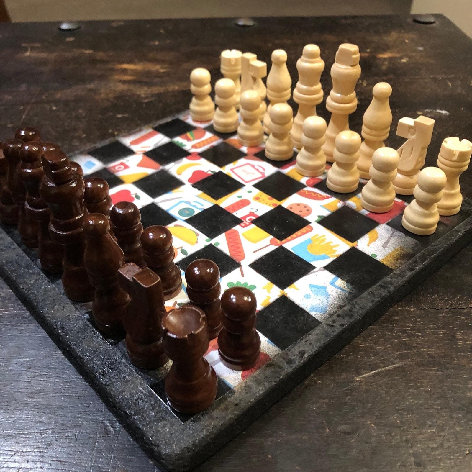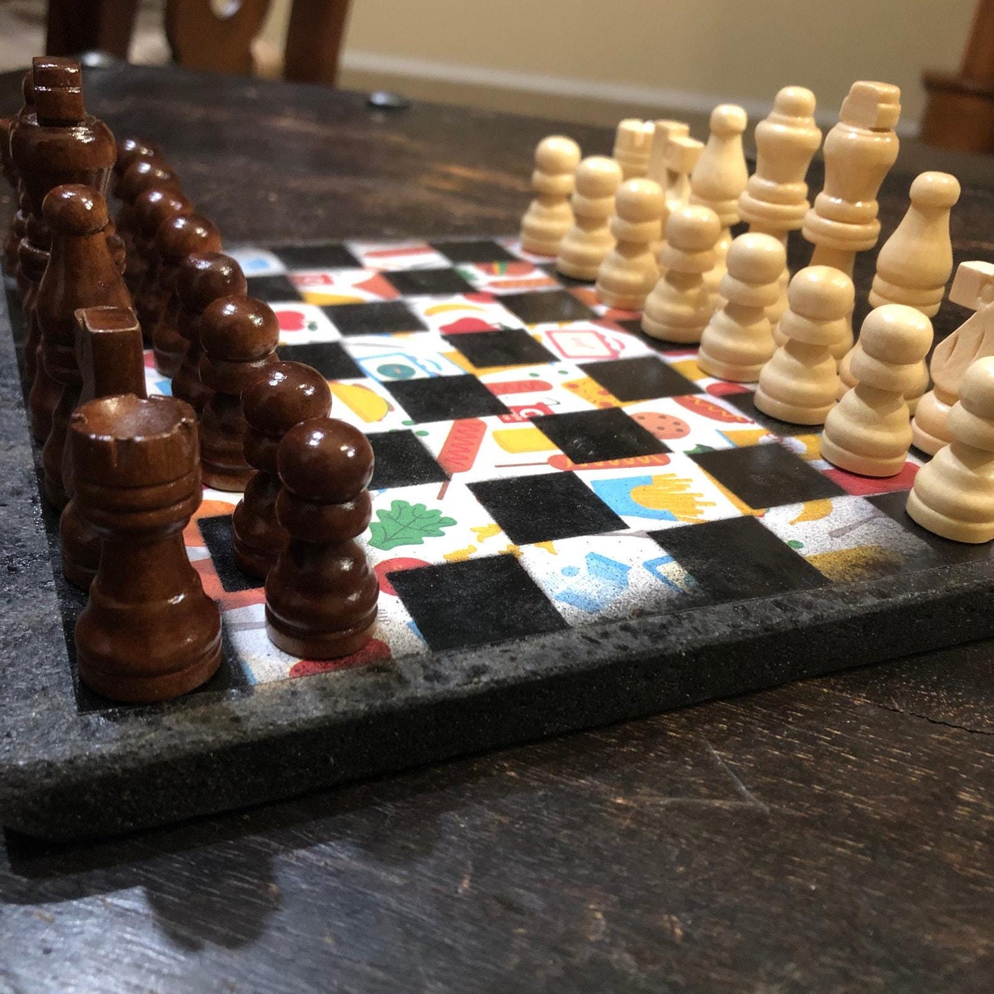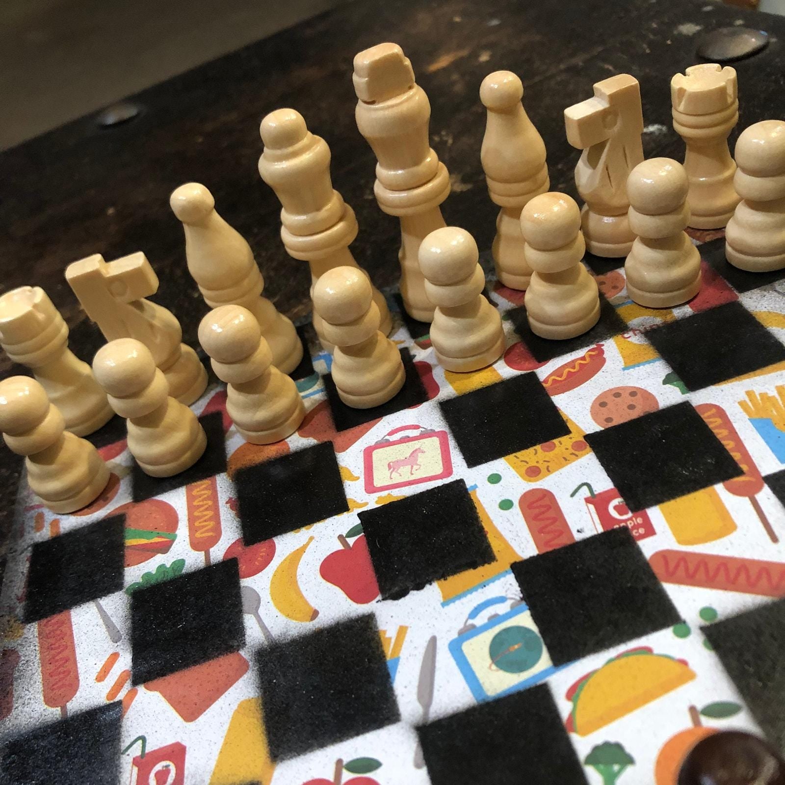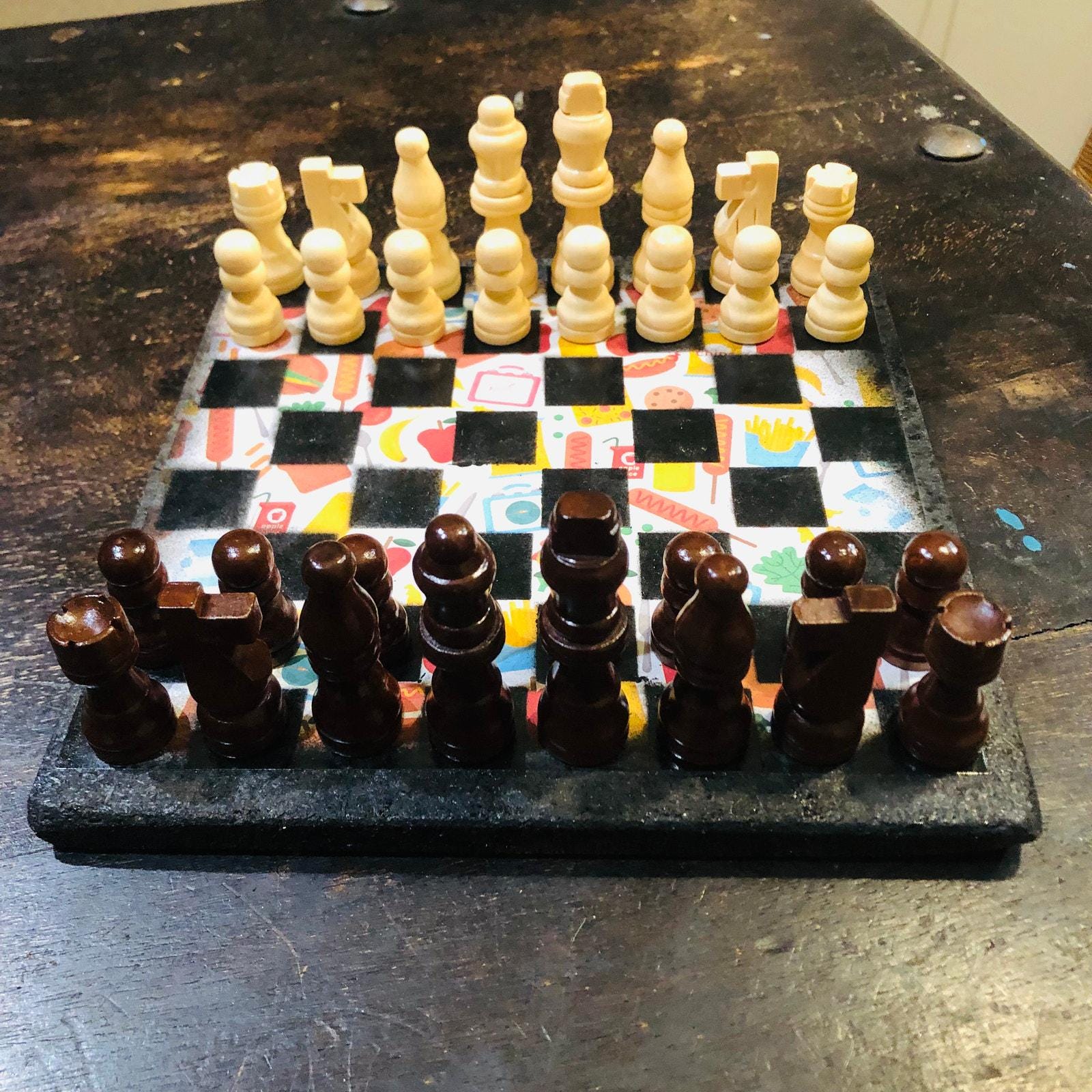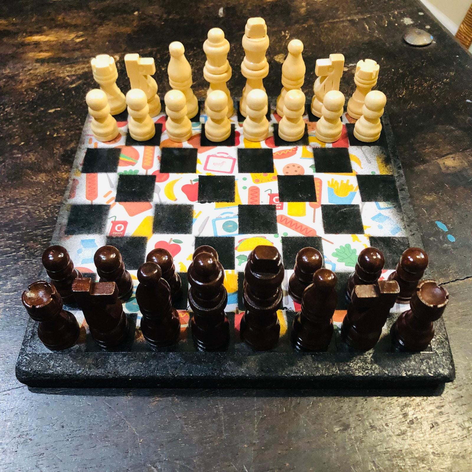 Introducing our exclusive Handcrafted Wooden Chess Set, meticulously designed with precision and care. Measuring 8 inches by 8 inches, this chess set features a beautifully painted particle board layered with a sheet of scrapbook paper board that doubles as a work of art. Each set is a unique, one-of-a-kind creation, crafted by hand to ensure that no two sets are alike. Elevate your gaming experience with this exceptional chess set that combines vibrant design with the touch of artisan craftsmanship. This chess board comes with chess pieces and is handcrafted as a one of one