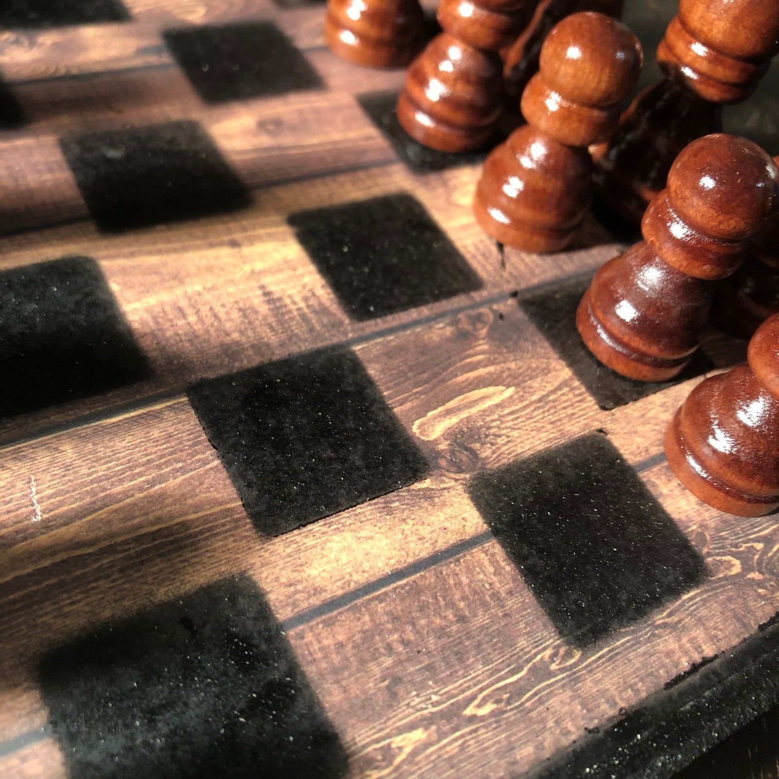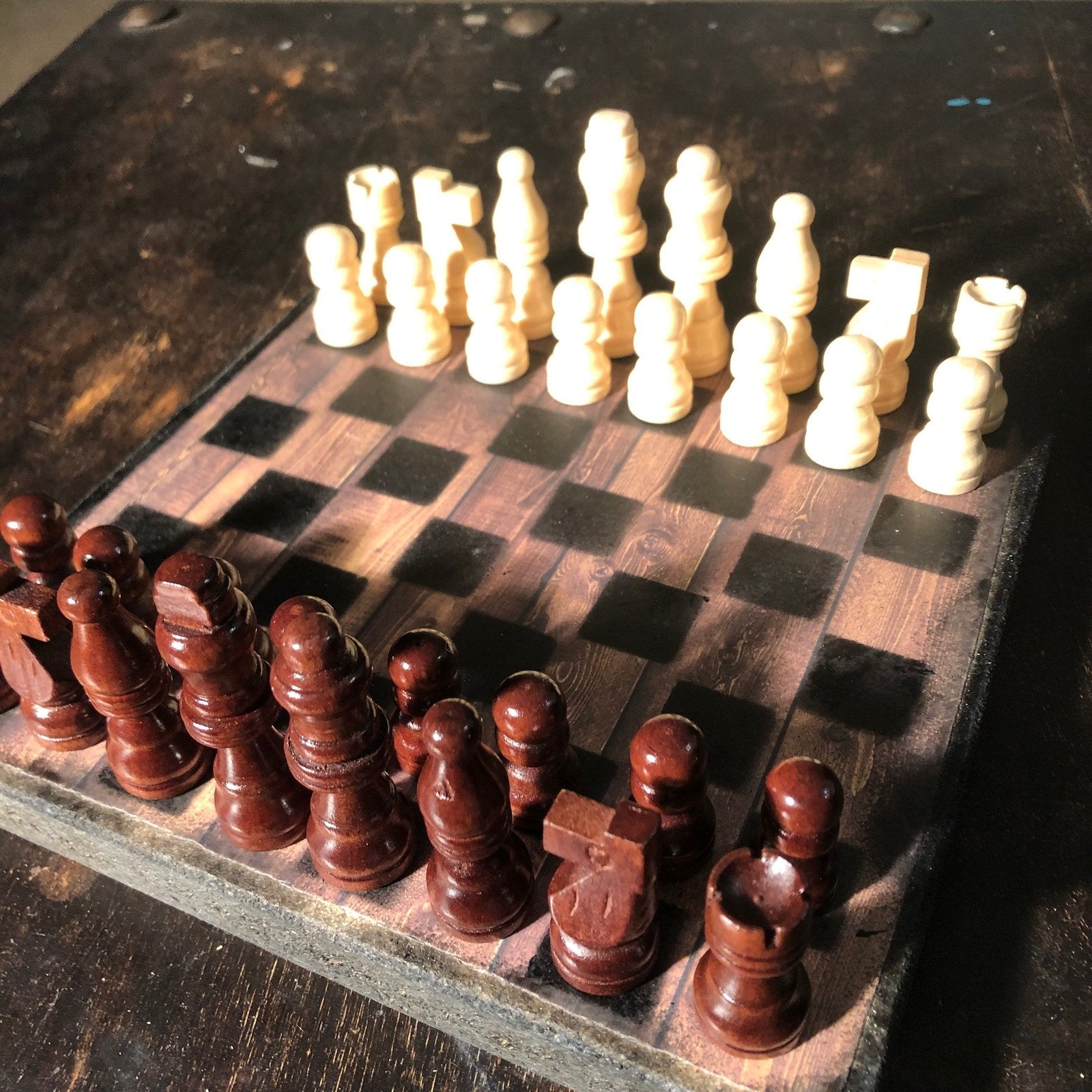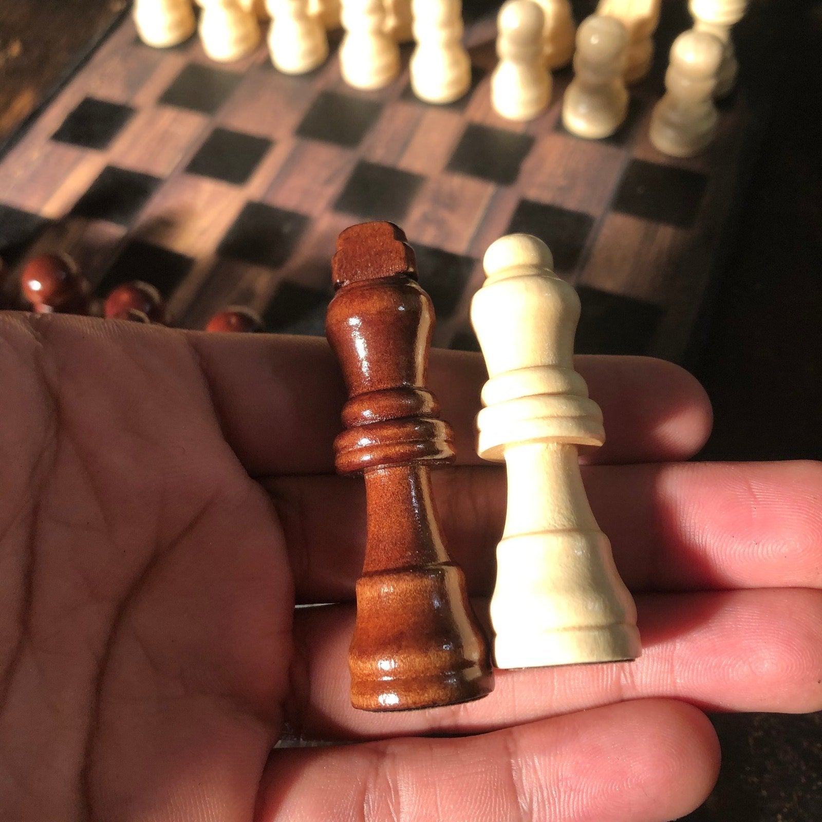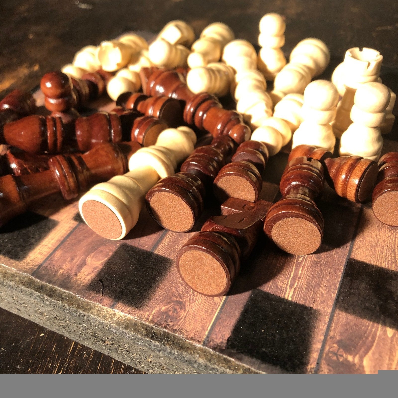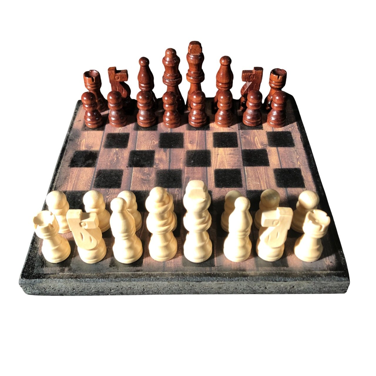 Introducing our exclusive Handcrafted Wooden Chess Set, meticulously designed with precision and care. Measuring 8 inches by 8 inches, this chess set features a beautifully painted particle board layered with a sheet of scrapbook paper board that doubles as a work of art. Each set is a unique, one-of-a-kind creation, crafted by hand to ensure that no two sets are alike. Elevate your gaming experience with this exceptional chess set that combines vibrant design with the touch of artisan craftsmanship. This chess board comes with chess pieces and is handcrafted as a one of one