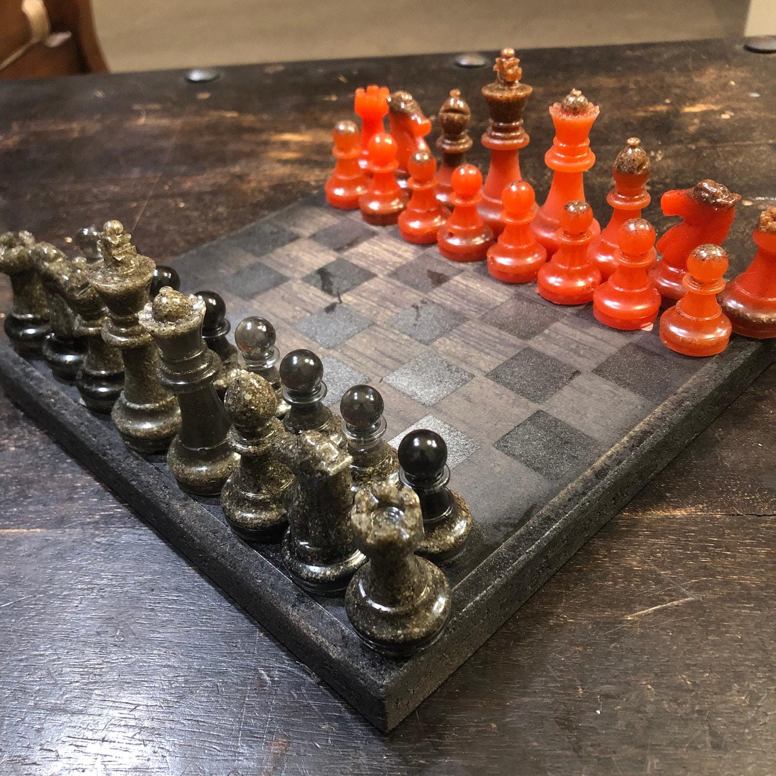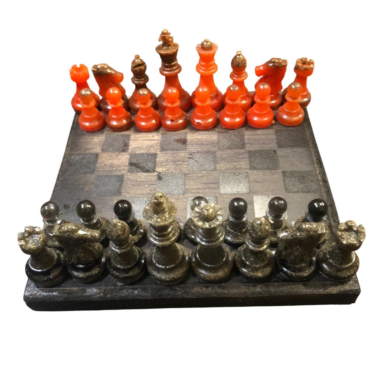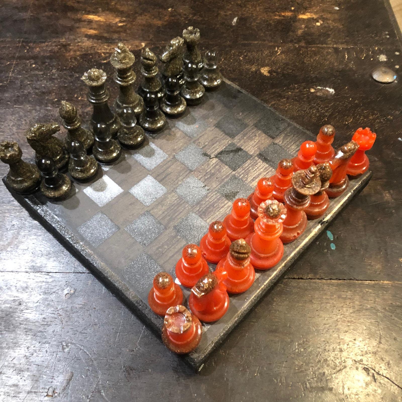 Introducing our exclusive Handcrafted Wooden Chess Set, meticulously designed with precision and care. Measuring 8 inches by 8 inches, this chess set features a beautifully painted particle board layered with a sheet of scrapbook paper board that doubles as a work of art. Each set is a unique, one-of-a-kind creation, crafted by hand to ensure that no two sets are alike. Elevate your gaming experience with this exceptional chess set that combines vibrant design with the touch of artisan craftsmanship. This chess board comes with chess pieces and is handcrafted as a one of one