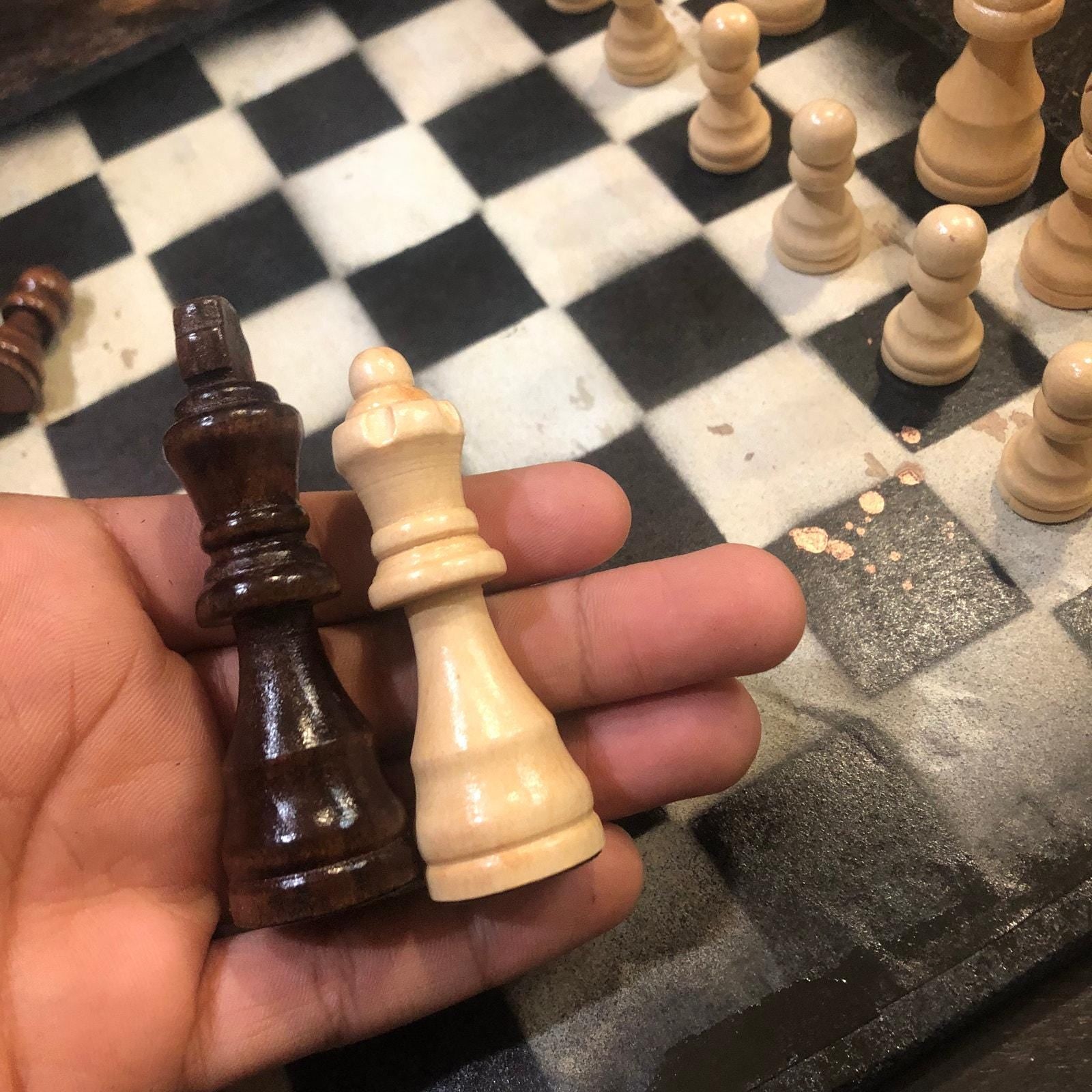 Introducing our exclusive Handcrafted Wooden Chess Set, meticulously designed with precision and care. Measuring 12 inches by 12 inches, this chess set features a beautifully painted particle board layered with a sheet of scrapbook paper board that doubles as a work of art. Each set is a unique, one-of-a-kind creation, crafted by hand to ensure that no two sets are alike. Elevate your gaming experience with this exceptional chess set that combines vibrant design with the touch of artisan craftsmanship. This chess board comes with chess pieces and is handcrafted as a one of one