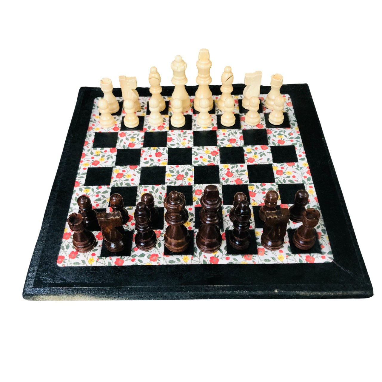 Introducing our exclusive Handcrafted Wooden Chess Set, meticulously designed with precision and care. Measuring 12 inches by 12 inches, this chess set features a beautifully painted particle board layered with a sheet of scrapbook paper board that doubles as a work of art. Each set is a unique, one-of-a-kind creation, crafted by hand to ensure that no two sets are alike. Elevate your gaming experience with this exceptional chess set that combines vibrant design with the touch of artisan craftsmanship. This chess board comes with chess pieces and is handcrafted as a one of one