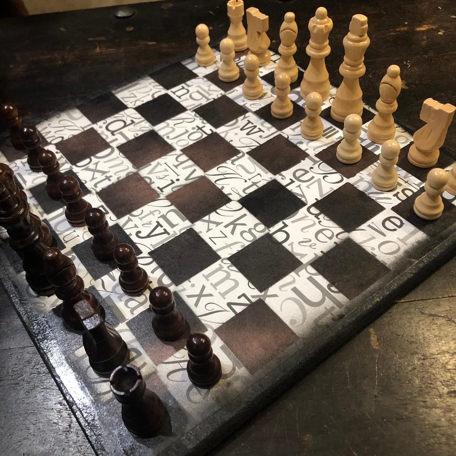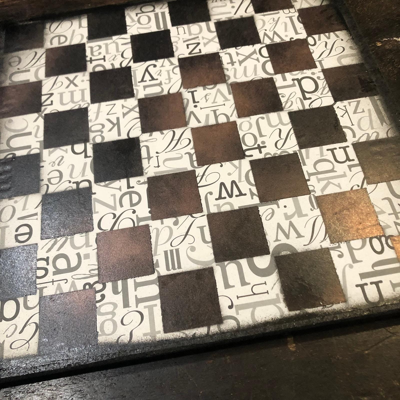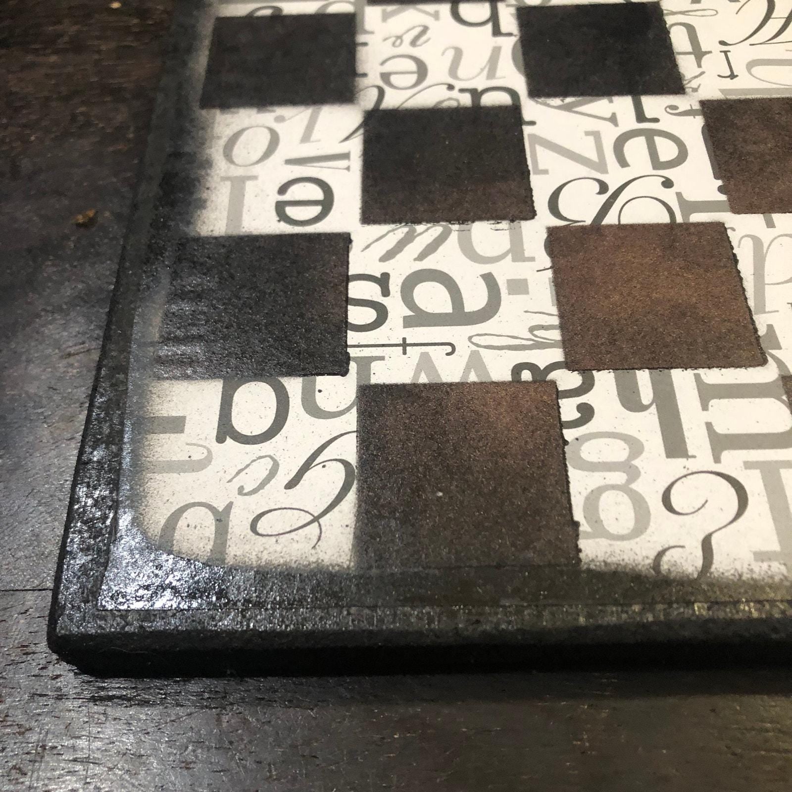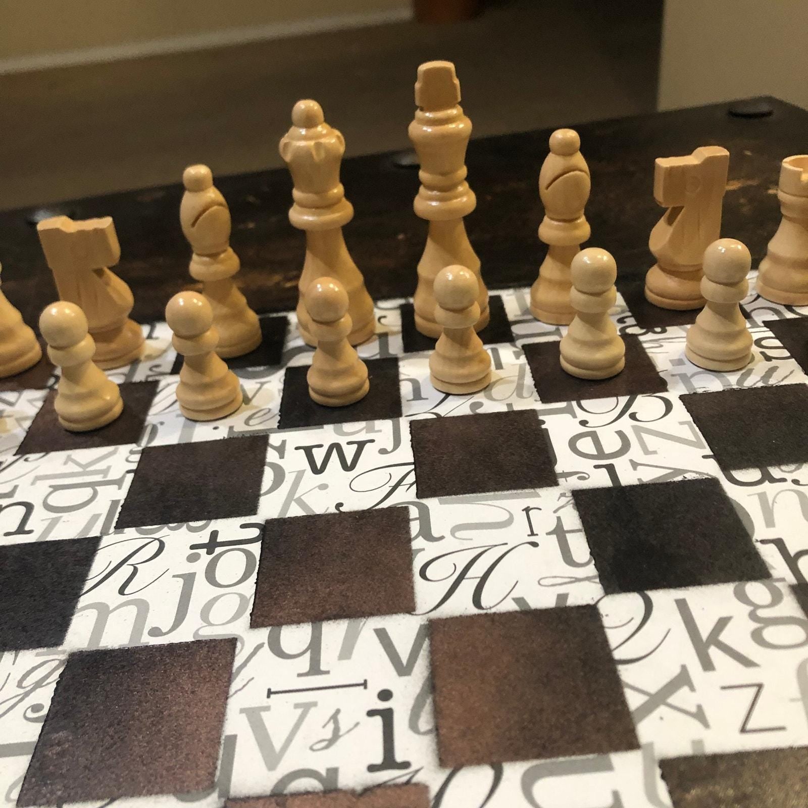 Introducing our exclusive Handcrafted Wooden Chess Set, meticulously designed with precision and care. Measuring 12 inches by 12 inches, this chess set features a beautifully painted particle board layered with a sheet of scrapbook paper board that doubles as a work of art. Each set is a unique, one-of-a-kind creation, crafted by hand to ensure that no two sets are alike. Elevate your gaming experience with this exceptional chess set that combines vibrant design with the touch of artisan craftsmanship. This chess board comes with chess pieces and is handcrafted as a one of one
