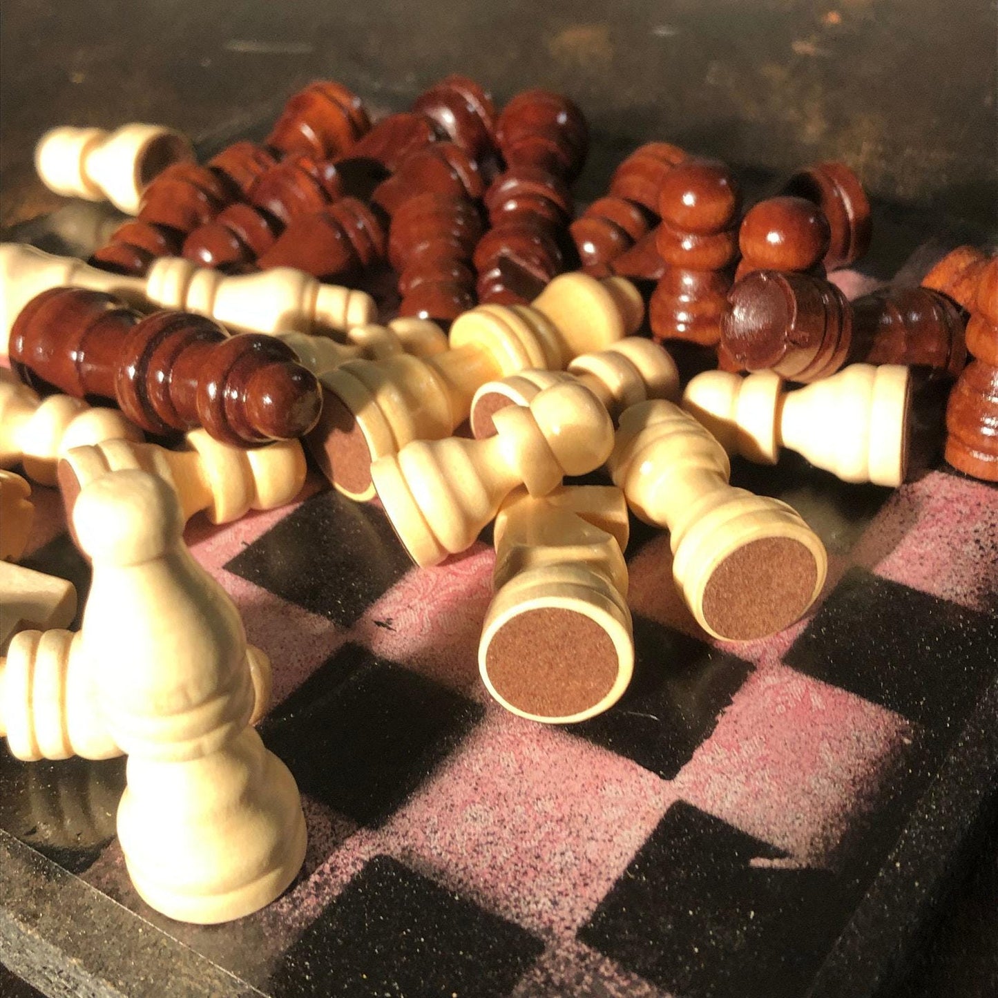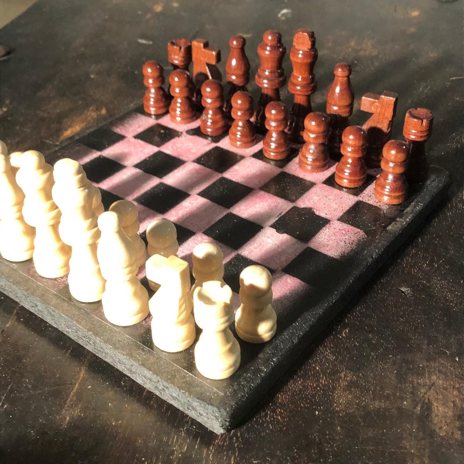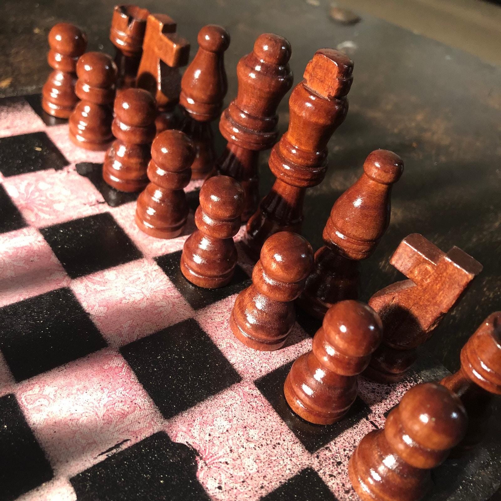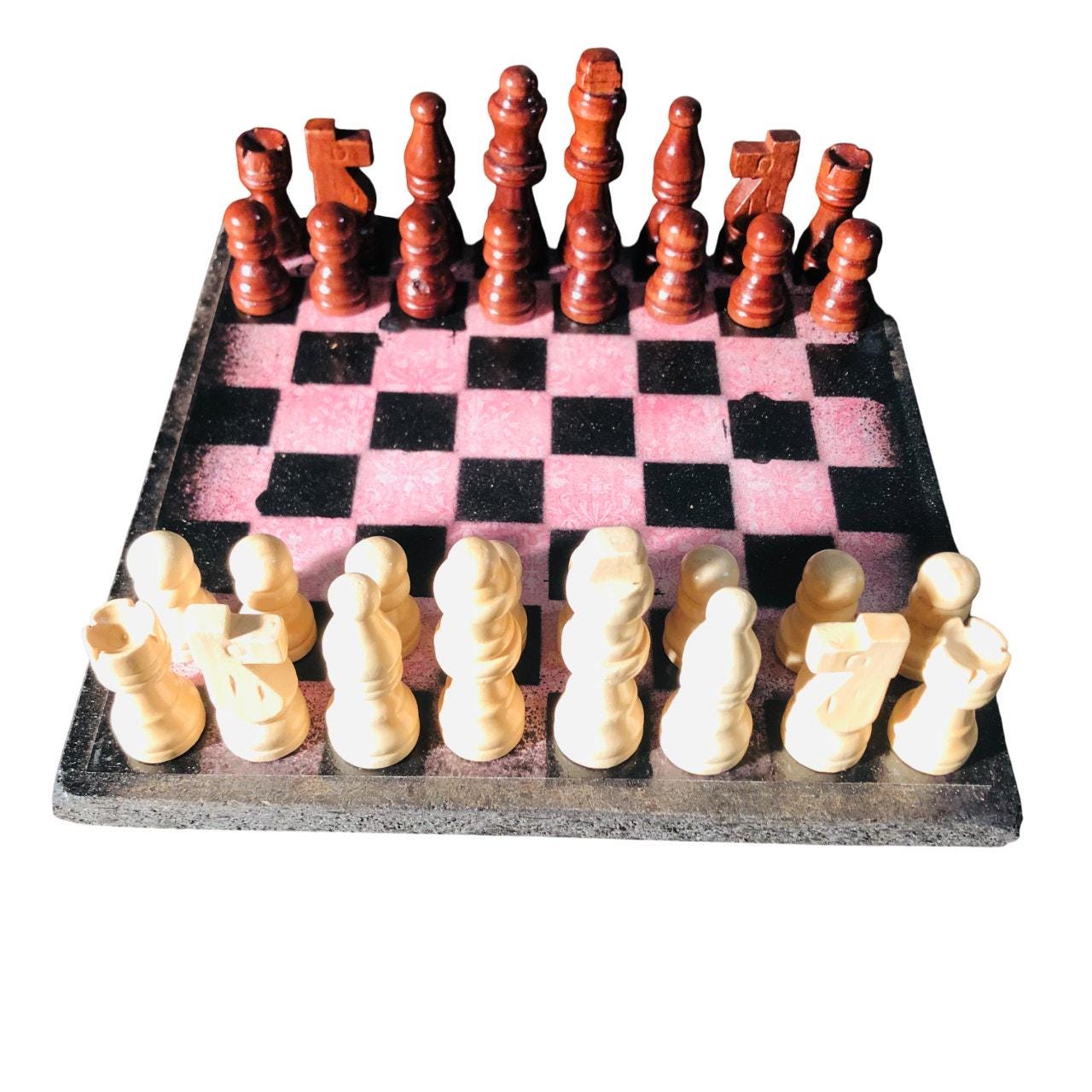 Introducing our exclusive Handcrafted Wooden Chess Set, meticulously designed with precision and care. Measuring 8 inches by 8 inches, this chess set features a beautifully painted particle board layered with a sheet of scrapbook paper board that doubles as a work of art. Each set is a unique, one-of-a-kind creation, crafted by hand to ensure that no two sets are alike. Elevate your gaming experience with this exceptional chess set that combines vibrant design with the touch of artisan craftsmanship. This chess board comes with chess pieces and is handcrafted as a one of one