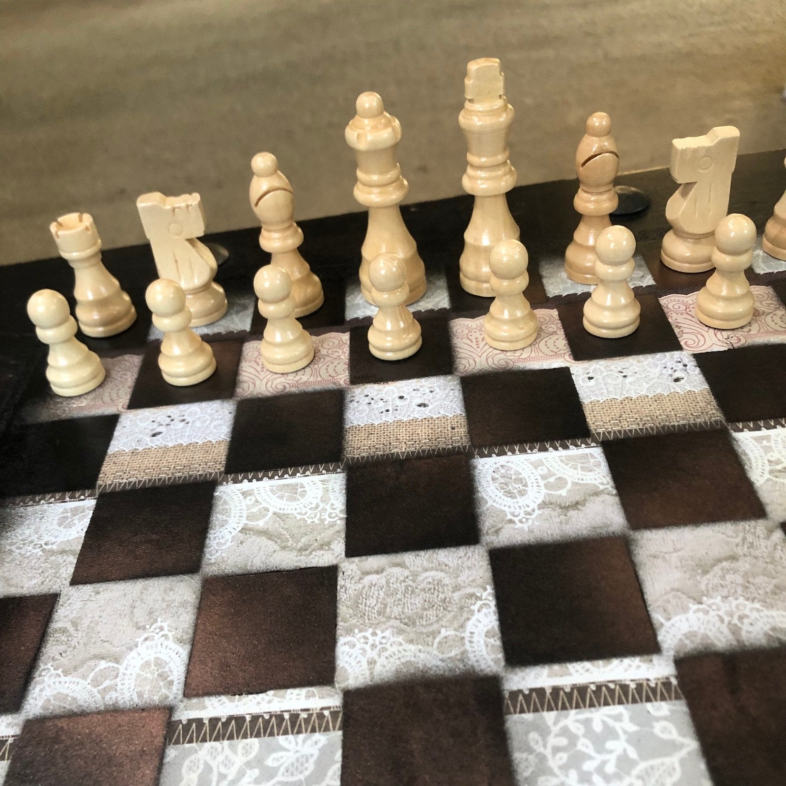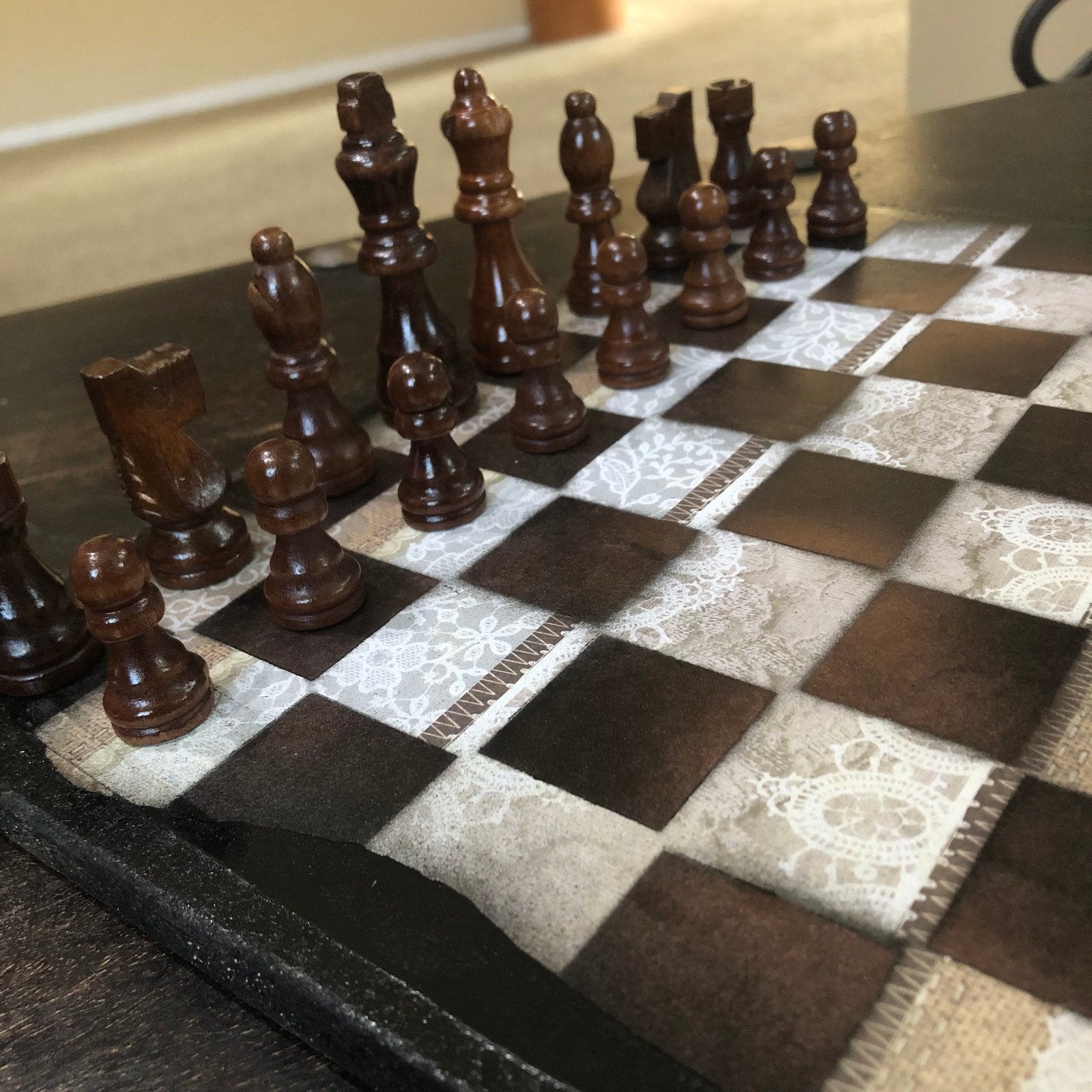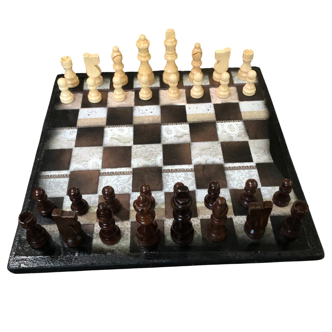 Introducing our exclusive Handcrafted Wooden Chess Set, meticulously designed with precision and care. Measuring 12 inches by 12 inches, this chess set features a beautifully painted particle board layered with a sheet of scrapbook paper board that doubles as a work of art. Each set is a unique, one-of-a-kind creation, crafted by hand to ensure that no two sets are alike. Elevate your gaming experience with this exceptional chess set that combines vibrant design with the touch of artisan craftsmanship. This chess board comes with chess pieces and is handcrafted as a one of one