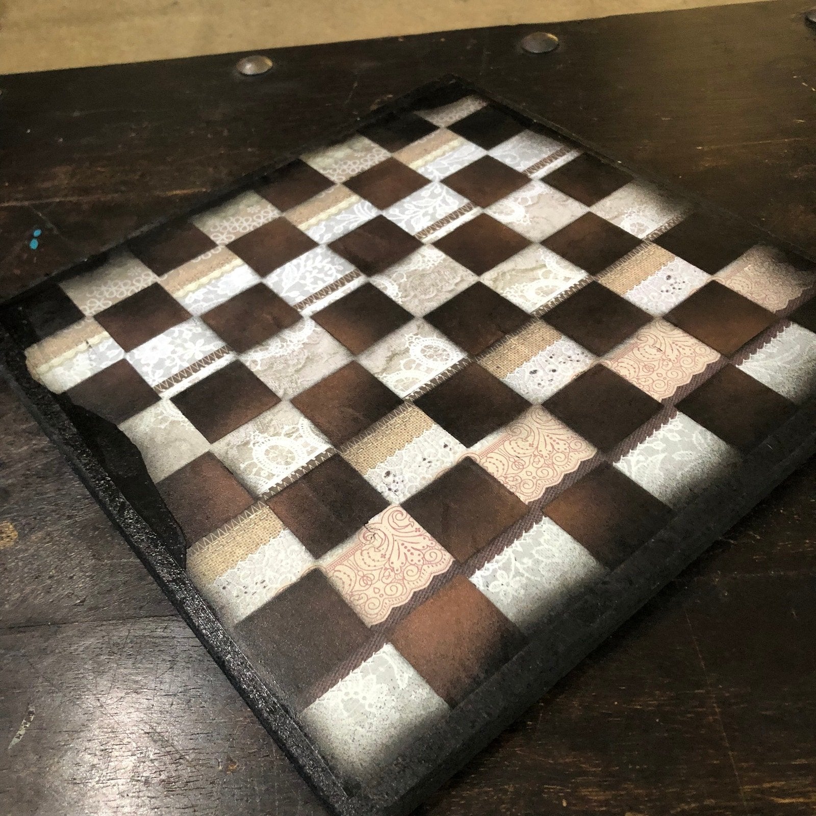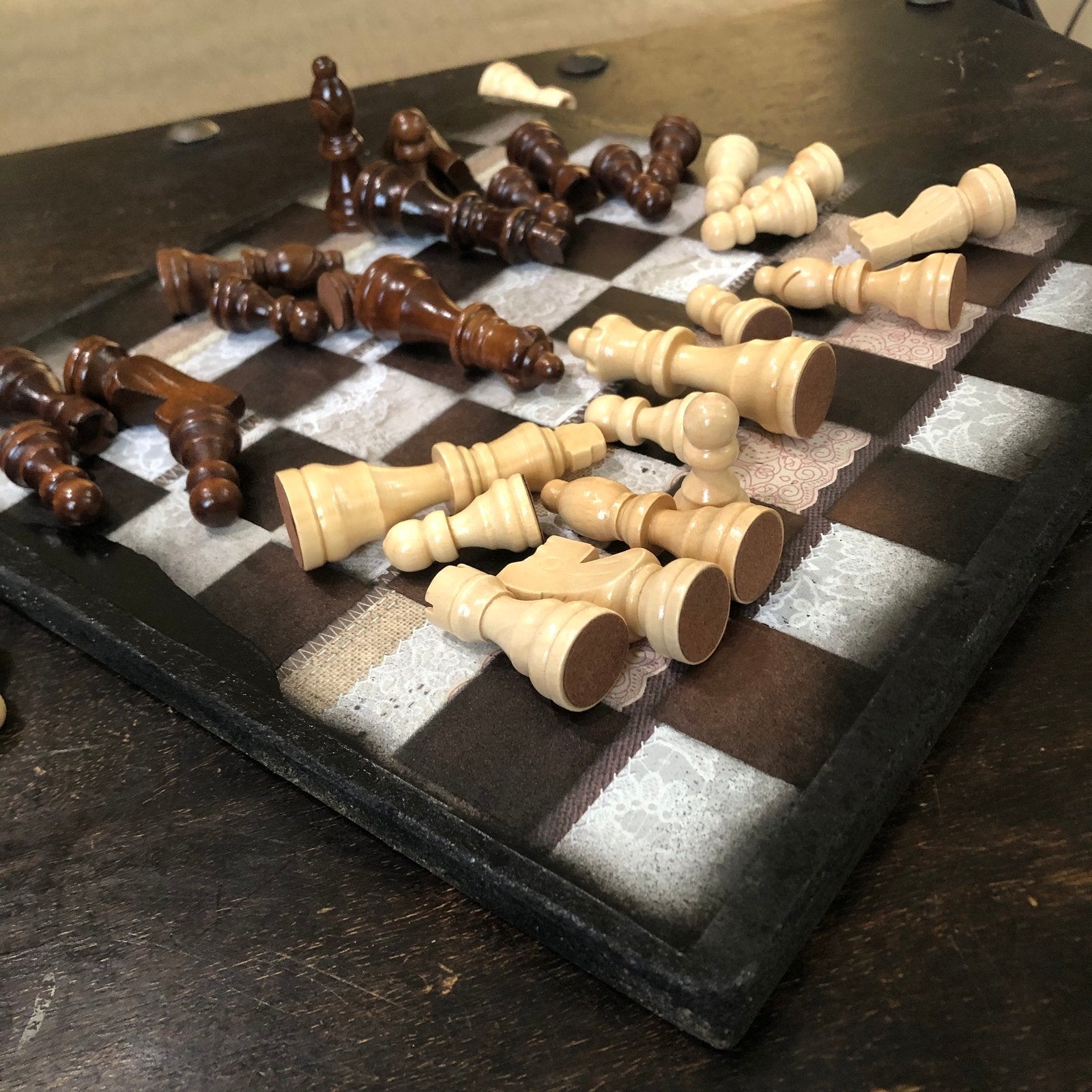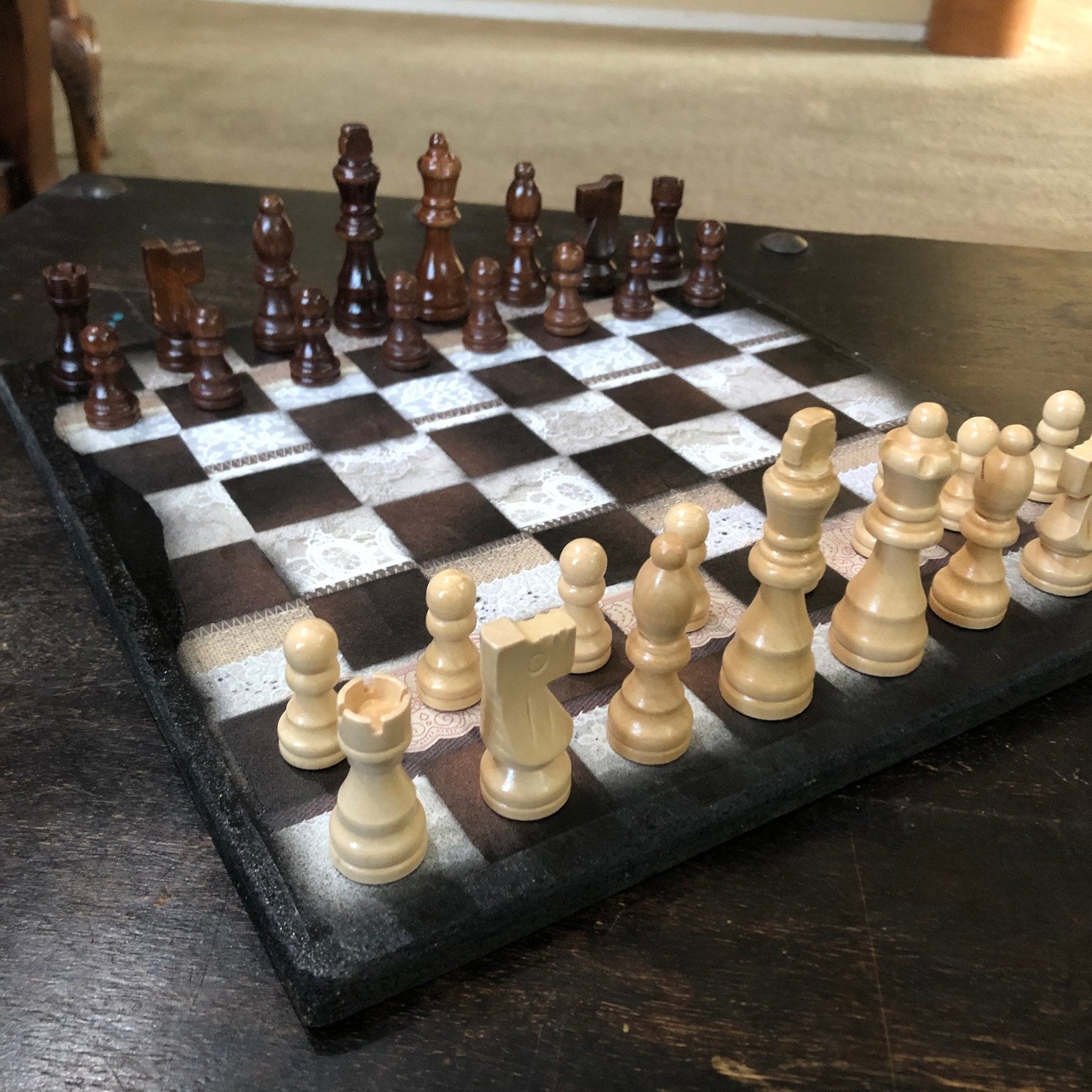 Introducing our exclusive Handcrafted Wooden Chess Set, meticulously designed with precision and care. Measuring 12 inches by 12 inches, this chess set features a beautifully painted particle board layered with a sheet of scrapbook paper board that doubles as a work of art. Each set is a unique, one-of-a-kind creation, crafted by hand to ensure that no two sets are alike. Elevate your gaming experience with this exceptional chess set that combines vibrant design with the touch of artisan craftsmanship. This chess board comes with chess pieces and is handcrafted as a one of one