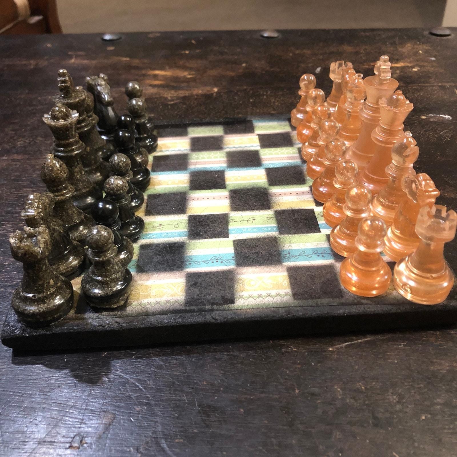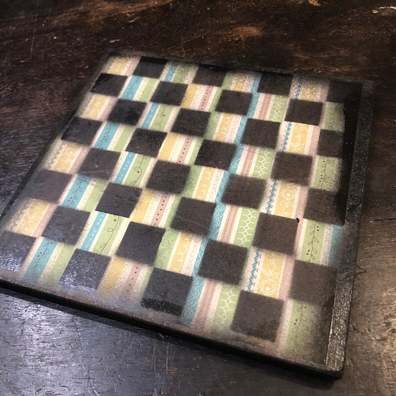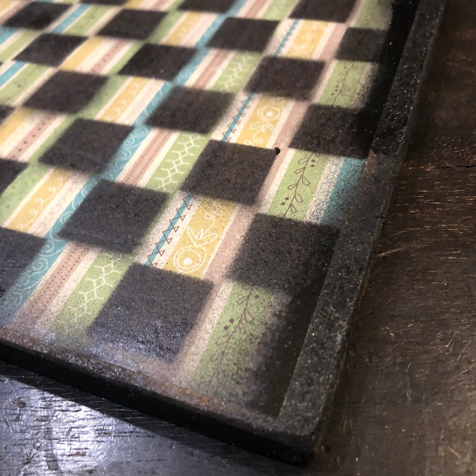 Introducing our exclusive Handcrafted Wooden Chess Set, meticulously designed with precision and care. Measuring 8 inches by 8 inches, this chess set features a beautifully painted particle board layered with a sheet of scrapbook paper board that doubles as a work of art. Each set is a unique, one-of-a-kind creation, crafted by hand to ensure that no two sets are alike. Elevate your gaming experience with this exceptional chess set that combines vibrant design with the touch of artisan craftsmanship. This chess board comes with chess pieces and is handcrafted as a one of one