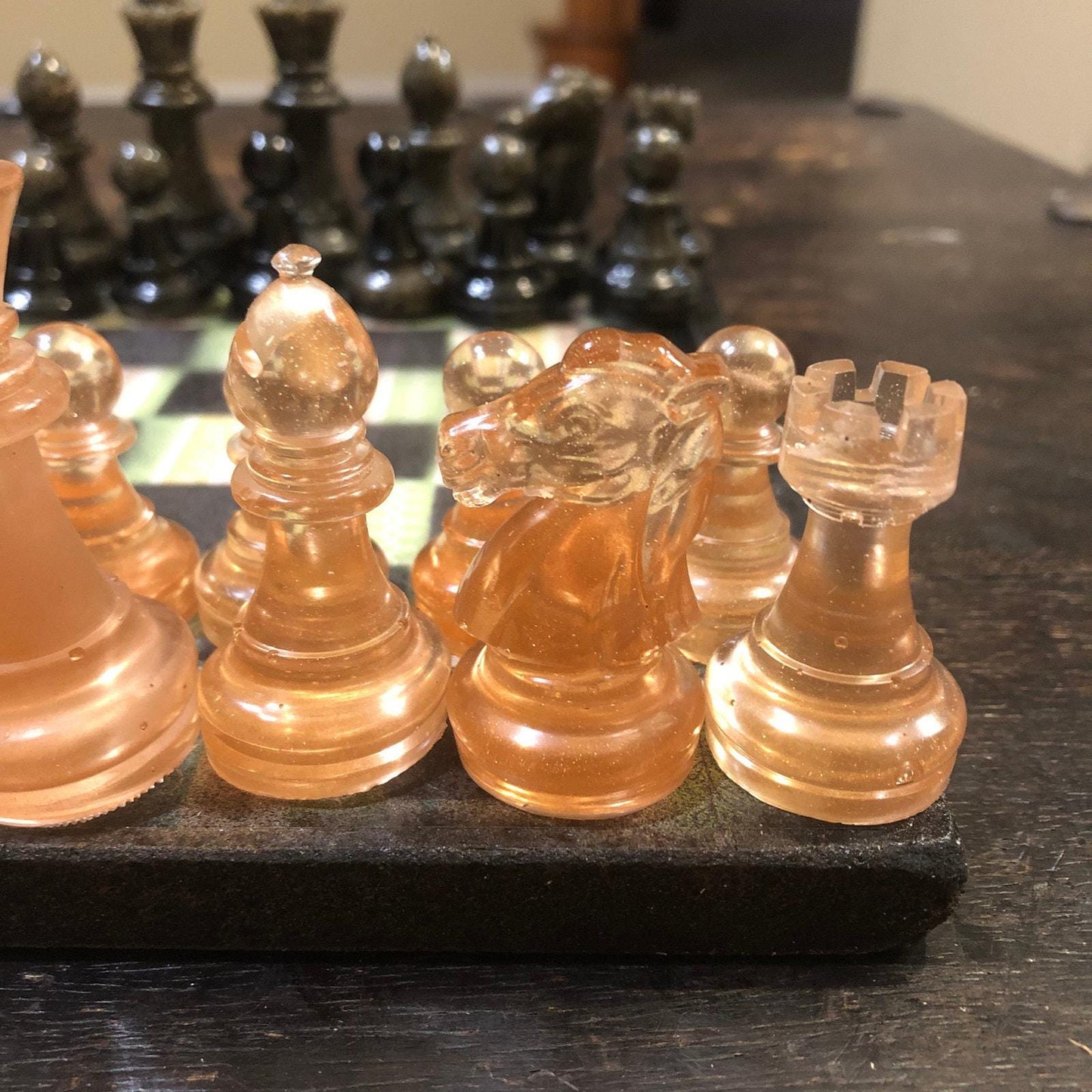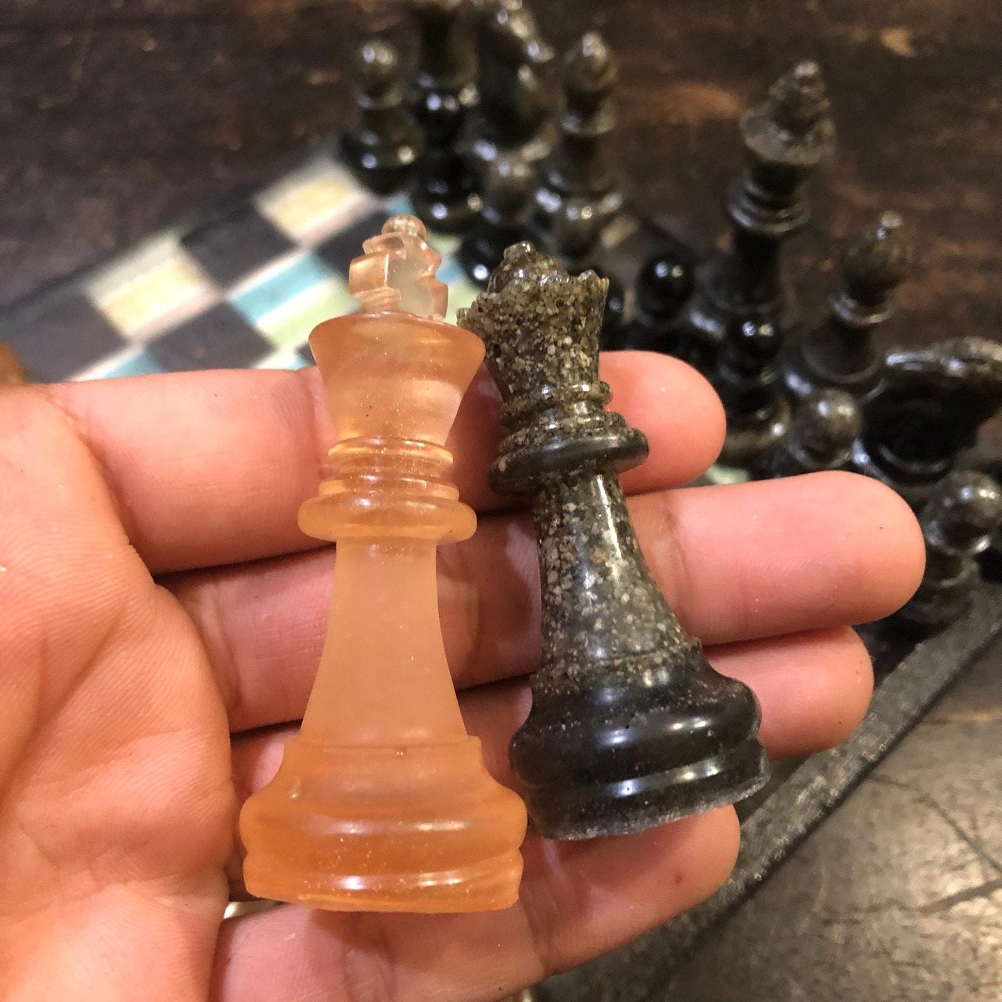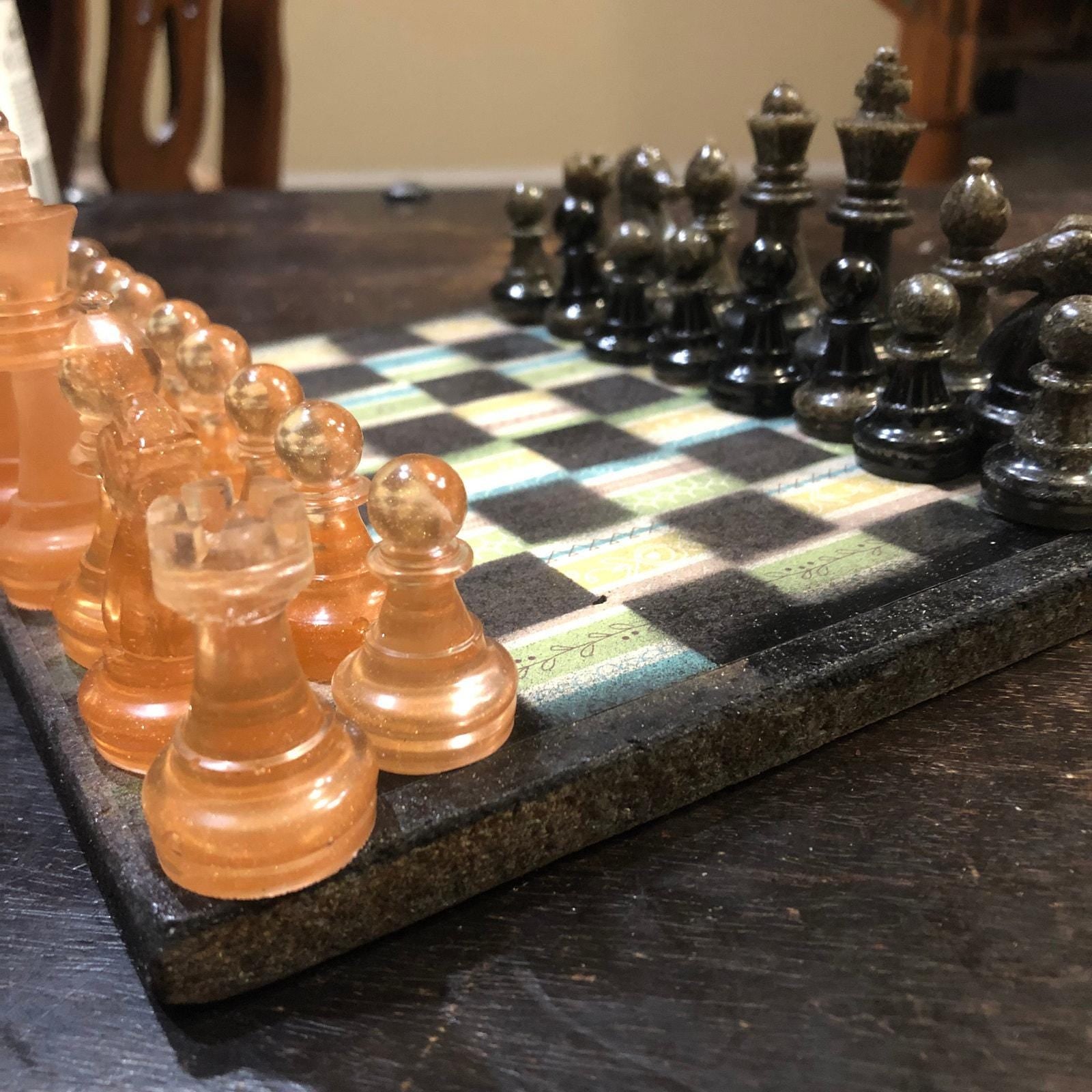 Introducing our exclusive Handcrafted Wooden Chess Set, meticulously designed with precision and care. Measuring 8 inches by 8 inches, this chess set features a beautifully painted particle board layered with a sheet of scrapbook paper board that doubles as a work of art. Each set is a unique, one-of-a-kind creation, crafted by hand to ensure that no two sets are alike. Elevate your gaming experience with this exceptional chess set that combines vibrant design with the touch of artisan craftsmanship. This chess board comes with chess pieces and is handcrafted as a one of one