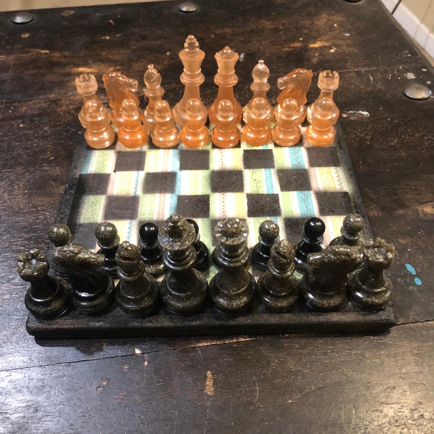 Scrapbook Chess Set - Vintage Stripes (Resin Pieces)