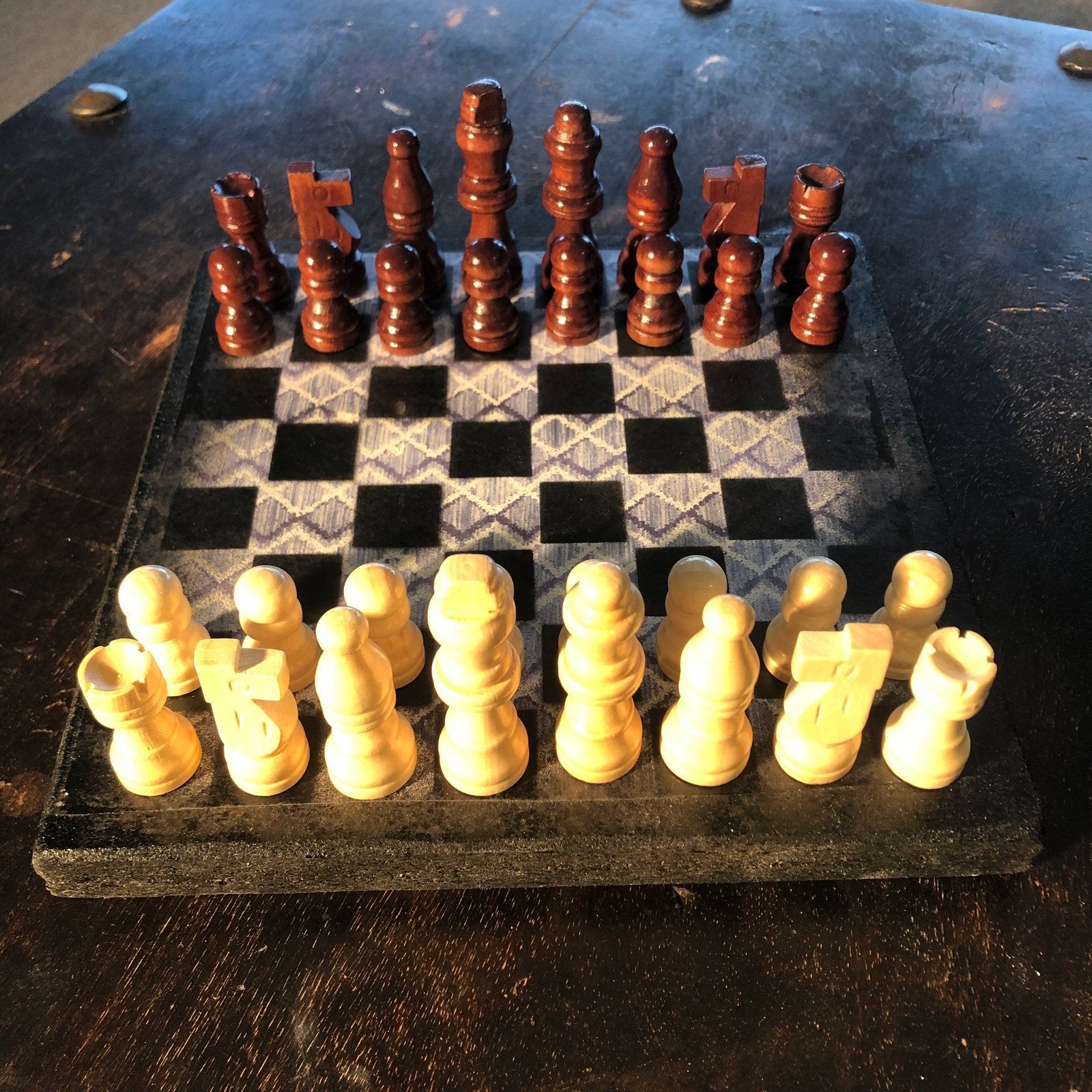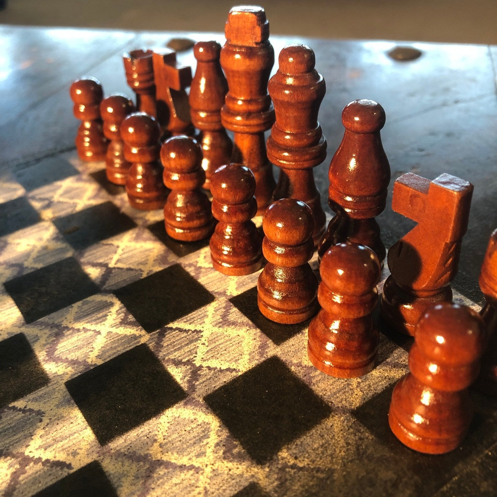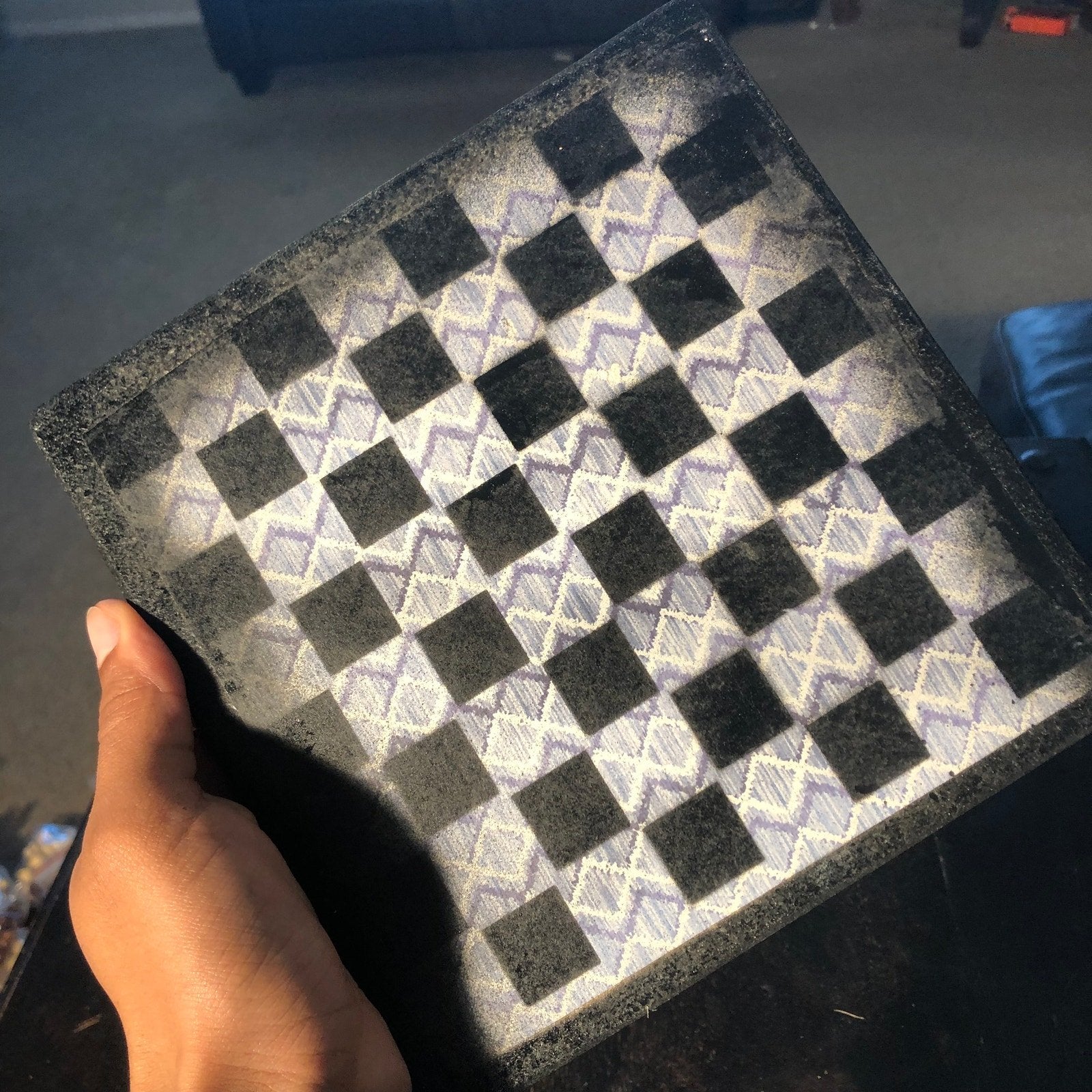Introducing our exclusive Handcrafted Wooden Chess Set, meticulously designed with precision and care. Measuring 8 inches by 8 inches, this chess set features a beautifully painted particle board layered with a sheet of scrapbook paper board that doubles as a work of art. Each set is a unique, one-of-a-kind creation, crafted by hand to ensure that no two sets are alike. Elevate your gaming experience with this exceptional chess set that combines vibrant design with the touch of artisan craftsmanship. This chess board comes with chess pieces and is handcrafted as a one of one