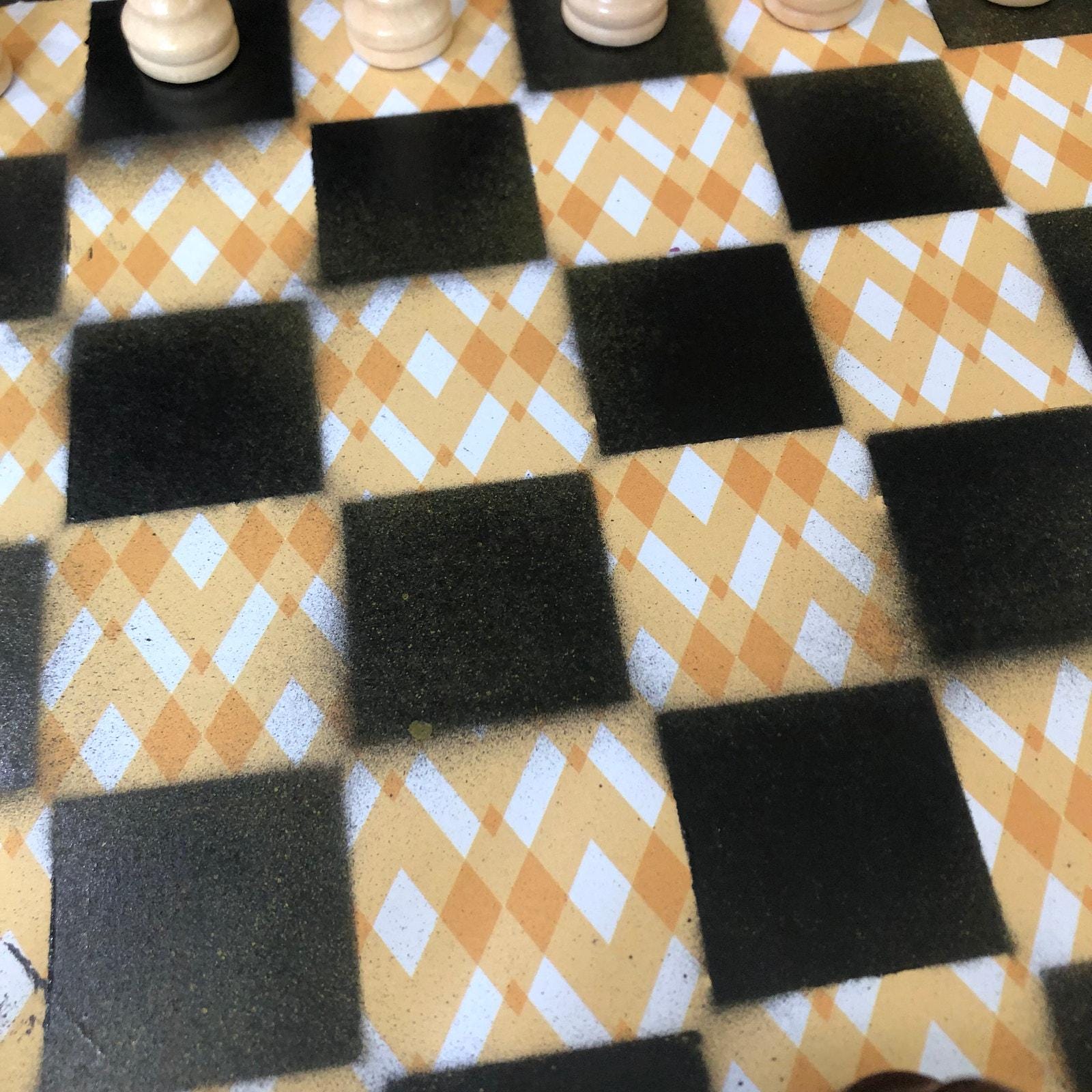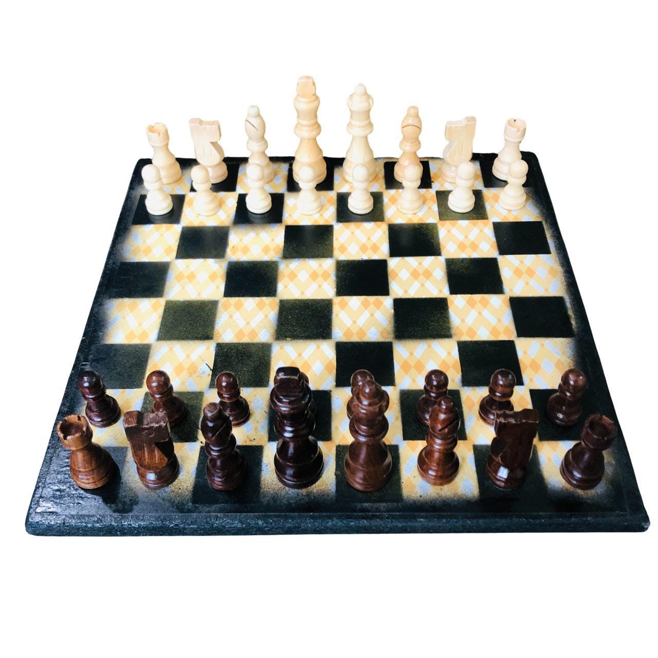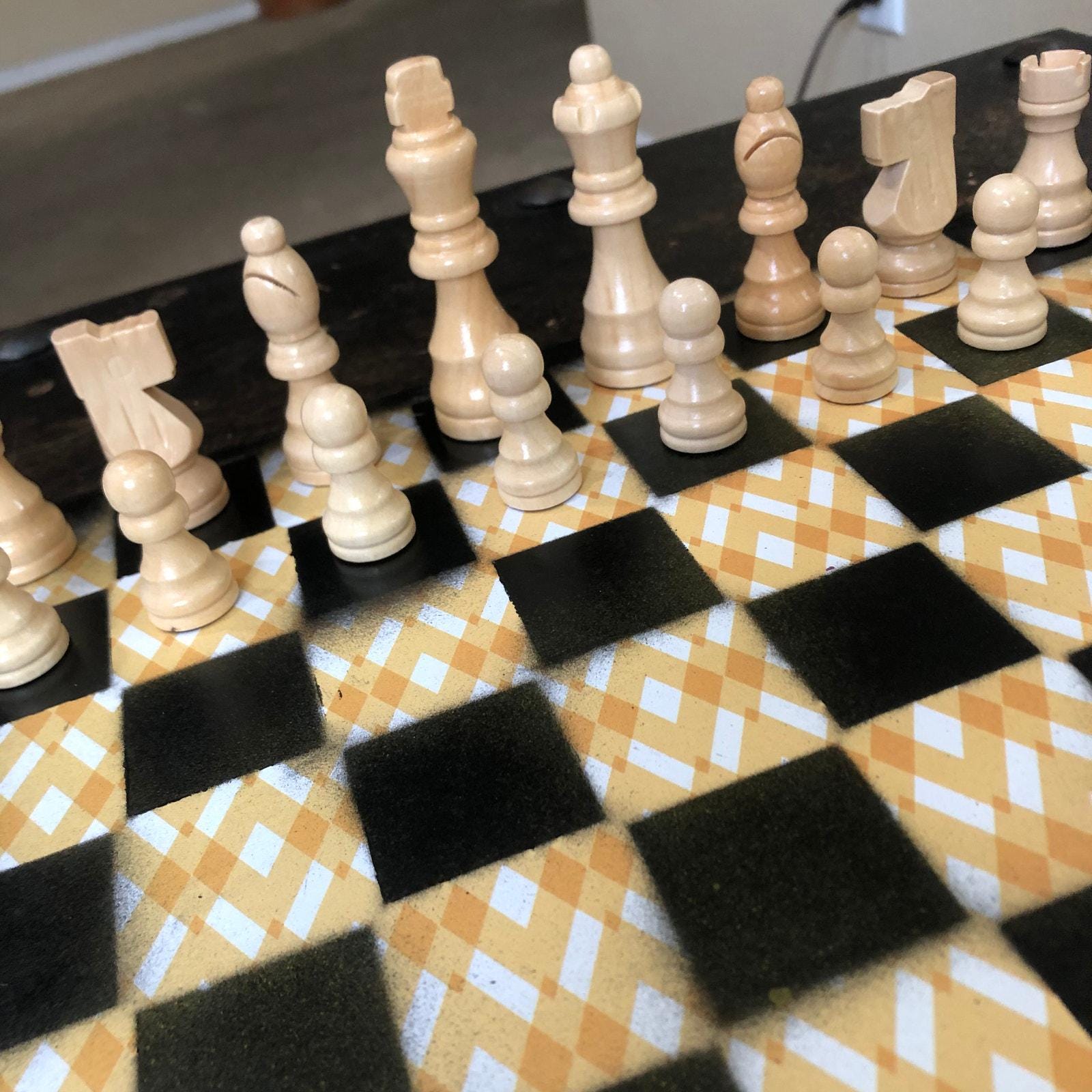 Introducing our exclusive Handcrafted Wooden Chess Set, meticulously designed with precision and care. Measuring 12 inches by 12 inches, this chess set features a beautifully painted particle board layered with a sheet of scrapbook paper board that doubles as a work of art. Each set is a unique, one-of-a-kind creation, crafted by hand to ensure that no two sets are alike. Elevate your gaming experience with this exceptional chess set that combines vibrant design with the touch of artisan craftsmanship. This chess board comes with chess pieces and is handcrafted as a one of one