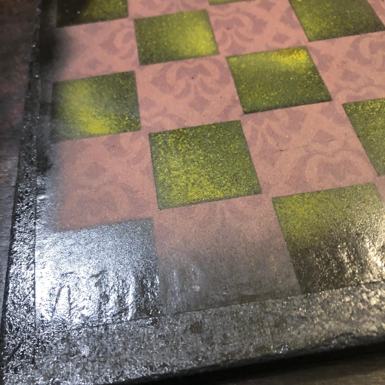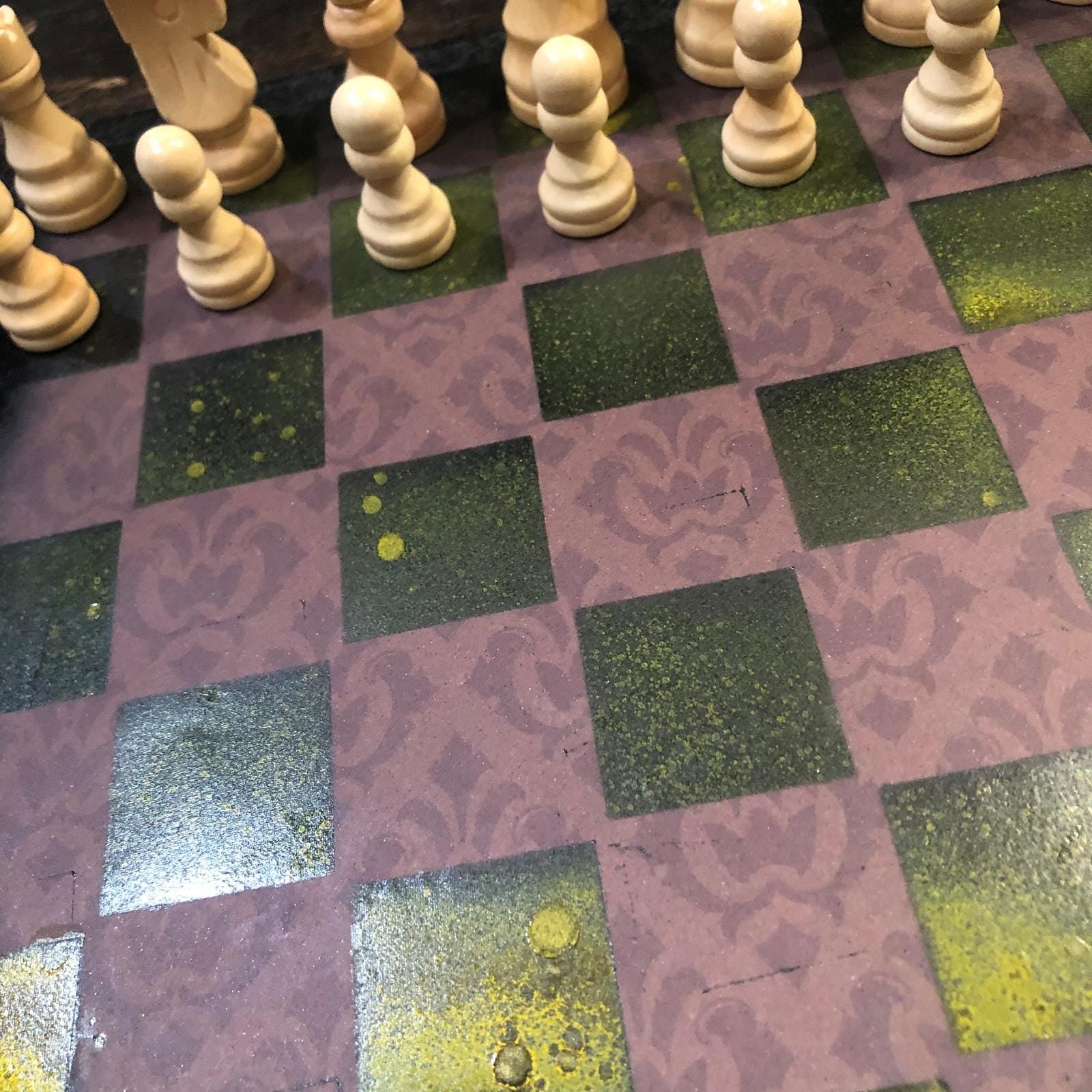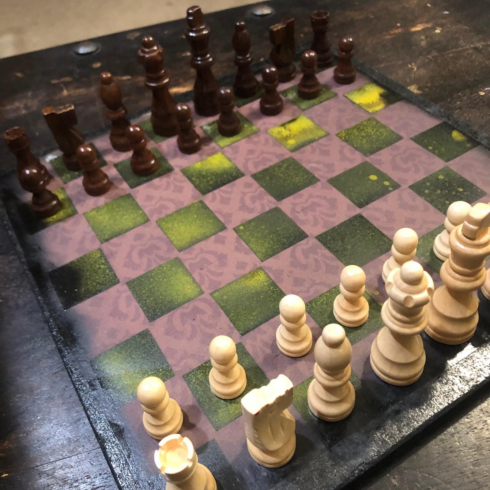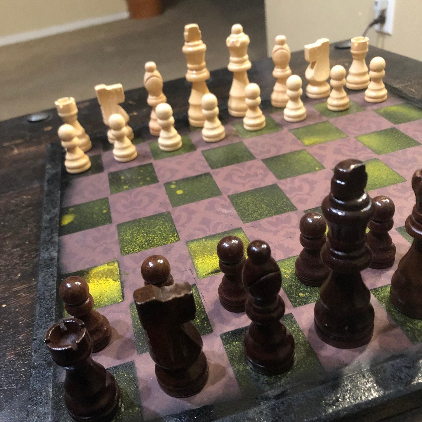 Introducing our exclusive Handcrafted Wooden Chess Set, meticulously designed with precision and care. Measuring 12 inches by 12 inches, this chess set features a beautifully painted particle board layered with a sheet of scrapbook paper board that doubles as a work of art. Each set is a unique, one-of-a-kind creation, crafted by hand to ensure that no two sets are alike. Elevate your gaming experience with this exceptional chess set that combines vibrant design with the touch of artisan craftsmanship. This chess board comes with chess pieces and is handcrafted as a one of one