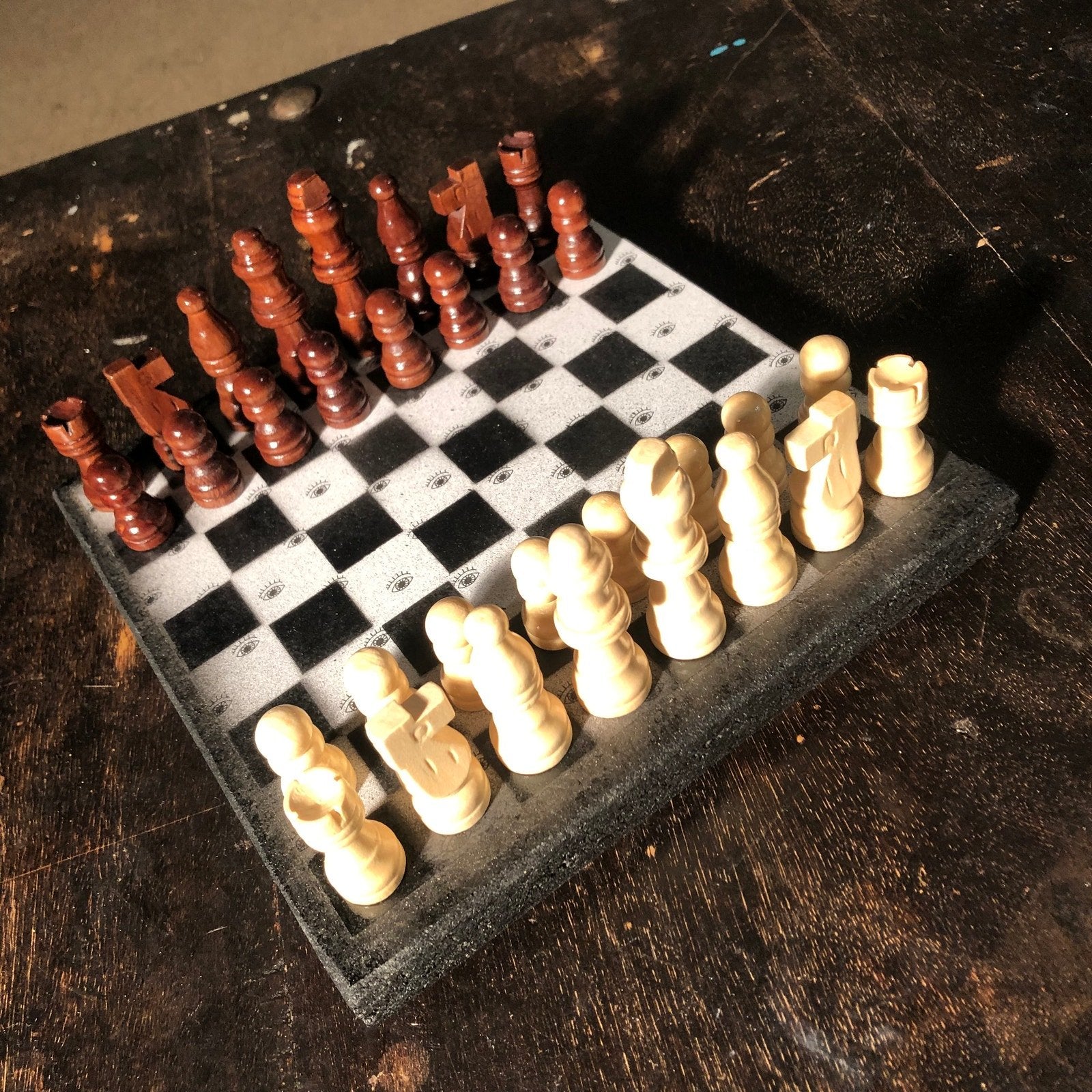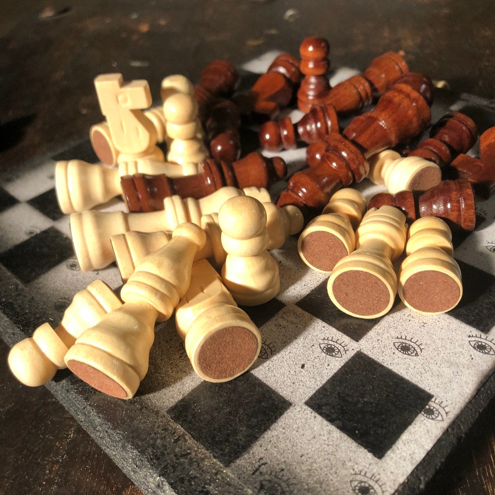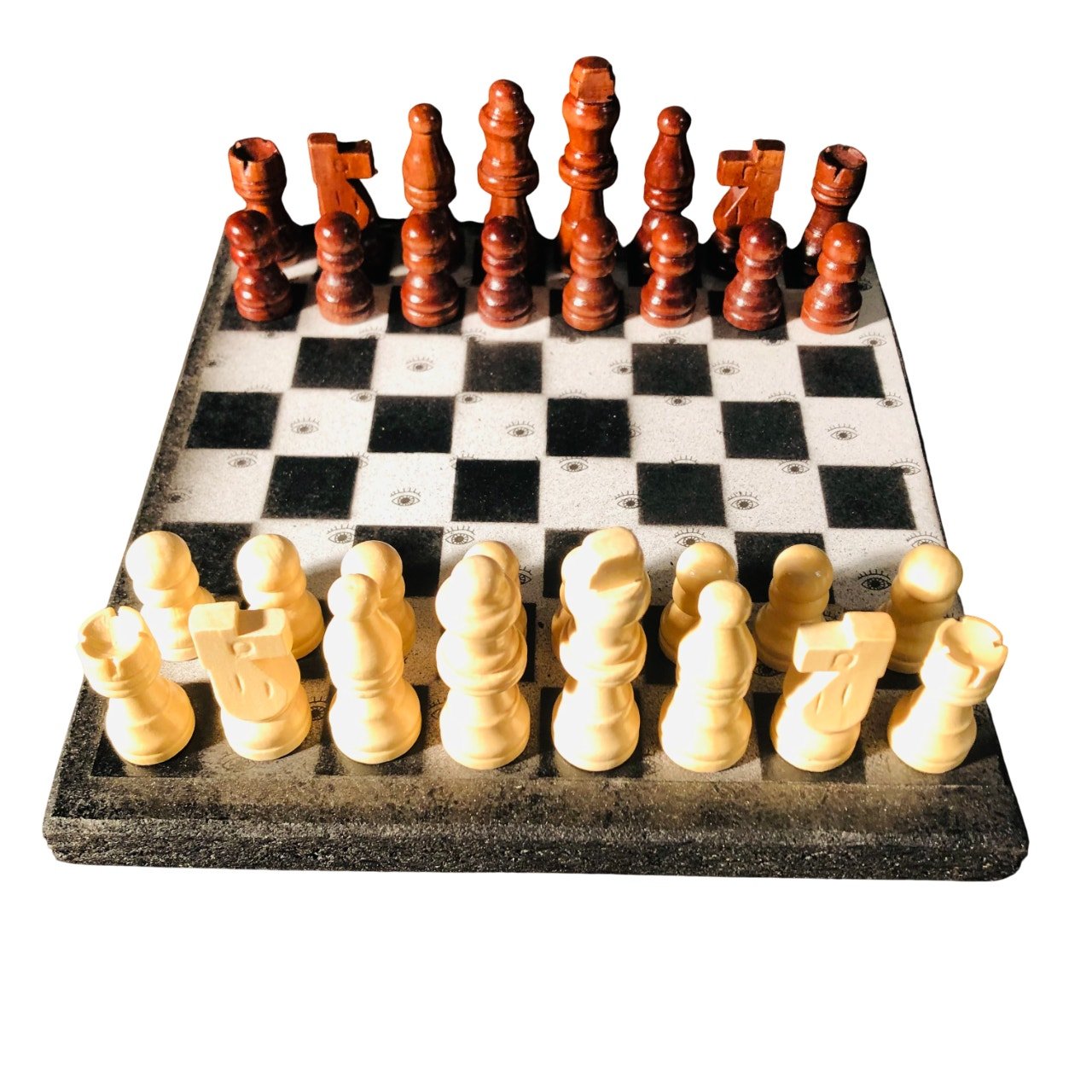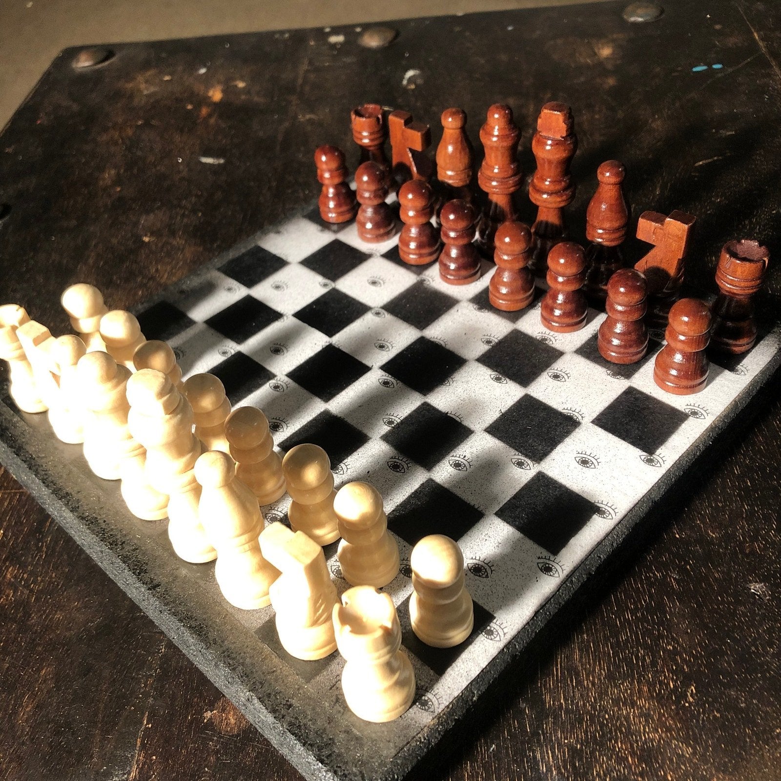 Introducing our exclusive Handcrafted Wooden Chess Set, meticulously designed with precision and care. Measuring 8 inches by 8 inches, this chess set features a beautifully painted particle board layered with a sheet of scrapbook paper board that doubles as a work of art. Each set is a unique, one-of-a-kind creation, crafted by hand to ensure that no two sets are alike. Elevate your gaming experience with this exceptional chess set that combines vibrant design with the touch of artisan craftsmanship. This chess board comes with chess pieces and is handcrafted as a one of one