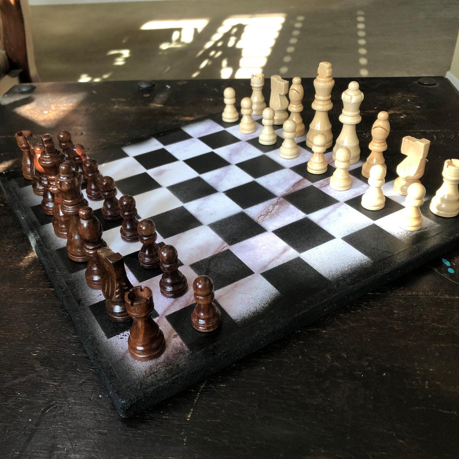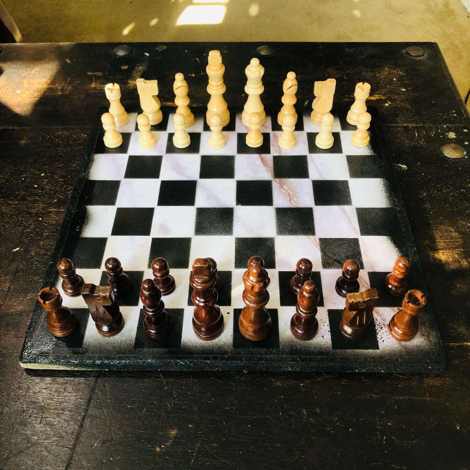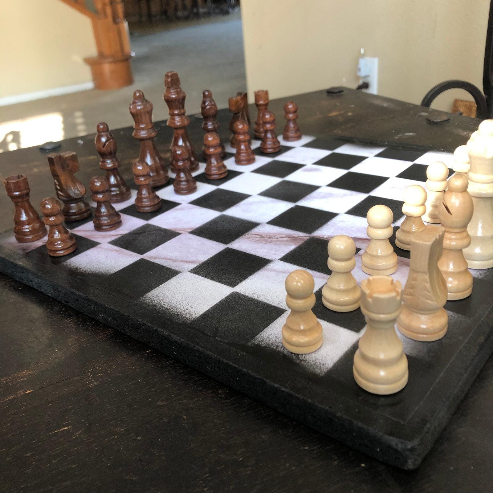 Introducing our exclusive Handcrafted Wooden Chess Set, meticulously designed with precision and care. Measuring 12 inches by 12 inches, this chess set features a beautifully painted particle board layered with a sheet of scrapbook paper board that doubles as a work of art. Each set is a unique, one-of-a-kind creation, crafted by hand to ensure that no two sets are alike. Elevate your gaming experience with this exceptional chess set that combines vibrant design with the touch of artisan craftsmanship. This chess board comes with chess pieces and is handcrafted as a one of one
