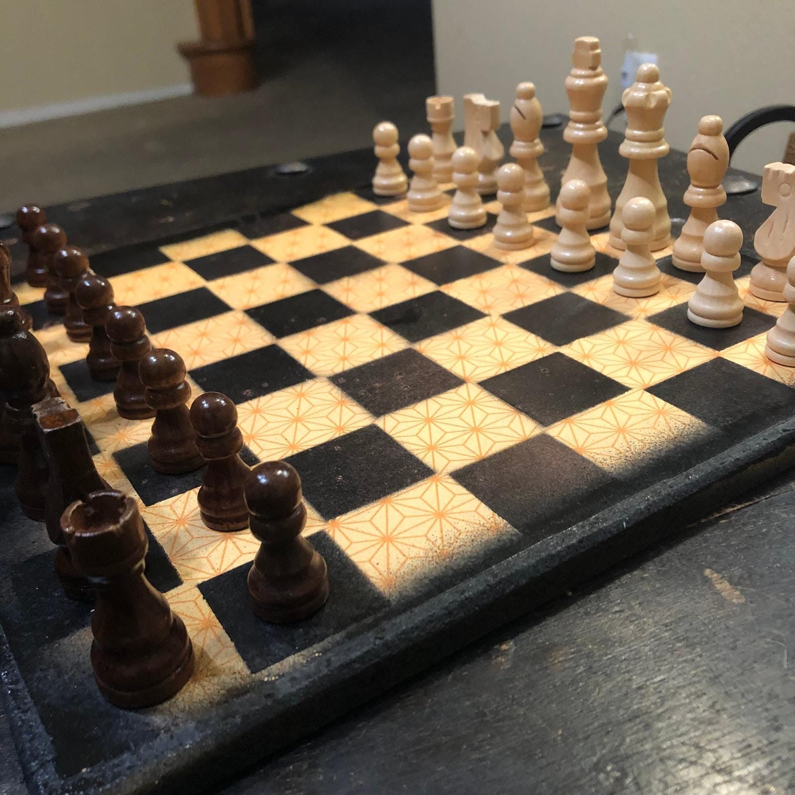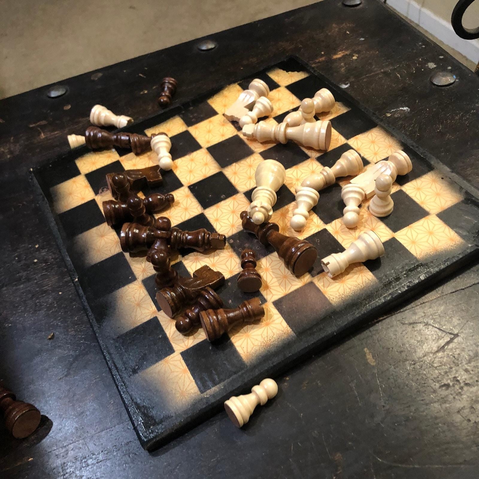Introducing our exclusive Handcrafted Wooden Chess Set, meticulously designed with precision and care. Measuring 12 inches by 12 inches, this chess set features a beautifully painted particle board layered with a sheet of scrapbook paper board that doubles as a work of art. Each set is a unique, one-of-a-kind creation, crafted by hand to ensure that no two sets are alike. Elevate your gaming experience with this exceptional chess set that combines vibrant design with the touch of artisan craftsmanship. This chess board comes with chess pieces and is handcrafted as a one of one