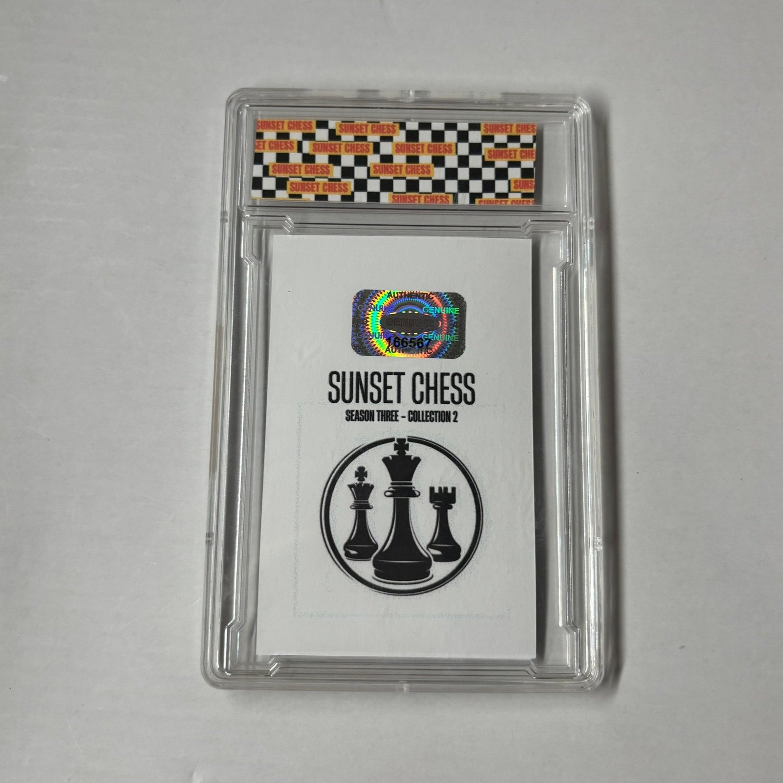 This card is chess-themed, making it a great addition for chess enthusiasts and collectors alike. With over 10,000 cards in the series, finding the perfectly cut card is part of the fun. Start your collection today and enjoy the thrill of the hunt!