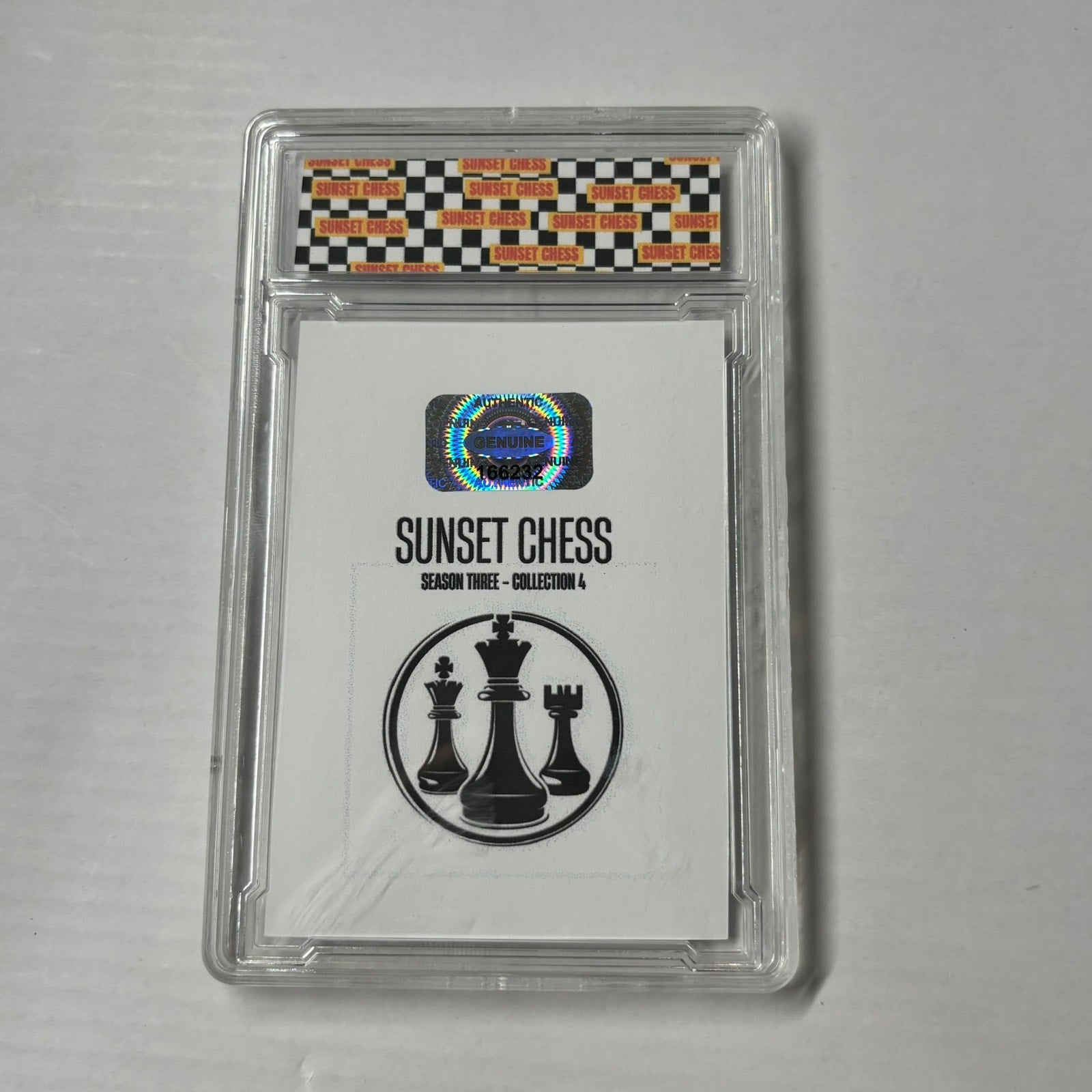This card is chess-themed, making it a great addition for chess enthusiasts and collectors alike. With over 10,000 cards in the series, finding the perfectly cut card is part of the fun. Start your collection today and enjoy the thrill of the hunt!