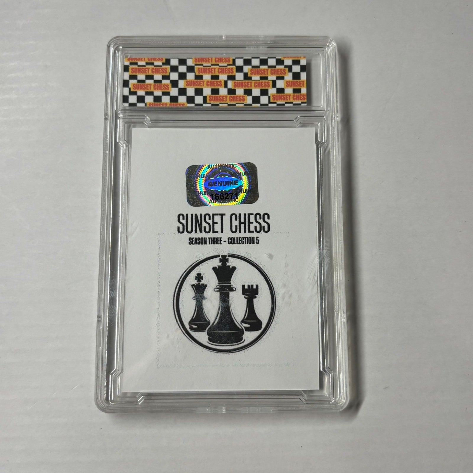 This card is chess-themed, making it a great addition for chess enthusiasts and collectors alike. With over 10,000 cards in the series, finding the perfectly cut card is part of the fun. Start your collection today and enjoy the thrill of the hunt!