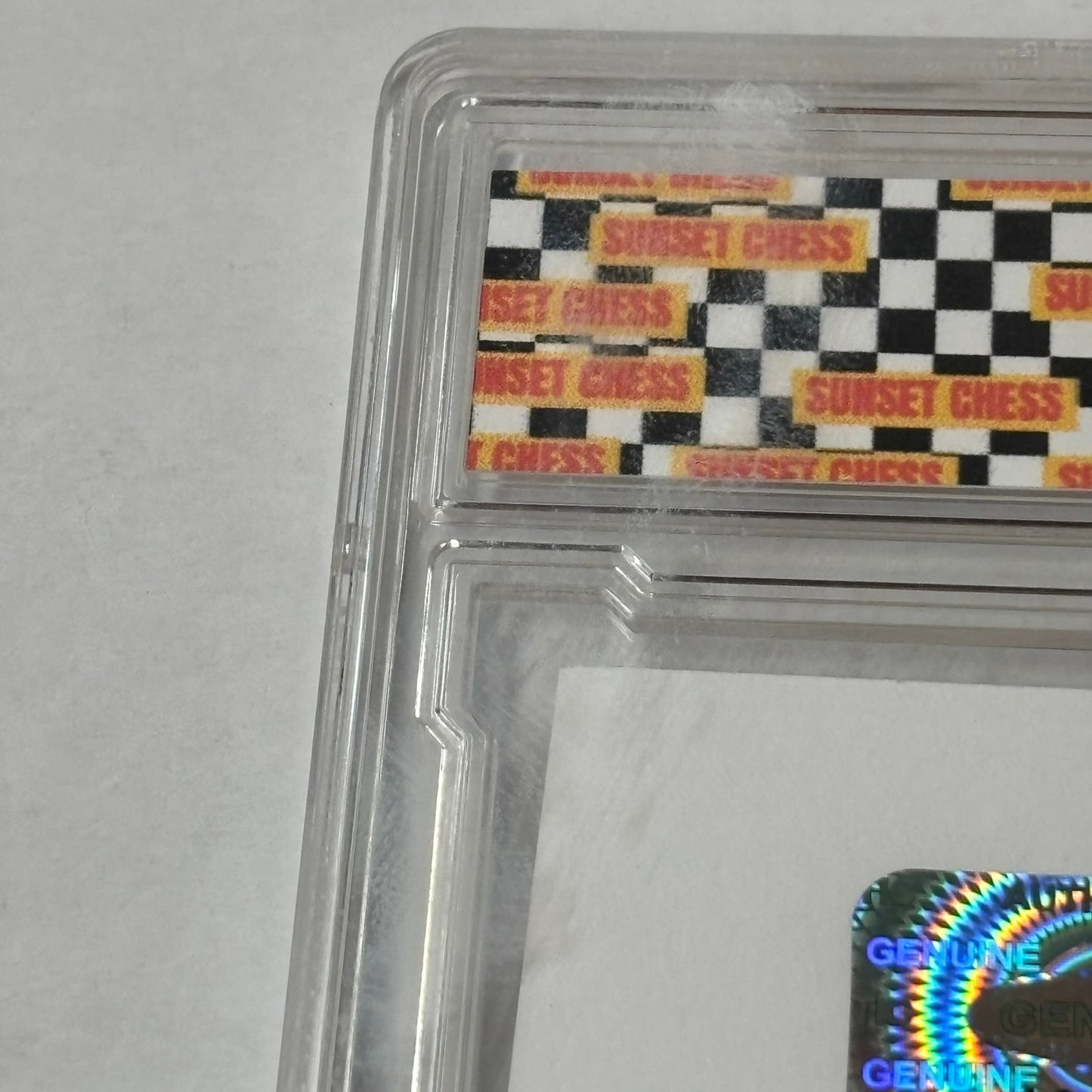 This card is chess-themed, making it a great addition for chess enthusiasts and collectors alike. With over 10,000 cards in the series, finding the perfectly cut card is part of the fun. Start your collection today and enjoy the thrill of the hunt!