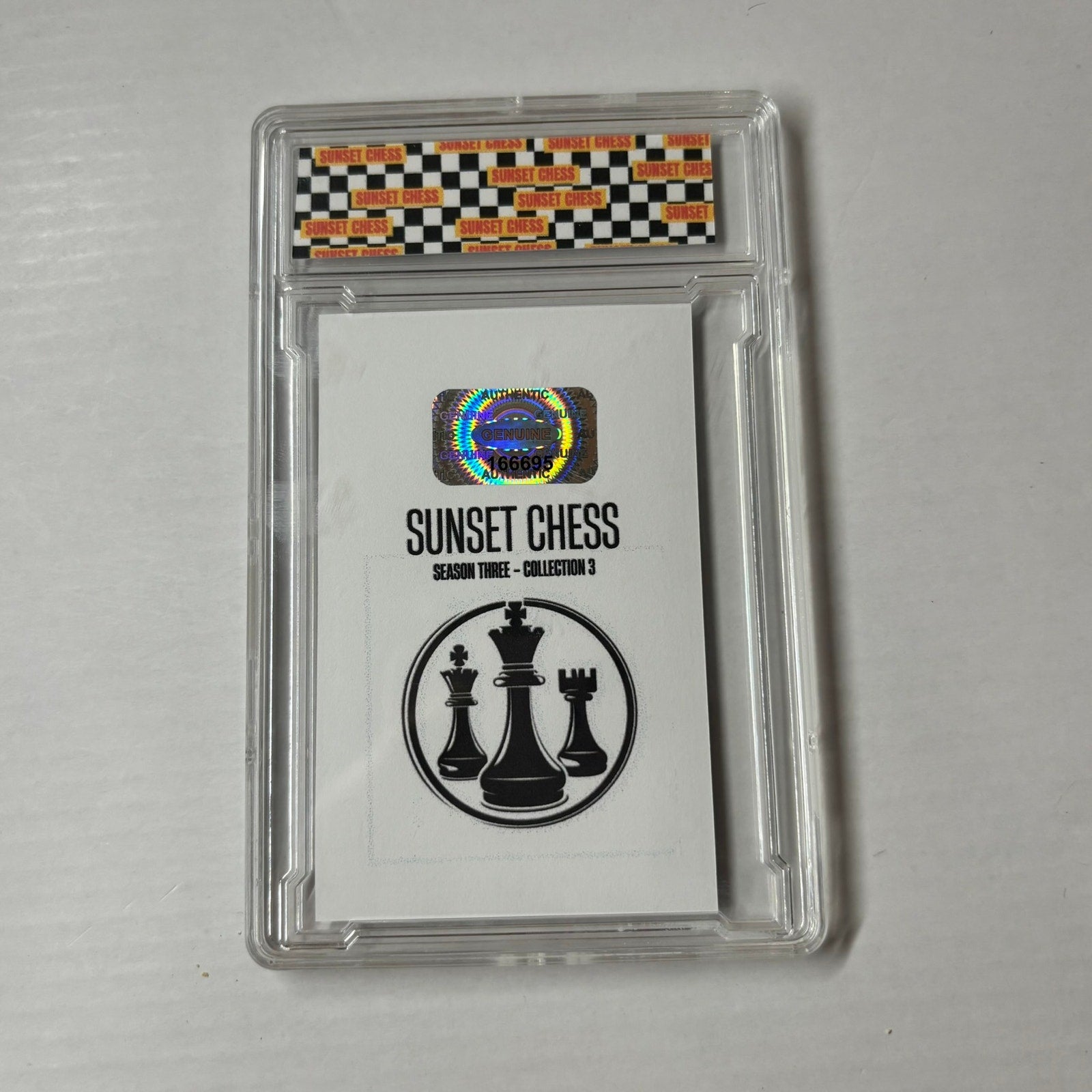 This card is chess-themed, making it a great addition for chess enthusiasts and collectors alike. With over 10,000 cards in the series, finding the perfectly cut card is part of the fun. Start your collection today and enjoy the thrill of the hunt!
