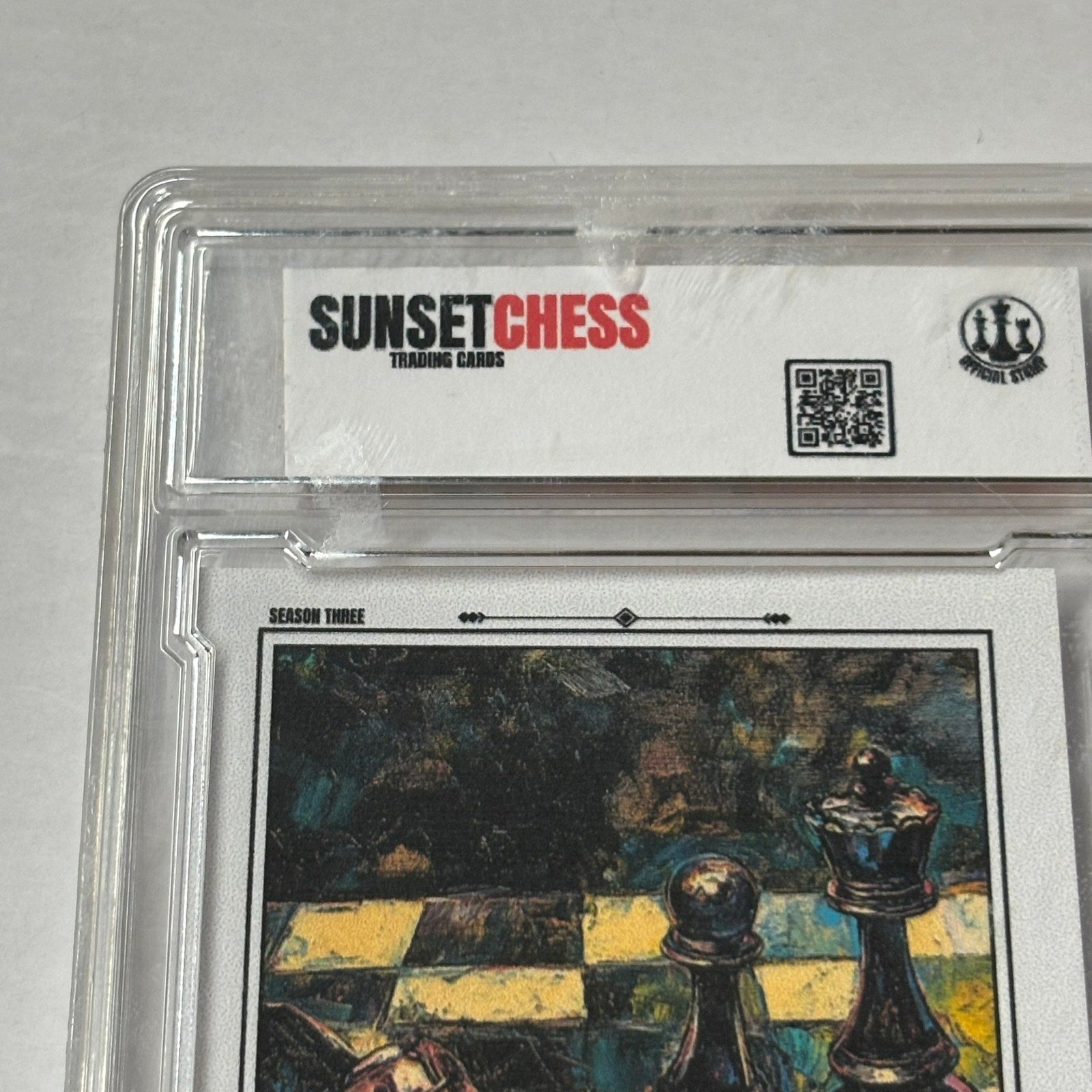 This card is chess-themed, making it a great addition for chess enthusiasts and collectors alike. With over 10,000 cards in the series, finding the perfectly cut card is part of the fun. Start your collection today and enjoy the thrill of the hunt!