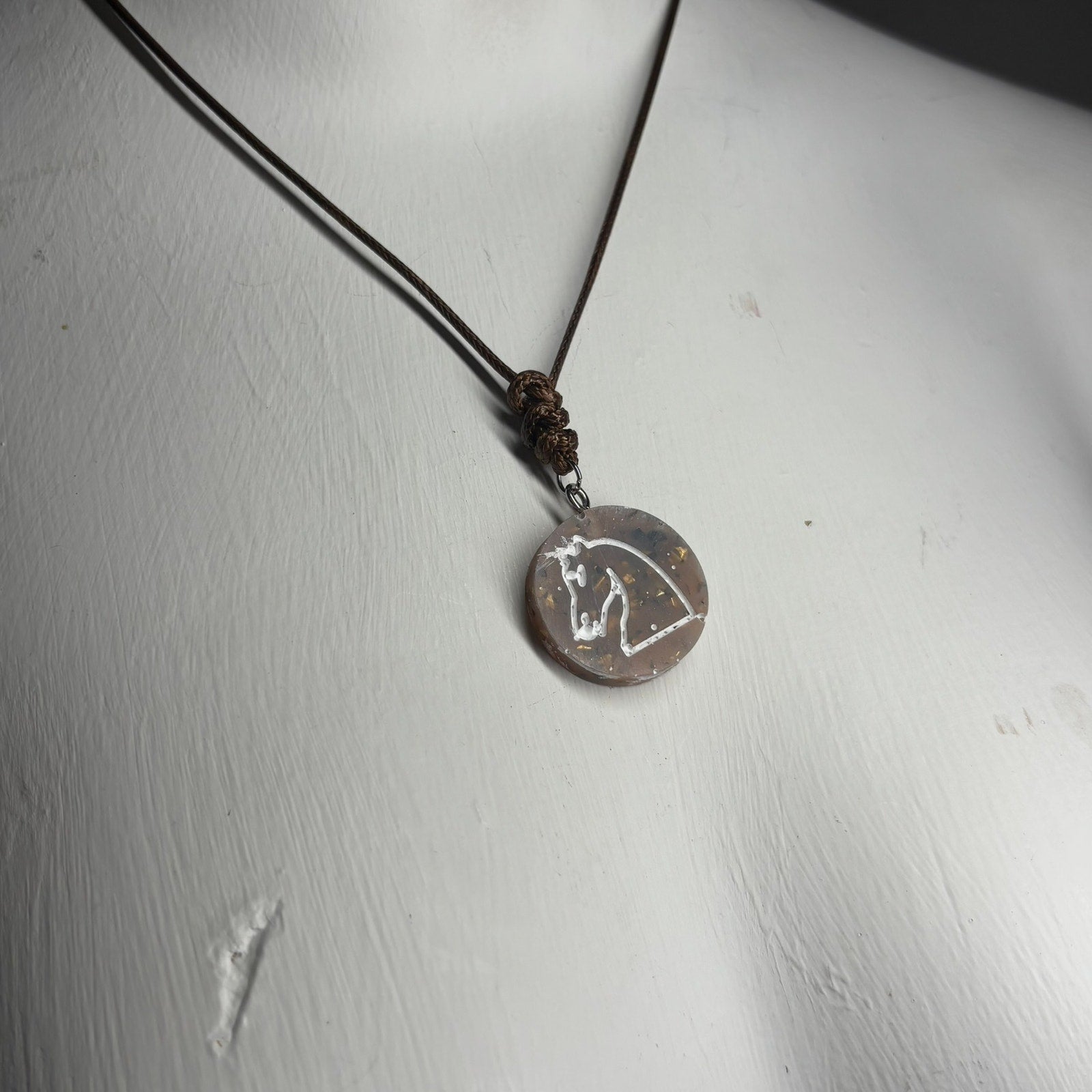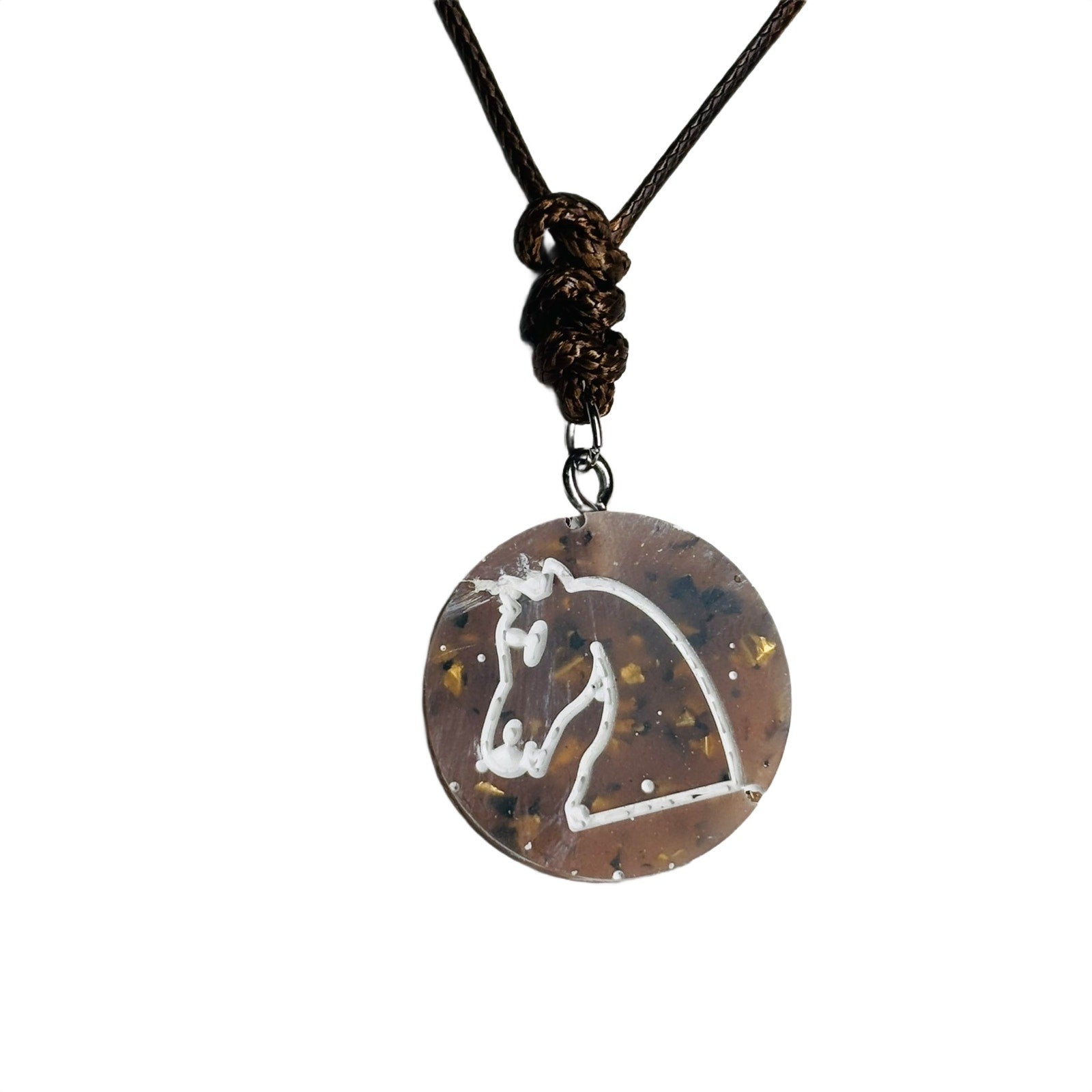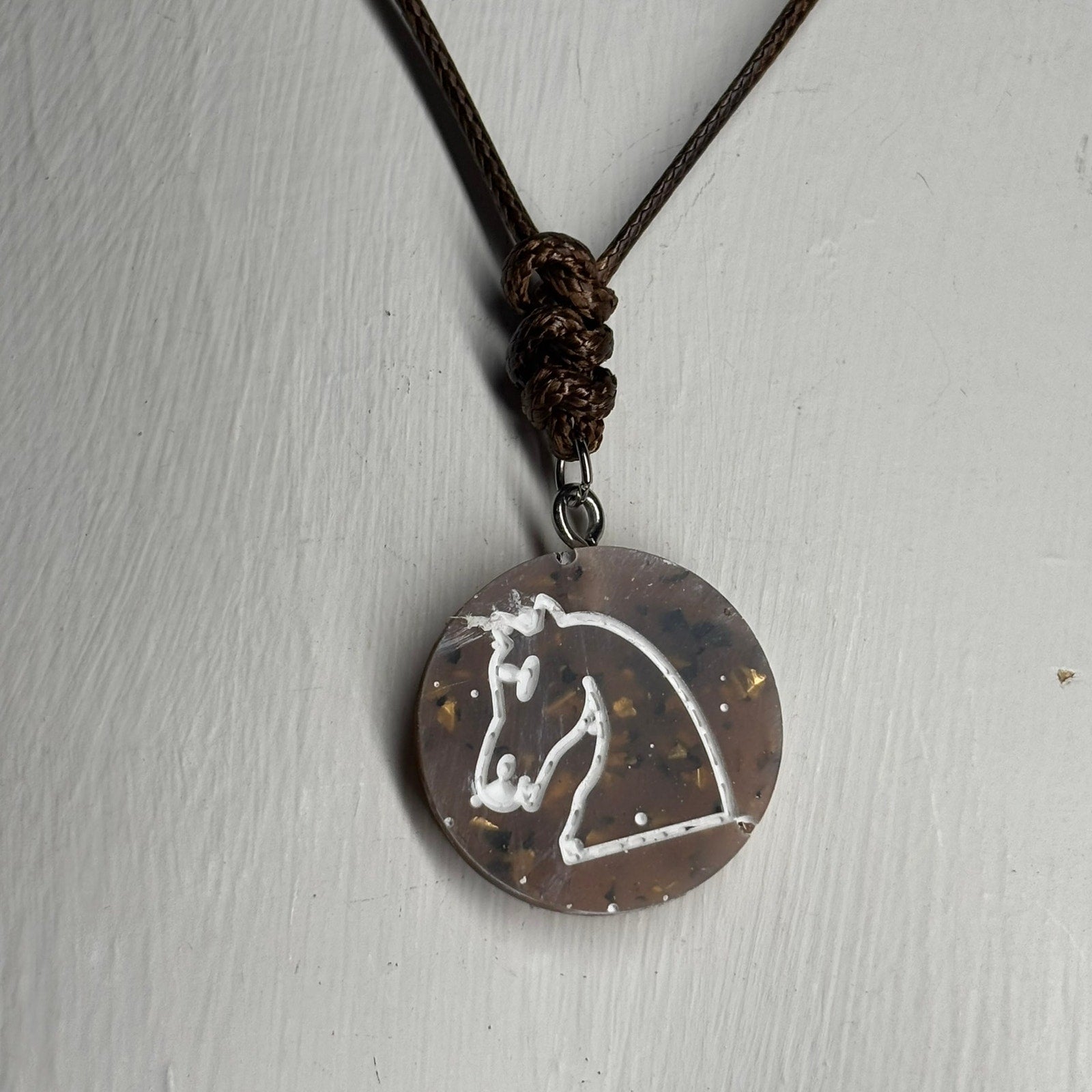 Silver Brown Knight - Handmade Resin Chess Necklace