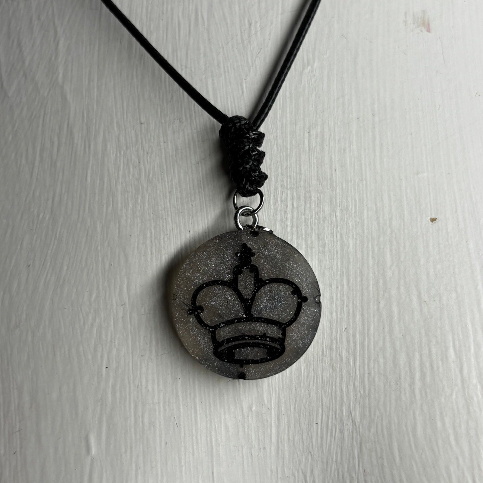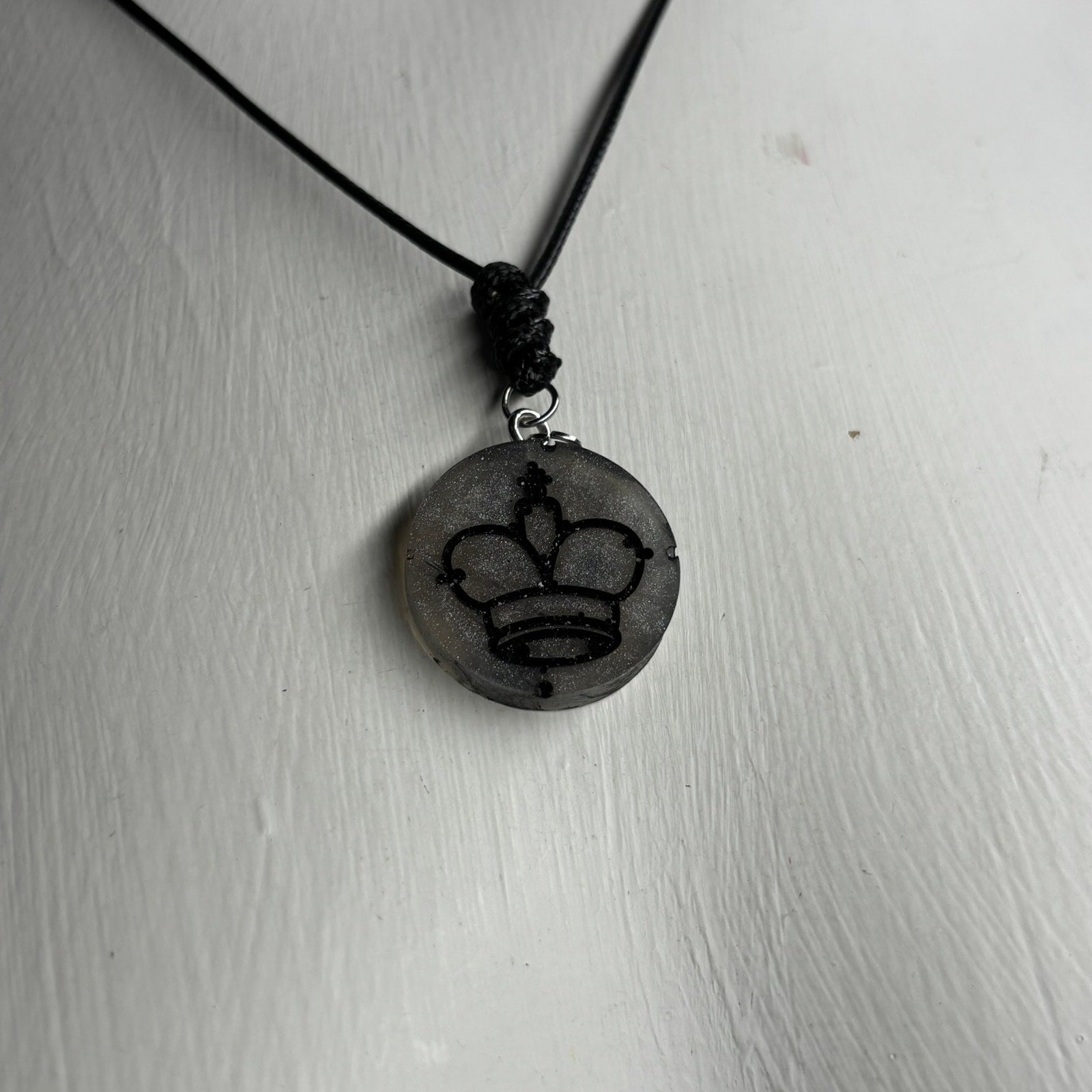 Silver Dark Queen - Handmade Resin Chess Necklace