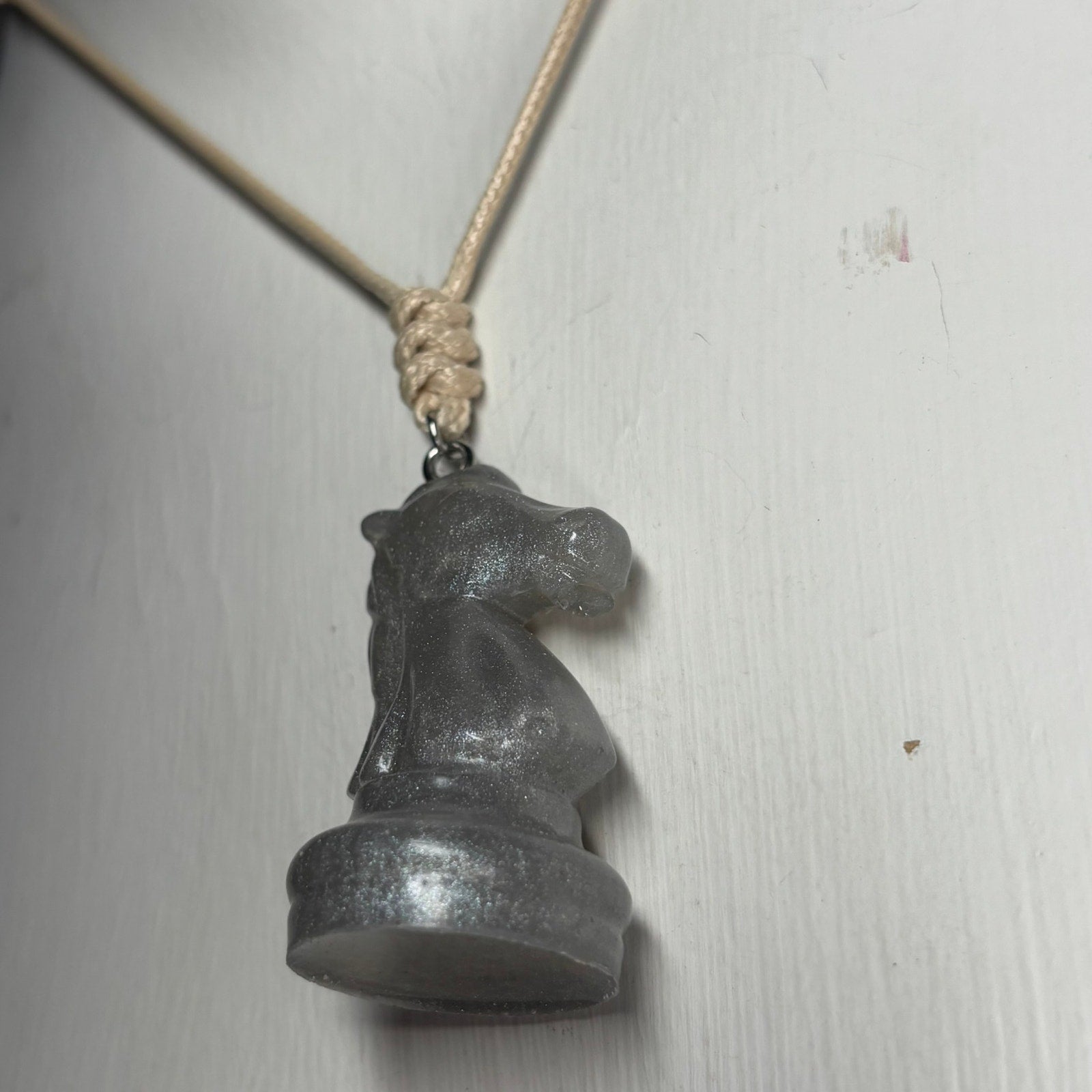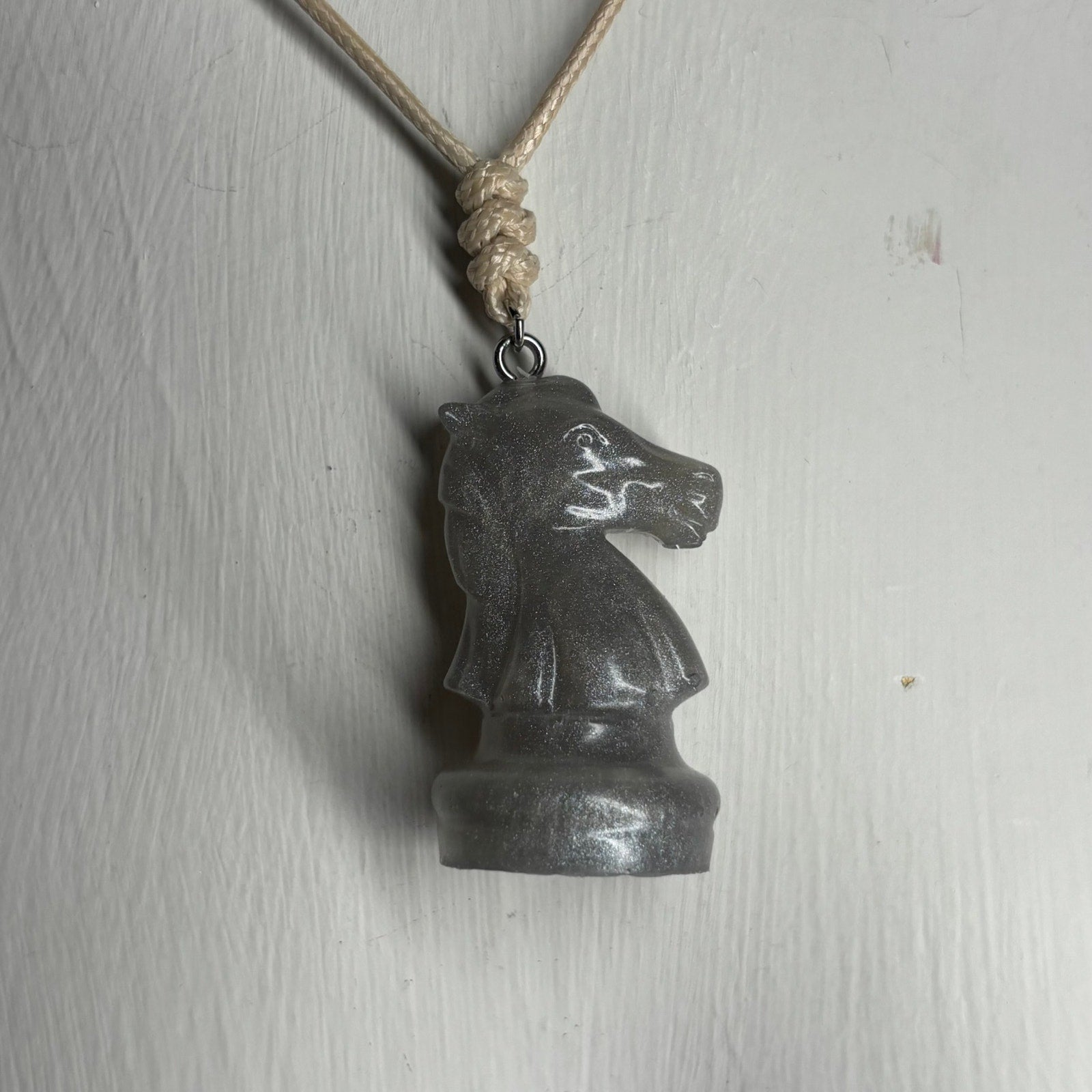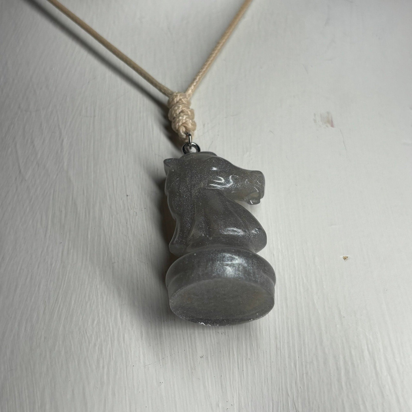 Silver Gray Knight - Handmade Resin Chess Necklace