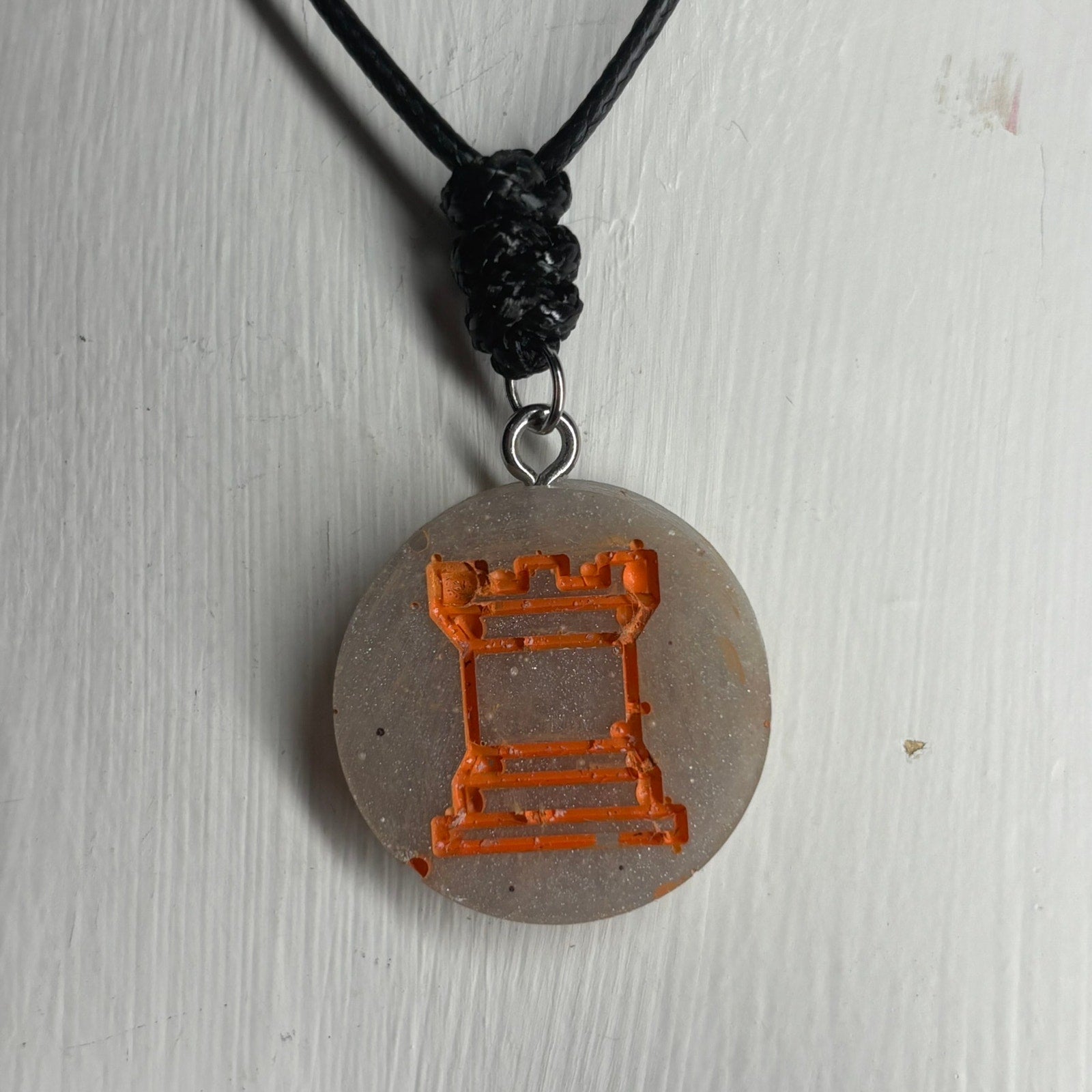 Silver Orange Rook - Handmade Resin Chess Necklace