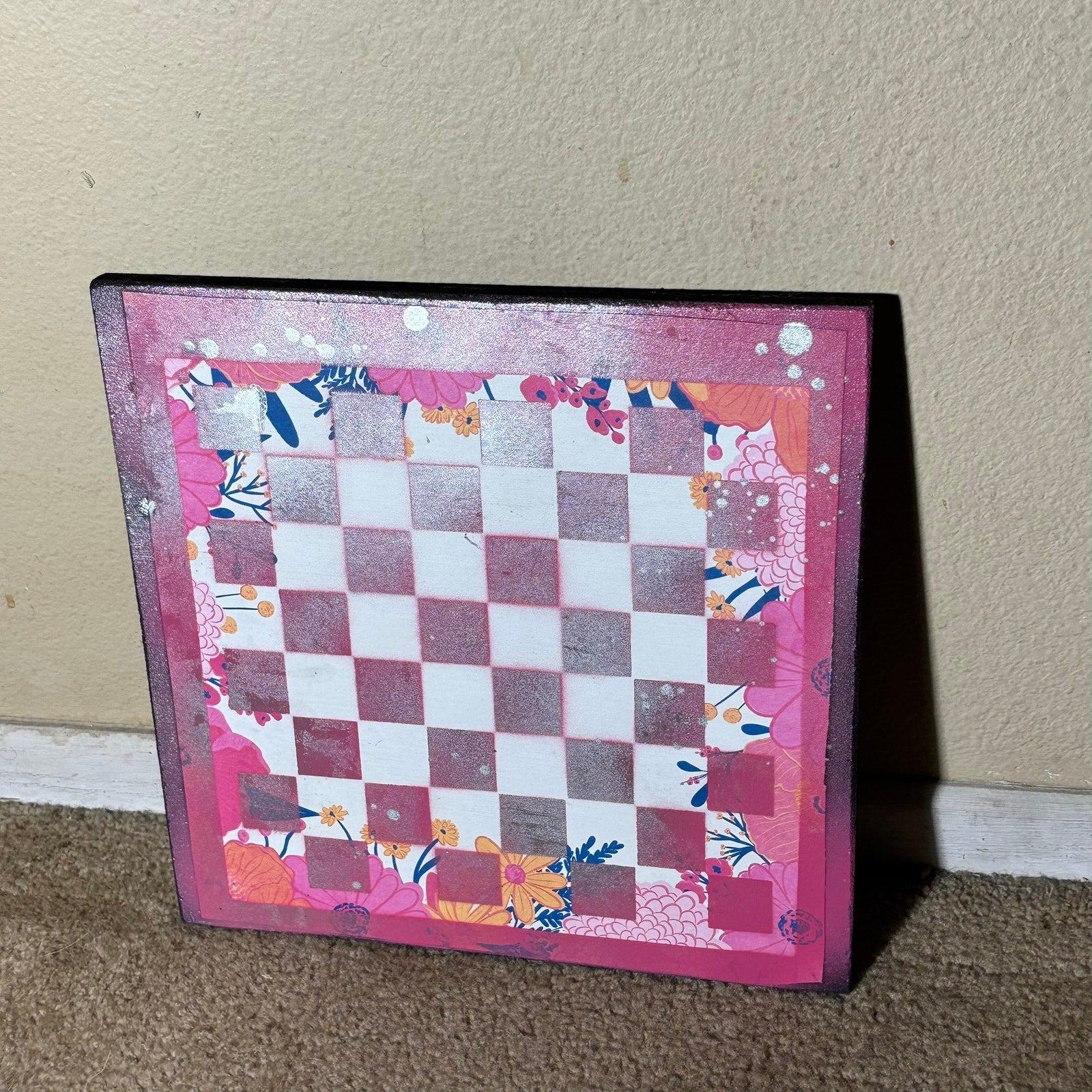 Each board features a layer of beautifully Scrapbook Paper Fused/Glued with particle board to give it a unique pretty pattern. We then paint squares onto the board to make them into fabulous chess boards. Made with a sturdy particle board base and smooth, beveled edges, this board is stunning.