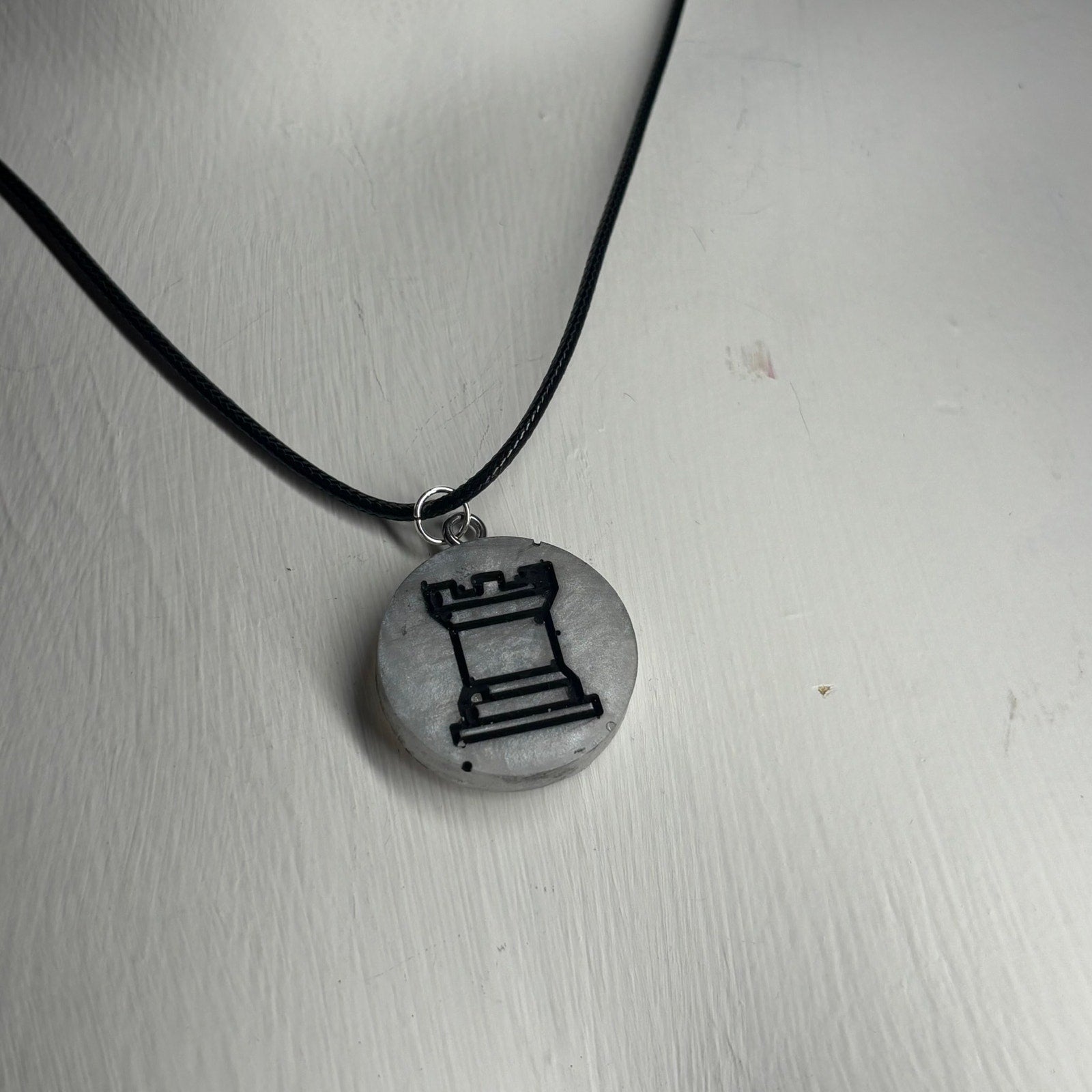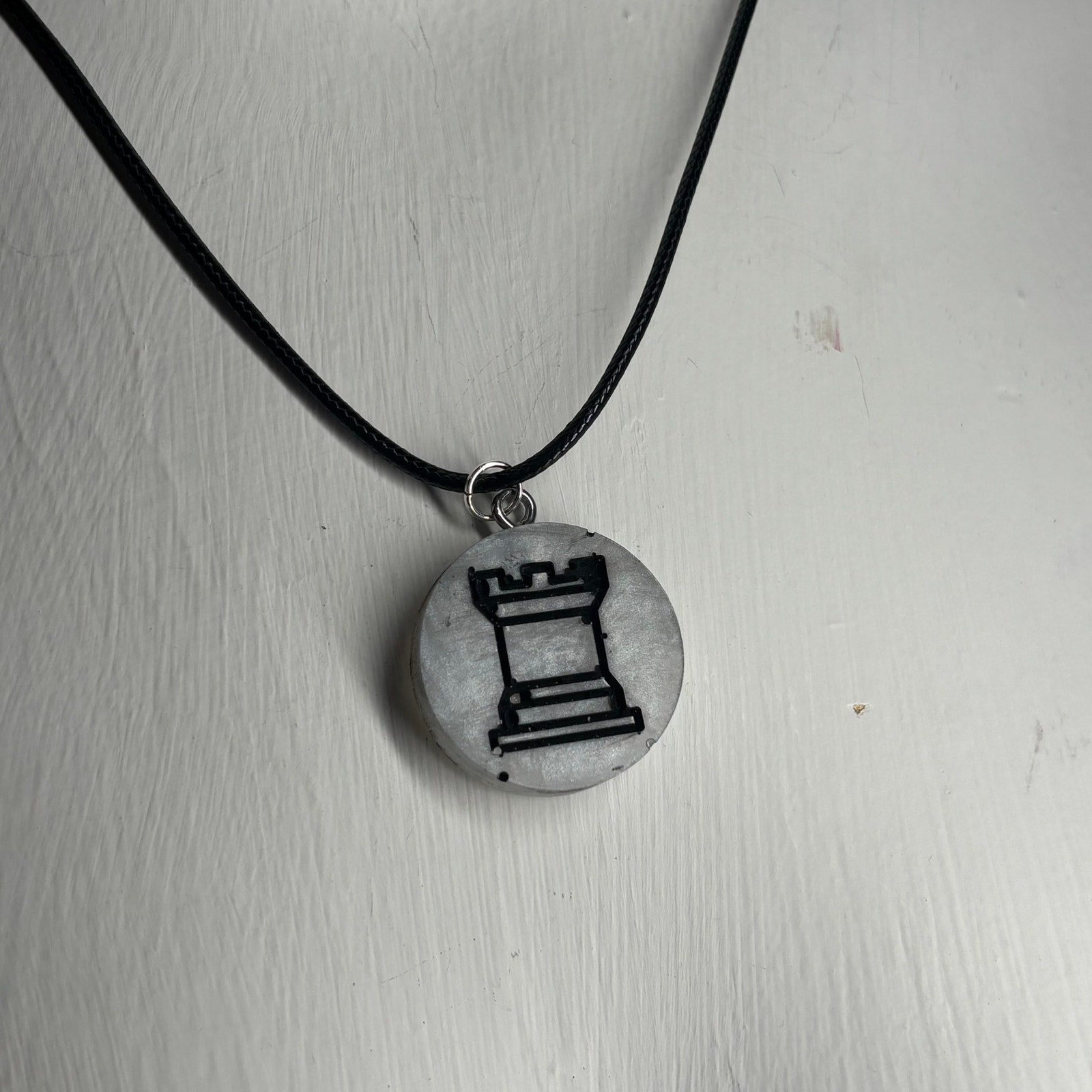 Silver Rook - Handmade Resin Chess Necklace
