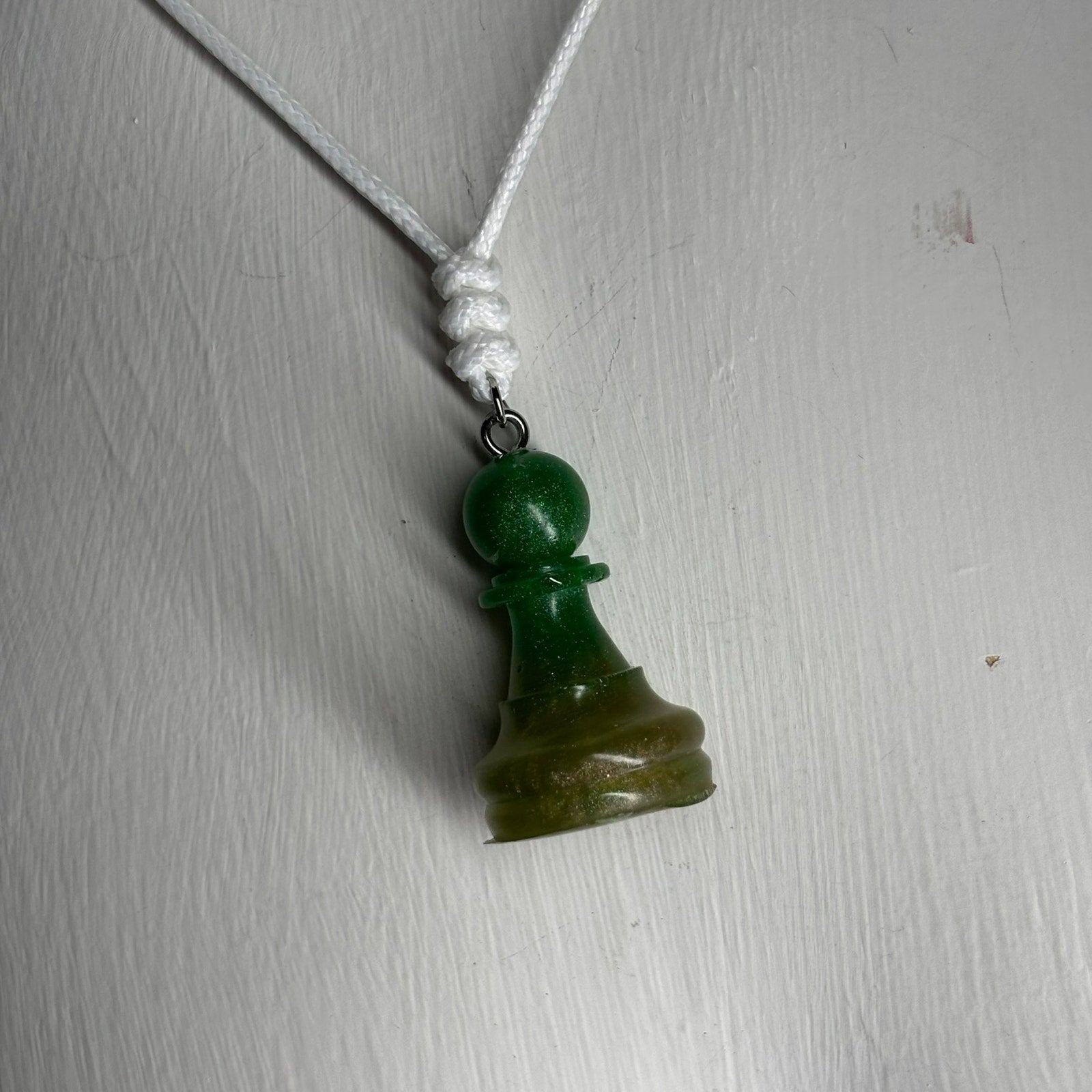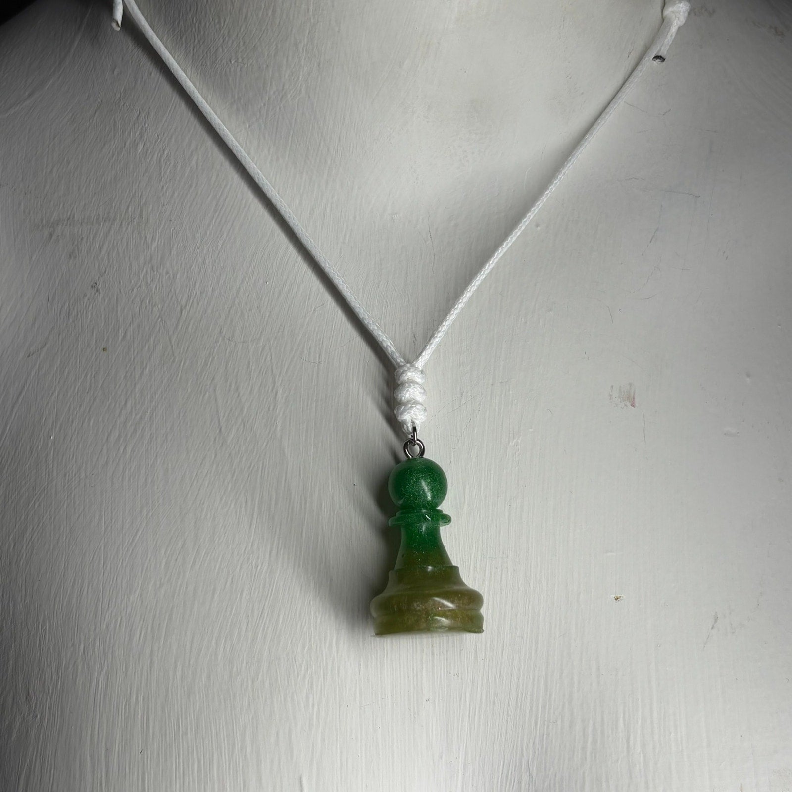 Simple Green Pawn - Handmade Resin Chess Necklace