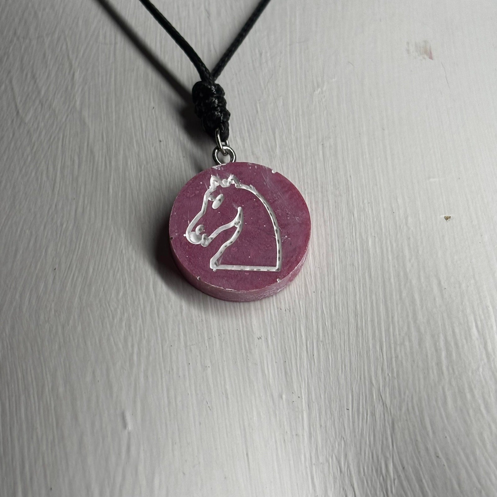 Simple Pink Knight - Handmade Resin Chess Necklace