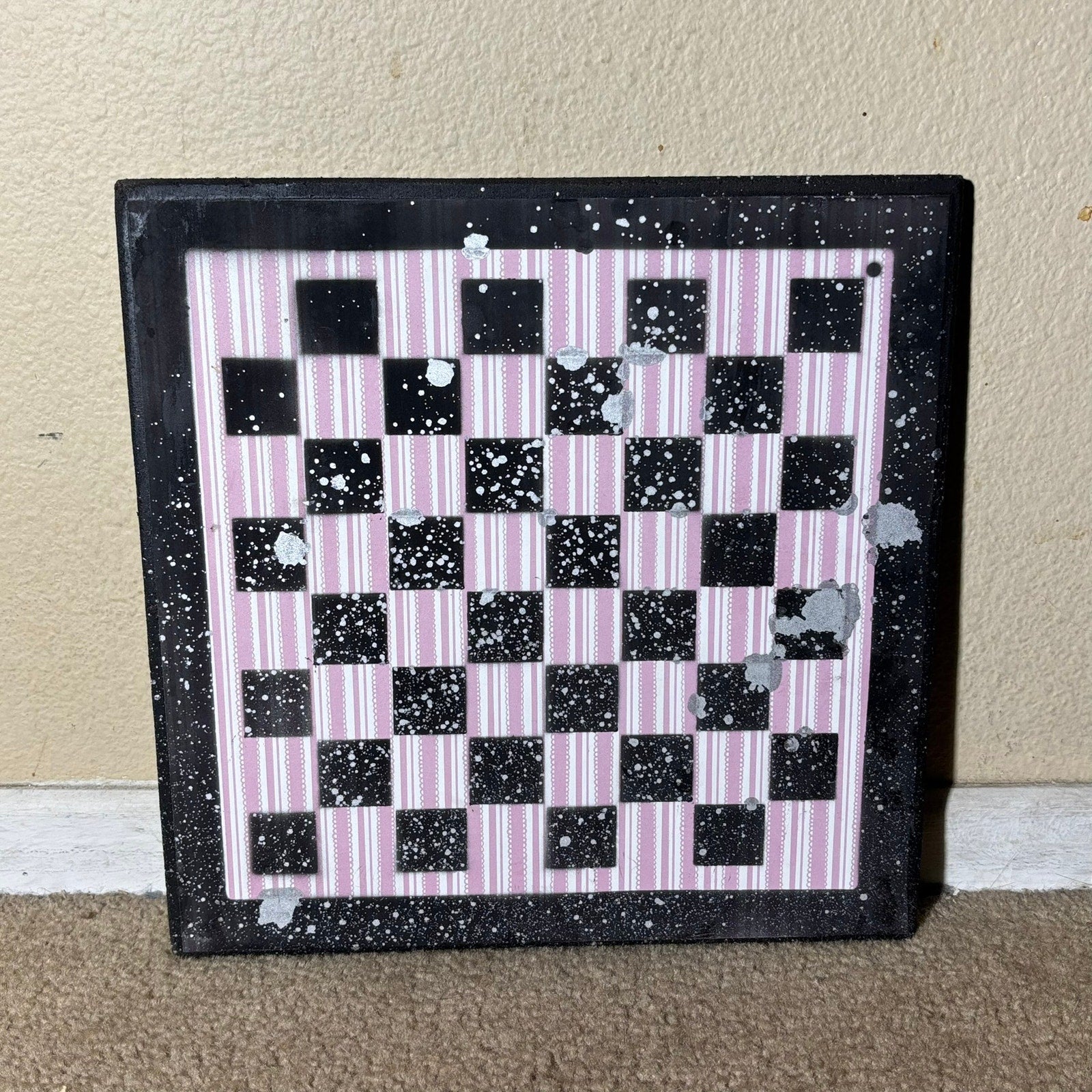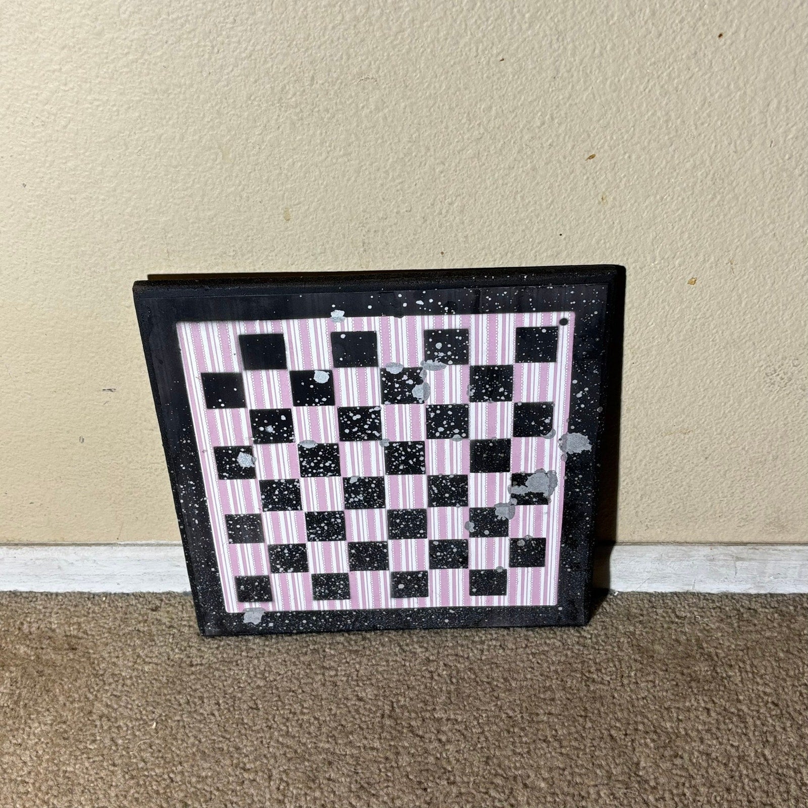 Each board features a layer of beautifully Scrapbook Paper Fused/Glued with particle board to give it a unique pretty pattern. We then paint squares onto the board to make them into fabulous chess boards. Made with a sturdy particle board base and smooth, beveled edges, this board is stunning.