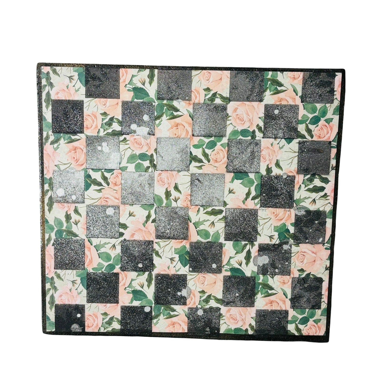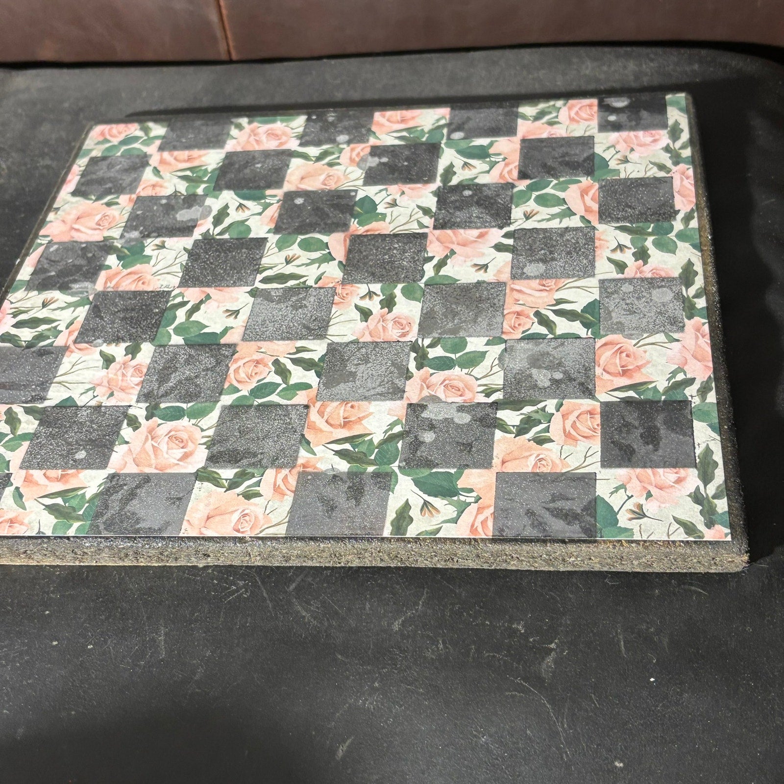 Each board features a layer of beautifully Scrapbook Paper Fused/Glued with particle board to give it a unique pretty pattern. We then paint squares onto the board to make them into fabulous chess boards. Made with a sturdy particle board base and smooth, beveled edges, this board is stunning.