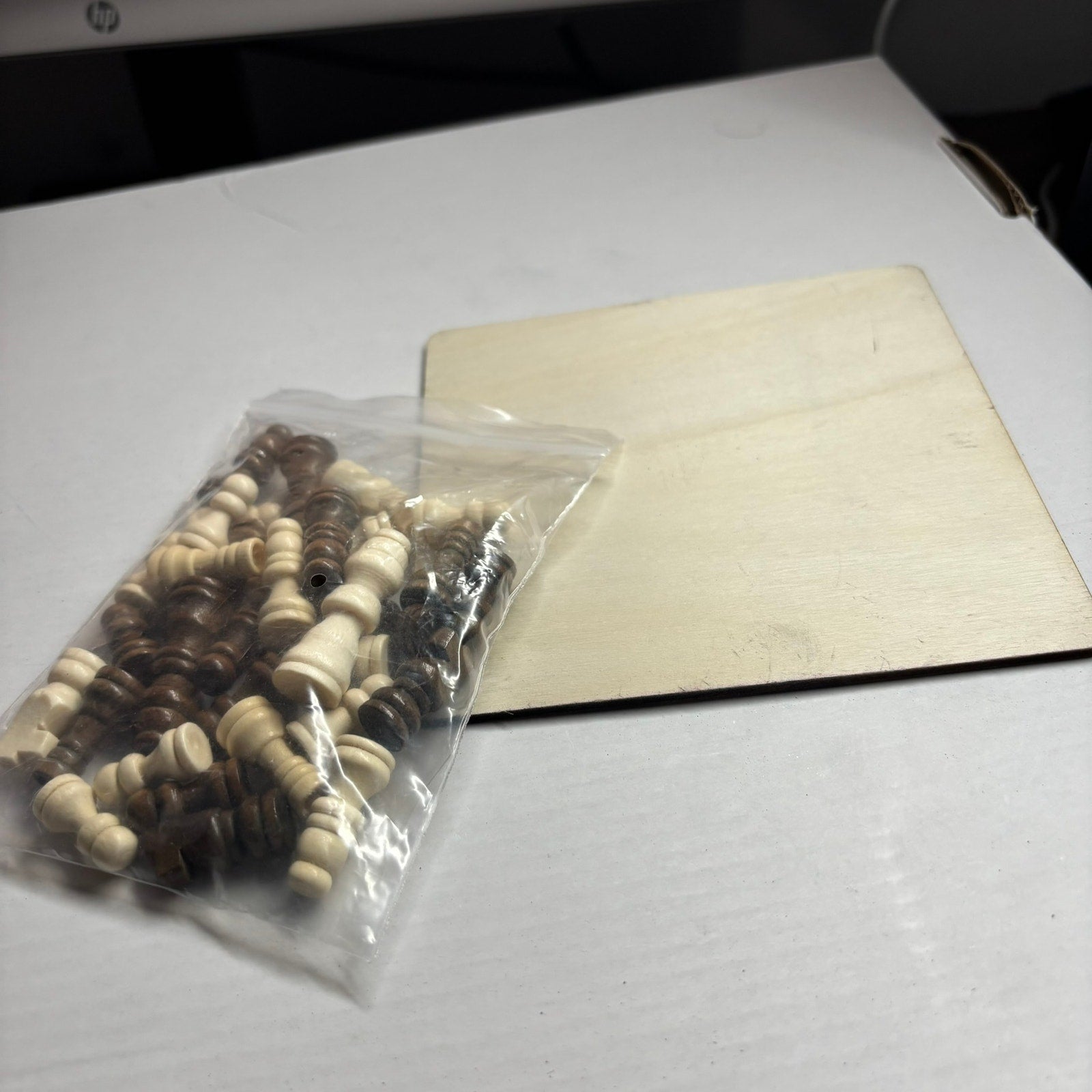 The board is made of a thin piece of wood and has been lovingly hand-painted, giving it a unique and charming touch. This chess set is perfect for collectors, travel enthusiasts, or anyone who appreciates a touch of whimsy.