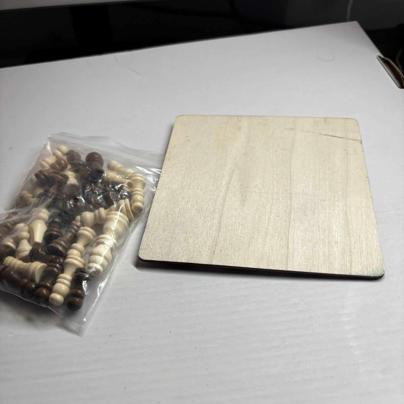 The board is made of a thin piece of wood and has been lovingly hand-painted, giving it a unique and charming touch. This chess set is perfect for collectors, travel enthusiasts, or anyone who appreciates a touch of whimsy.