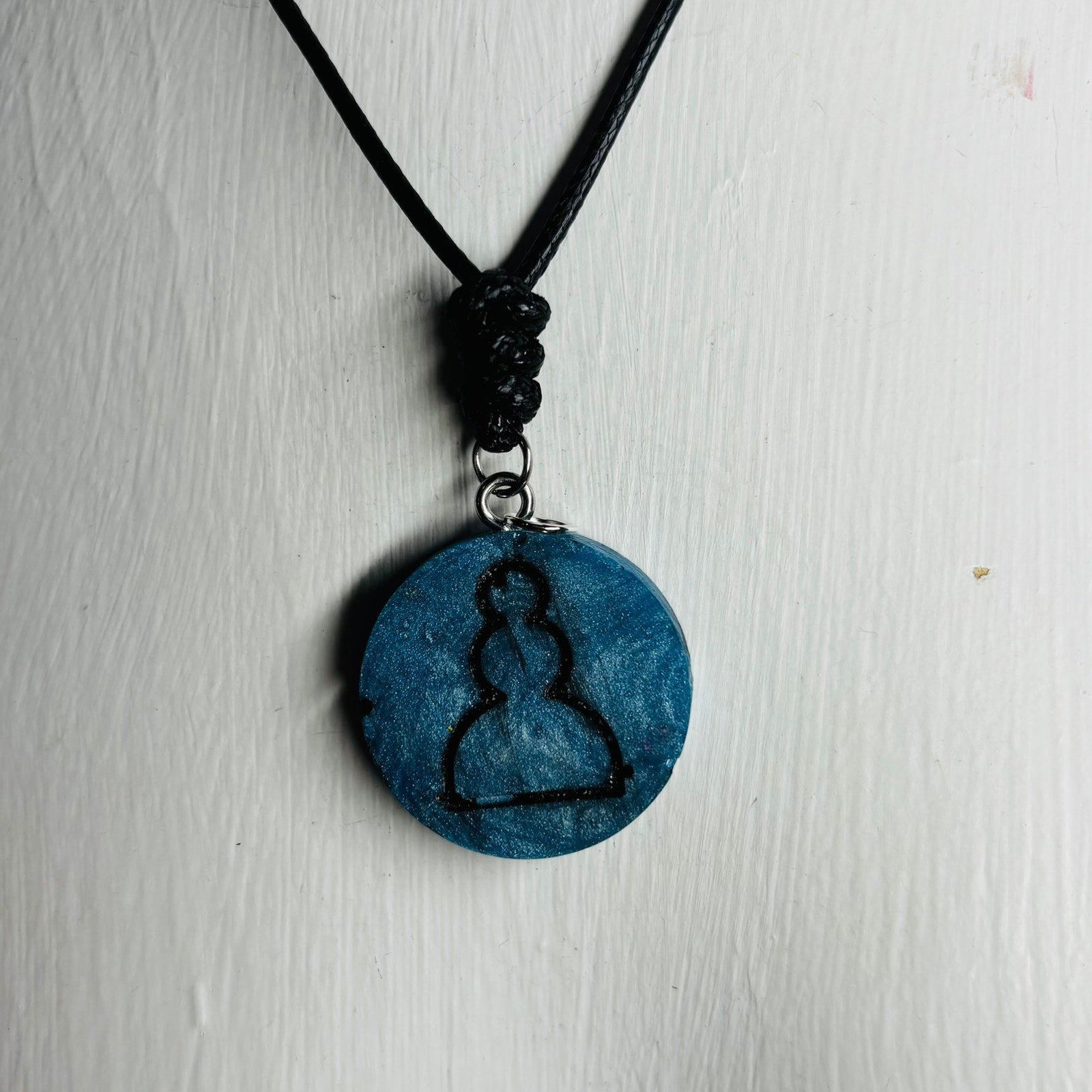 Smooth Blue Pawn - Handmade Resin Chess Necklace