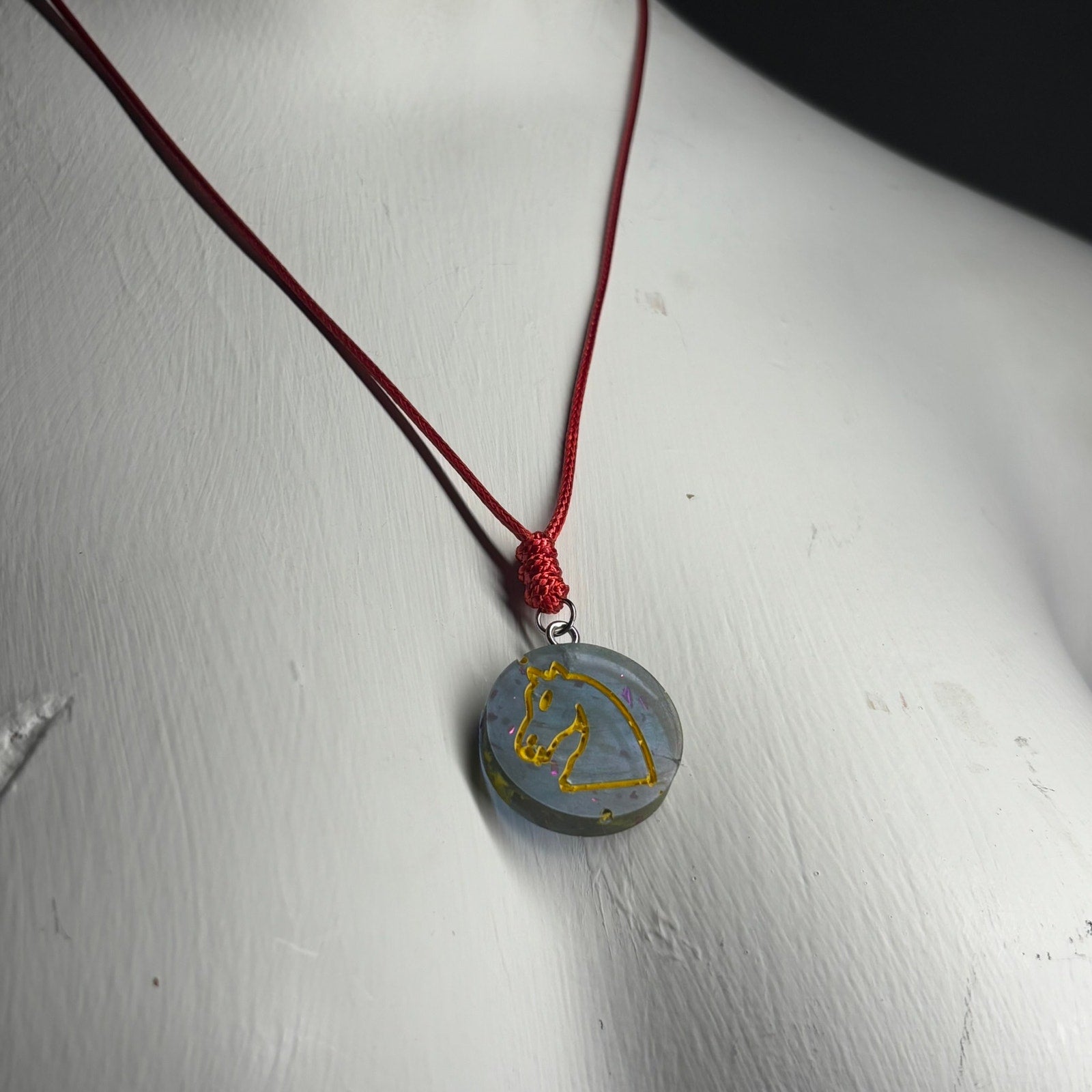 Soft Blue Knight - Handmade Resin Chess Necklace