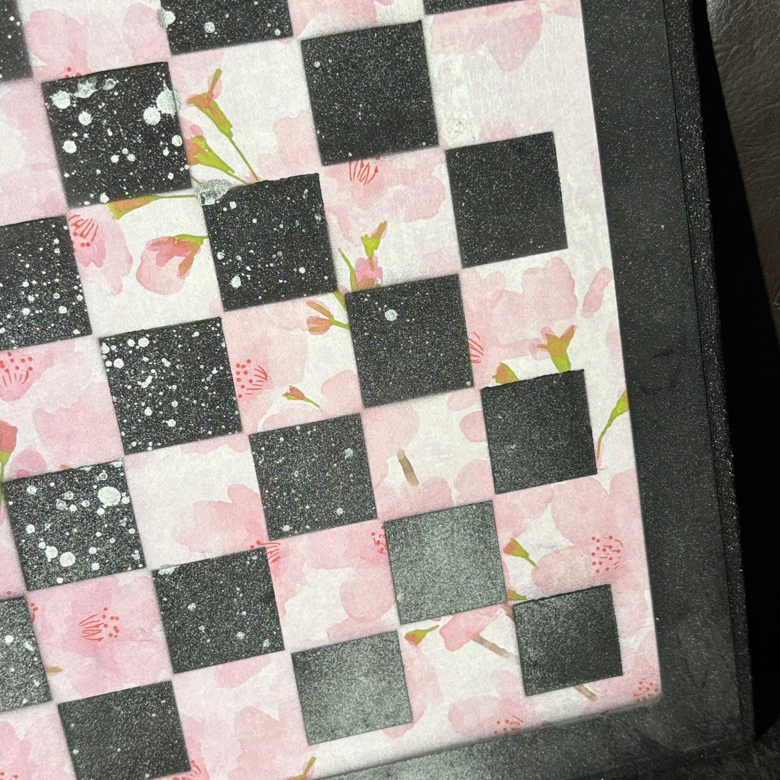 Each board features a layer of beautifully Scrapbook Paper Fused/Glued with particle board to give it a unique pretty pattern. We then paint squares onto the board to make them into fabulous chess boards. Made with a sturdy particle board base and smooth, beveled edges, this board is stunning.