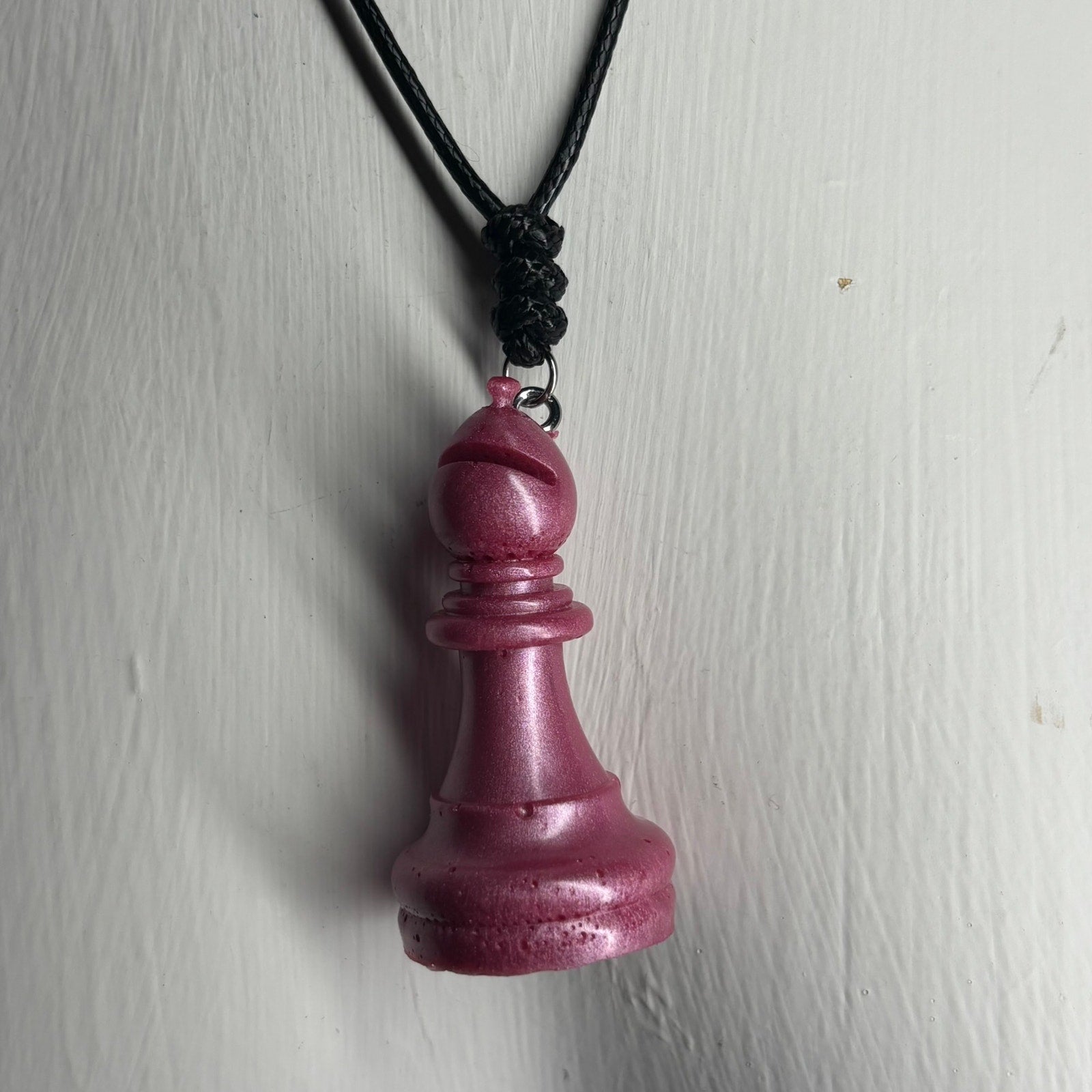 Solid Pink Bishop - Handmade Resin Chess Necklace