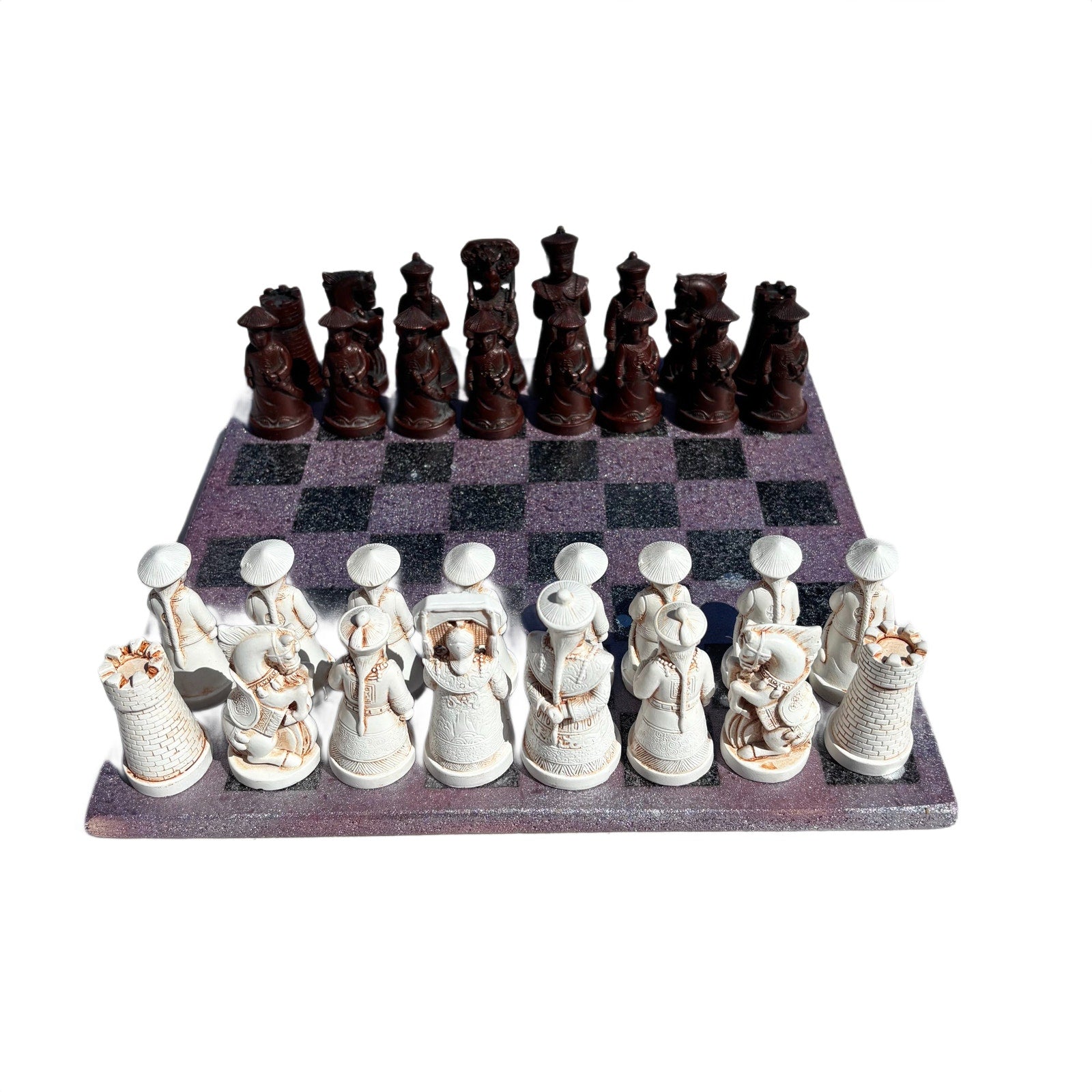 This set is not just a game; it's a work of art, perfect for collectors and chess enthusiasts alike. The attention to detail and craftsmanship makes it a standout piece. Whether you're looking for a beautiful display item or a functional chess set for play, this hand-painted creation is sure to impress. The unique design and quality materials make it a valuable addition to any collection.