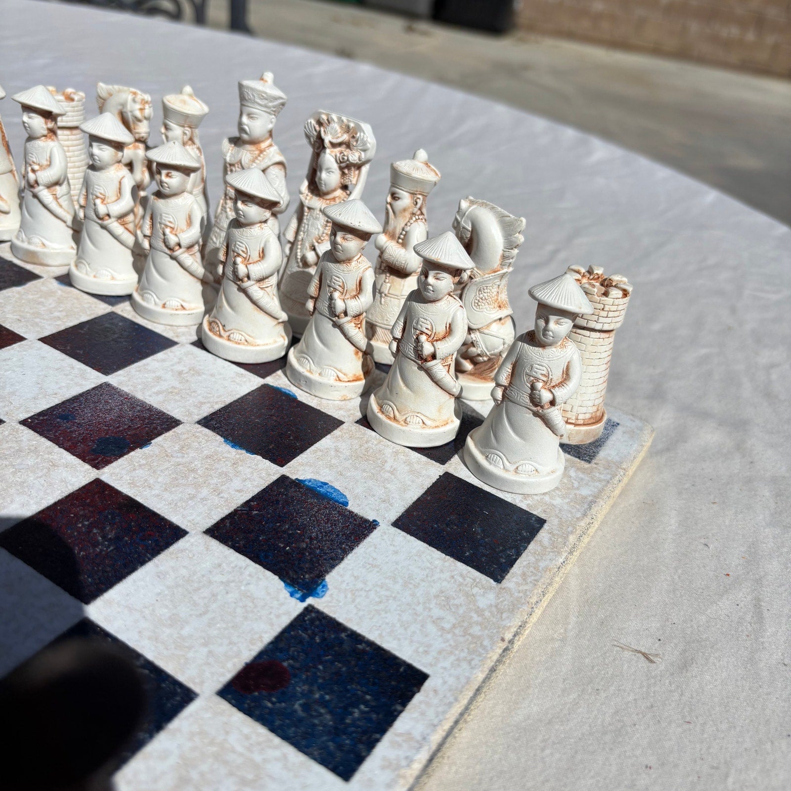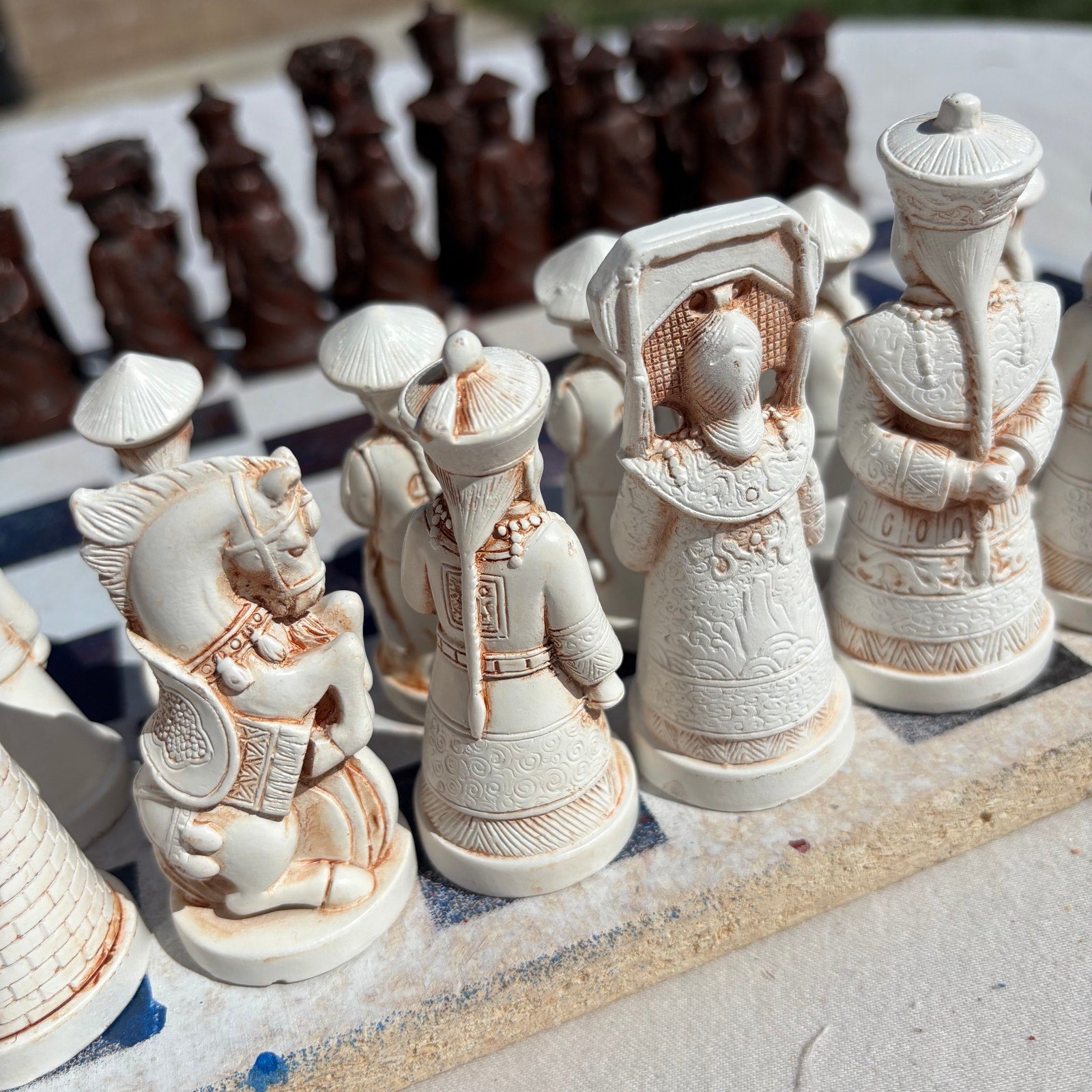 This set is not just a game; it's a work of art, perfect for collectors and chess enthusiasts alike. The attention to detail and craftsmanship makes it a standout piece. Whether you're looking for a beautiful display item or a functional chess set for play, this hand-painted creation is sure to impress. The unique design and quality materials make it a valuable addition to any collection.