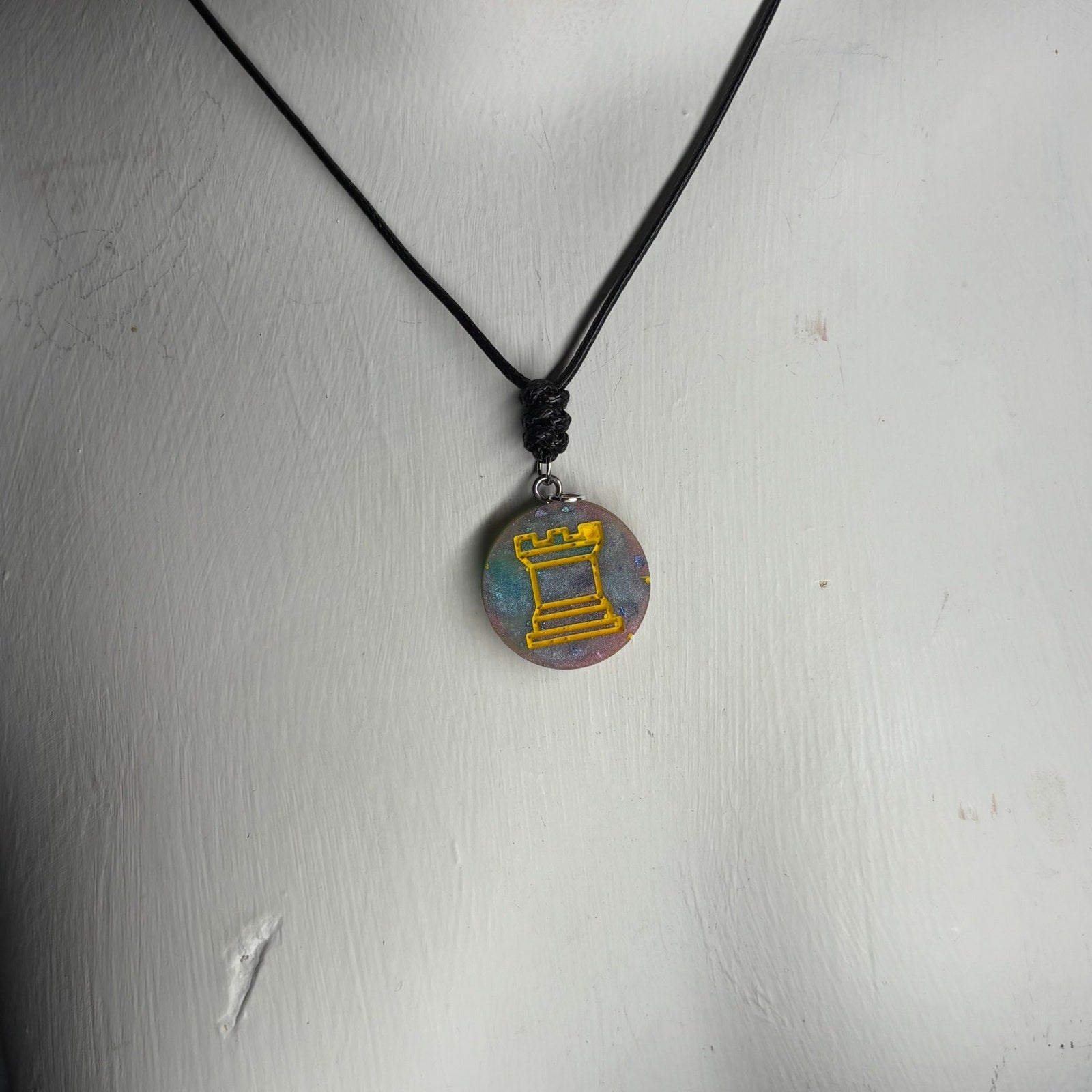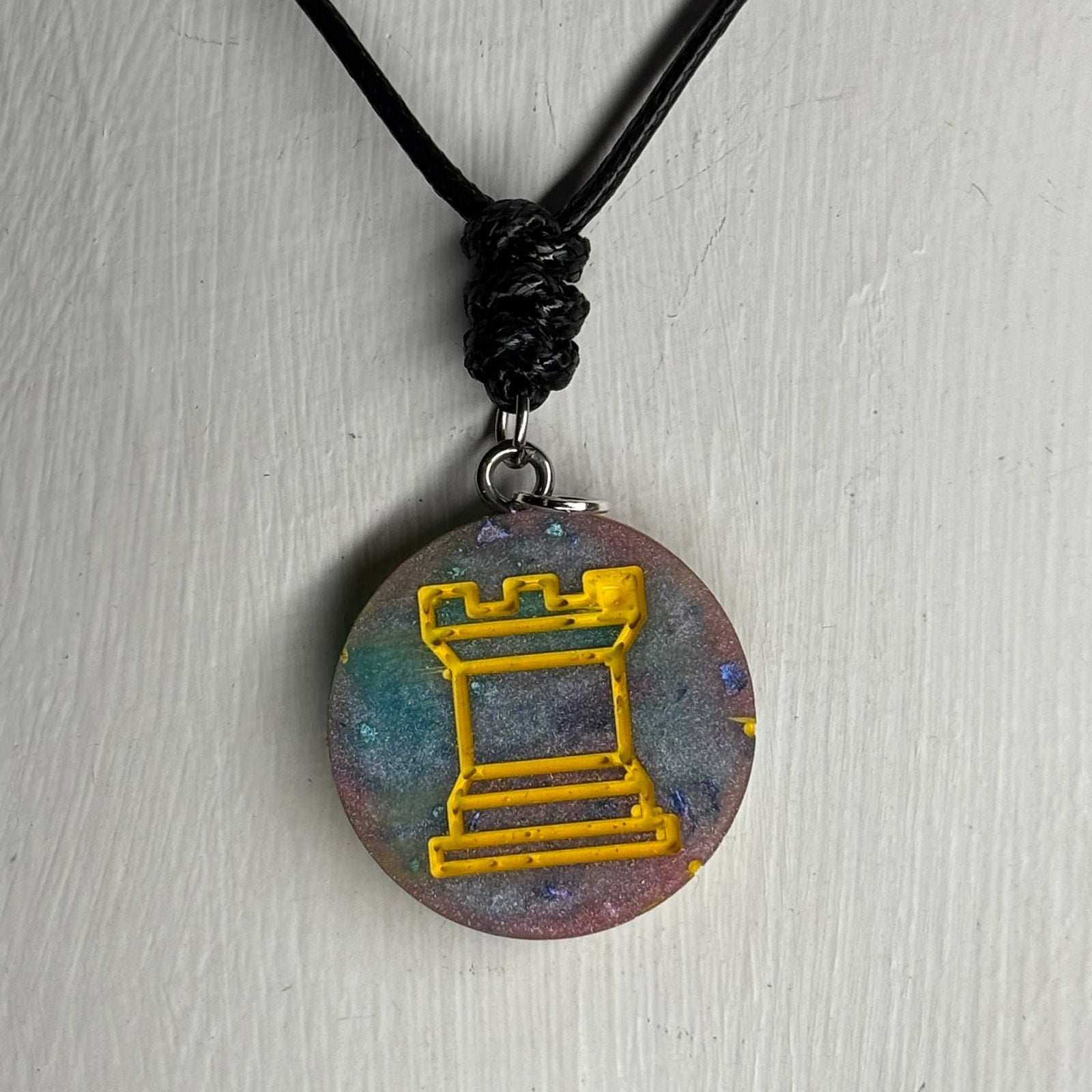 Space Yellow Rook - Handmade Resin Chess Necklace