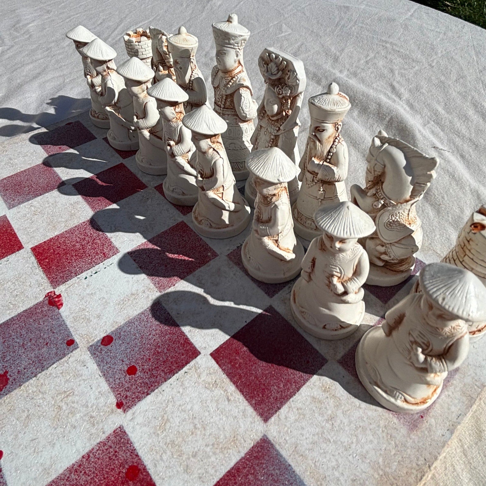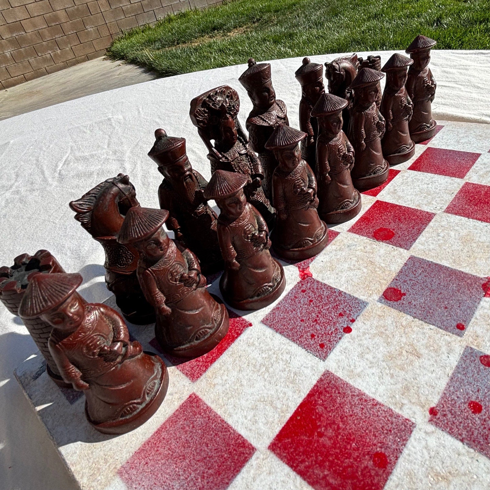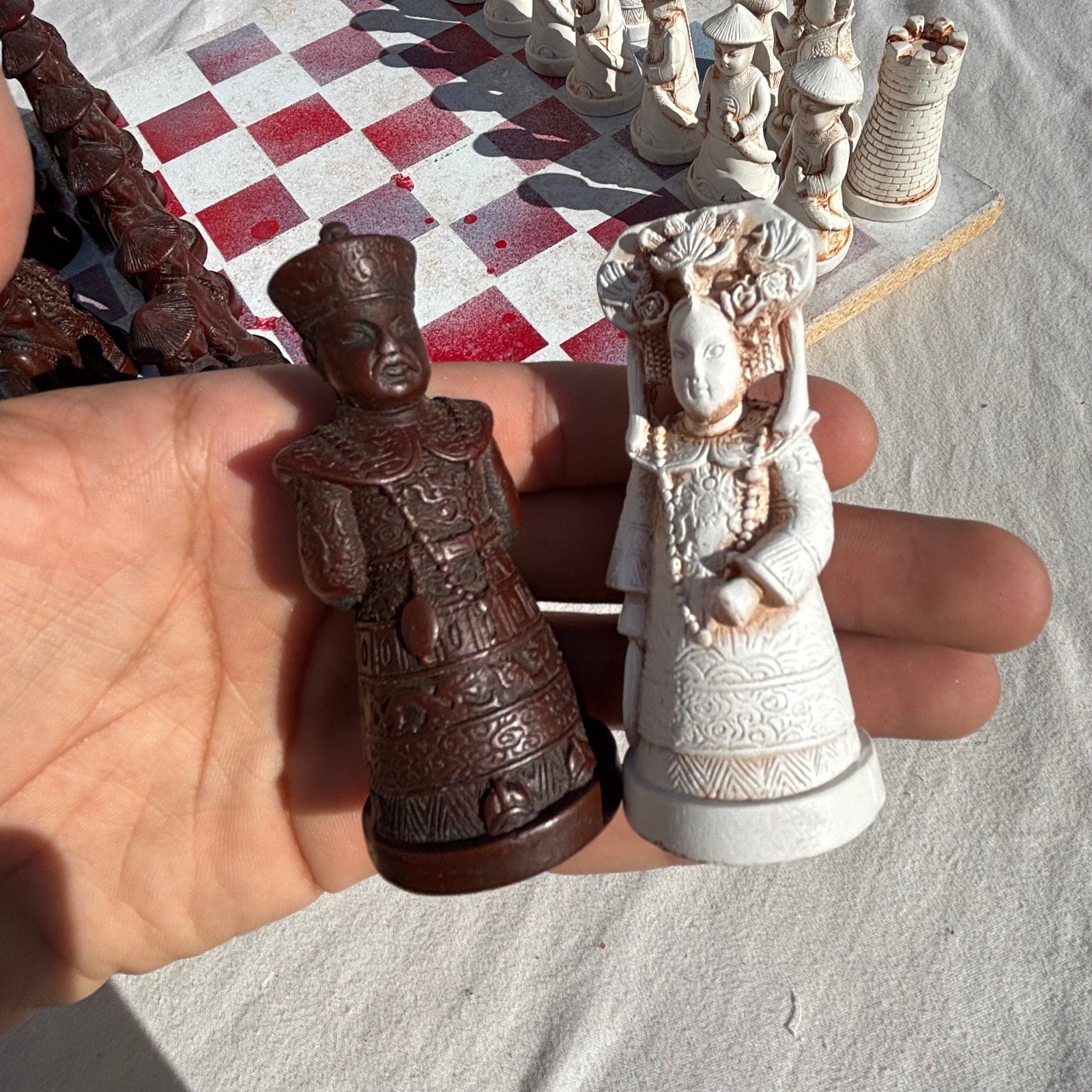 This set is not just a game; it's a work of art, perfect for collectors and chess enthusiasts alike. The attention to detail and craftsmanship makes it a standout piece. Whether you're looking for a beautiful display item or a functional chess set for play, this hand-painted creation is sure to impress. The unique design and quality materials make it a valuable addition to any collection.