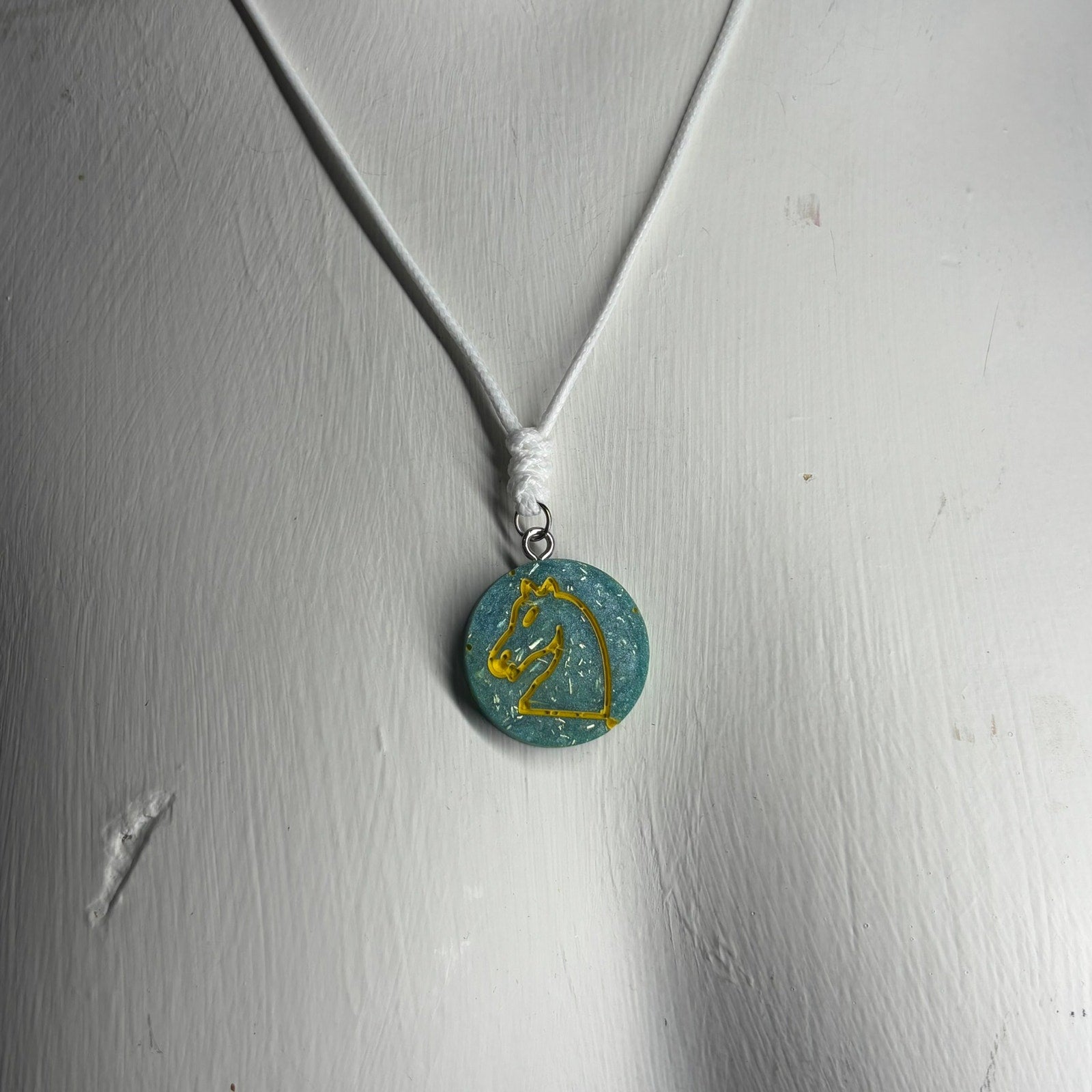 Sparkle Green Knight - Handmade Resin Chess Necklace