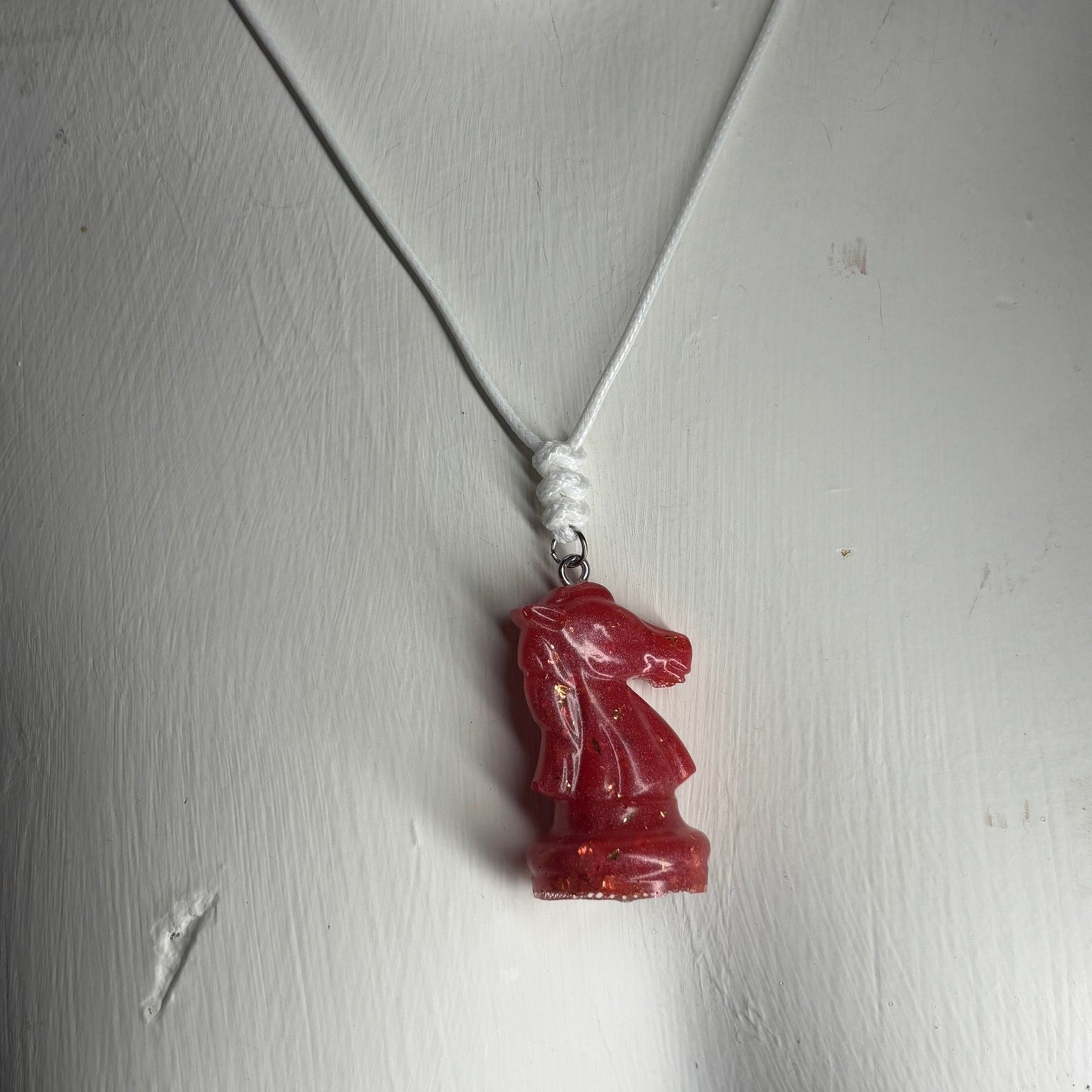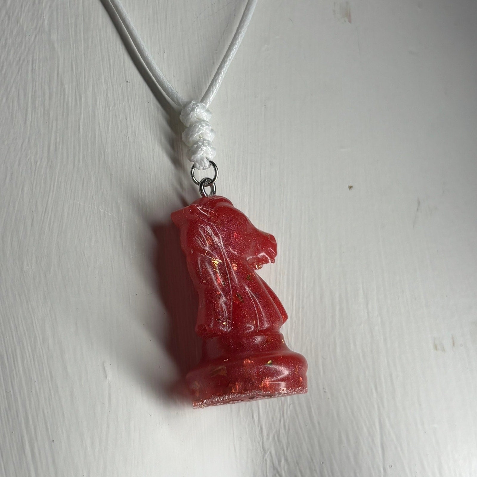 Sparkle Red Knight - Handmade Resin Chess Necklace