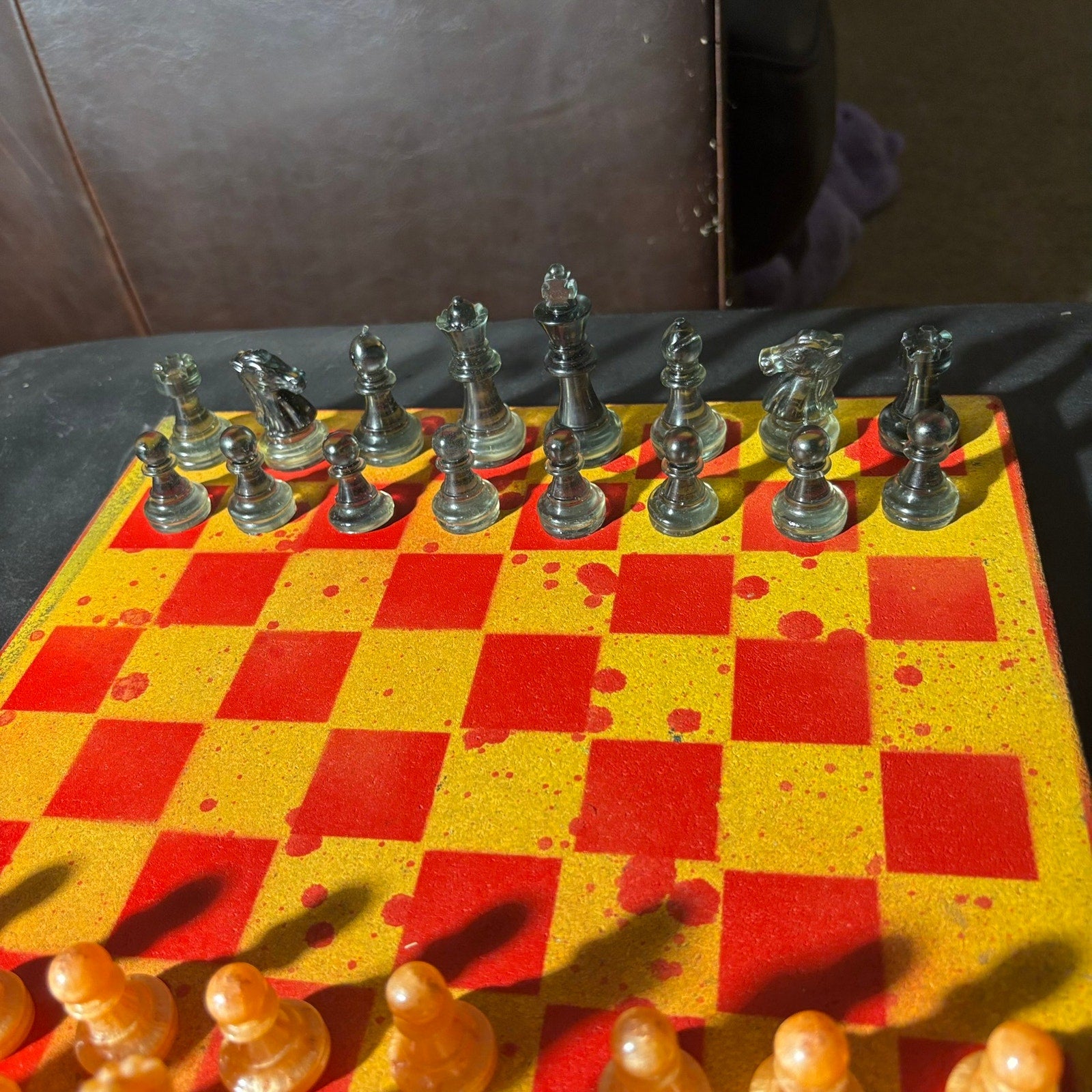 *** PLEASE READ: The resin pieces that have clear transparent parts will slowly turn royal amber as time goes on (Clear see through resin turn amber with time). Most of the sets are solid or colored so there is no need to expect a change at all, but some have clear transparent bottoms that will turn amber. I write this because some of our chess sets may not sell for a year or two and the photos are taken when the item is listed online. Meaning the photos will have slight difference. Rest assured, the amber is beautiful and vintage!