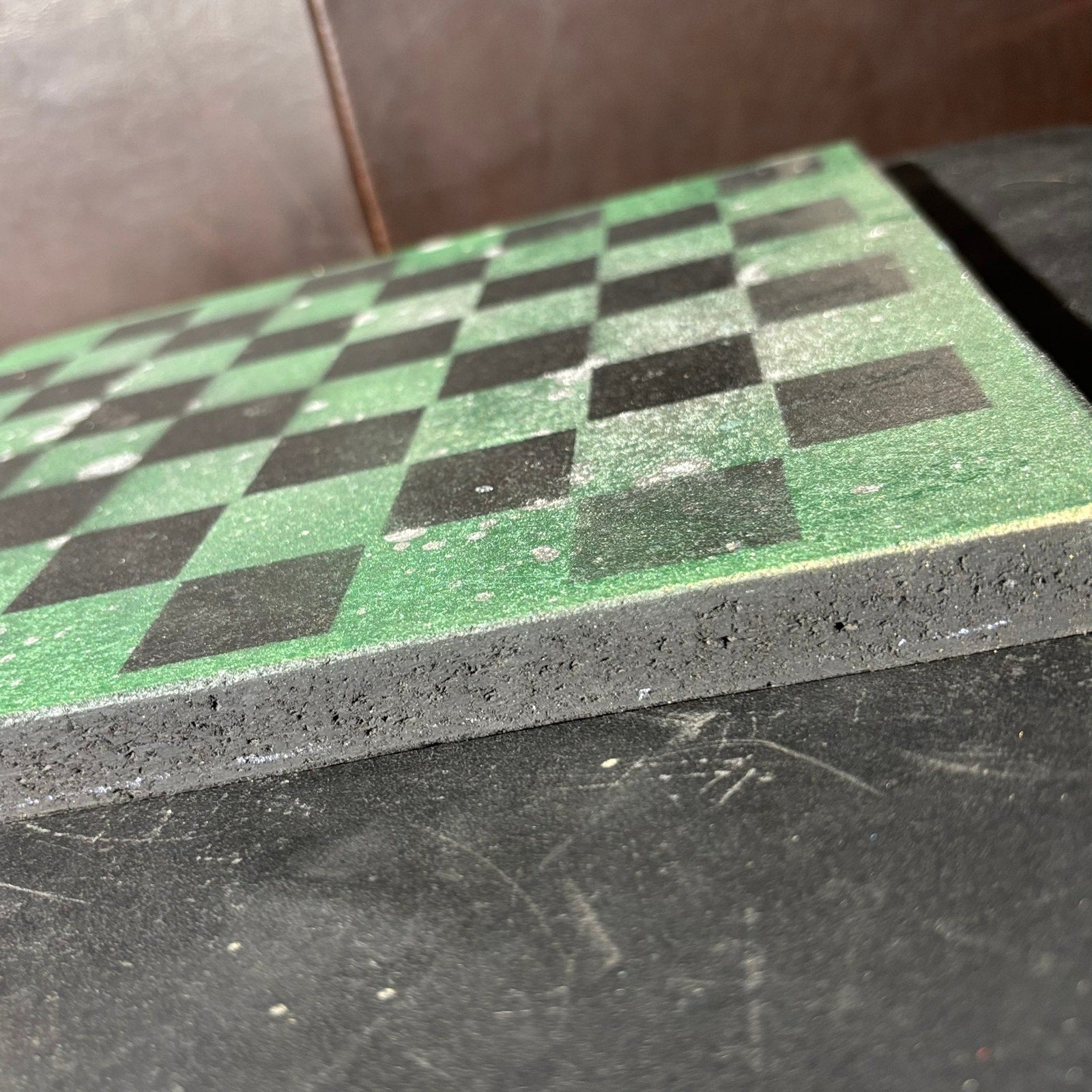 Splattered Chrome Green - Painted Chess Board
