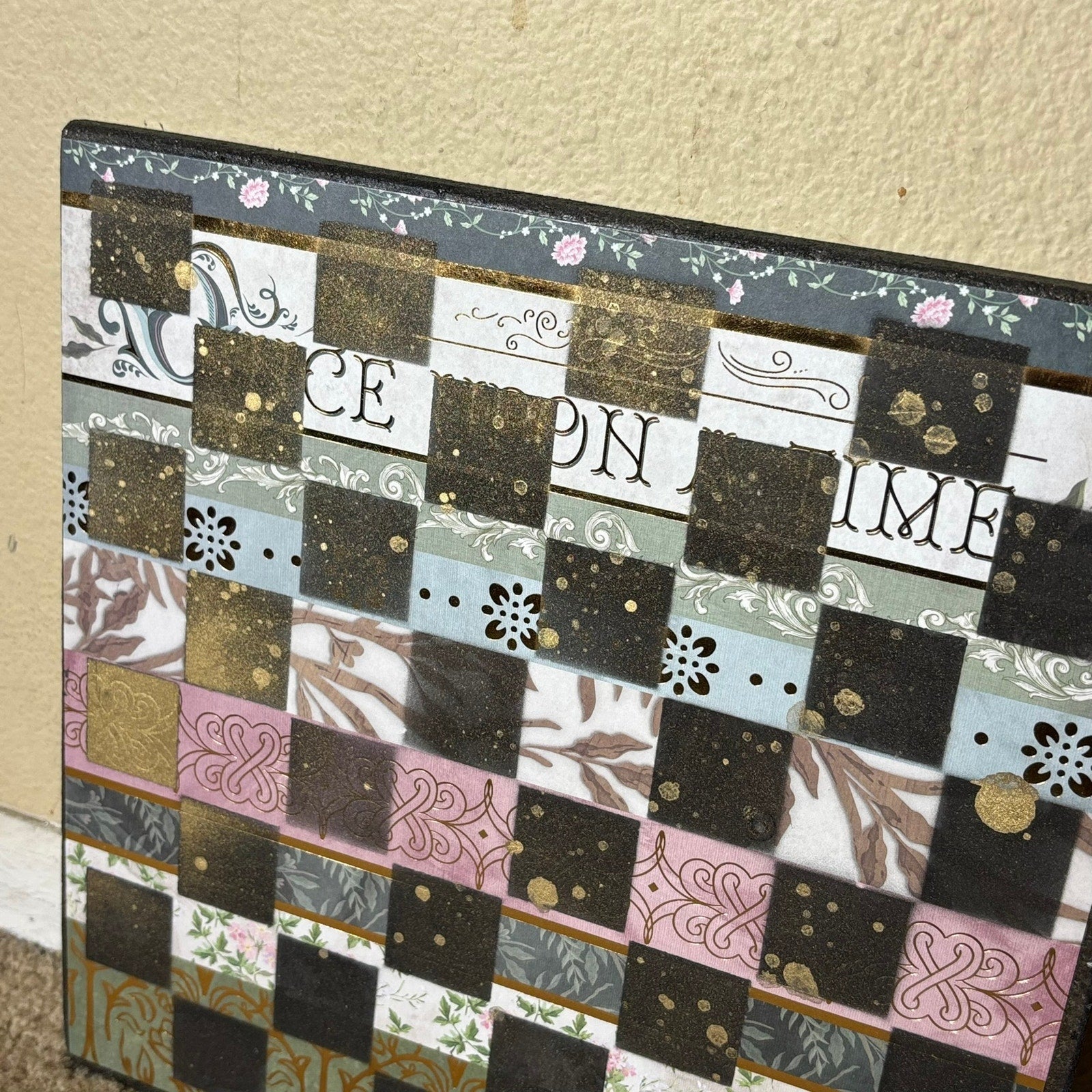 Each board features a layer of beautifully Scrapbook Paper Fused/Glued with particle board to give it a unique pretty pattern. We then paint squares onto the board to make them into fabulous chess boards. Made with a sturdy particle board base and smooth, beveled edges, this board is stunning.
